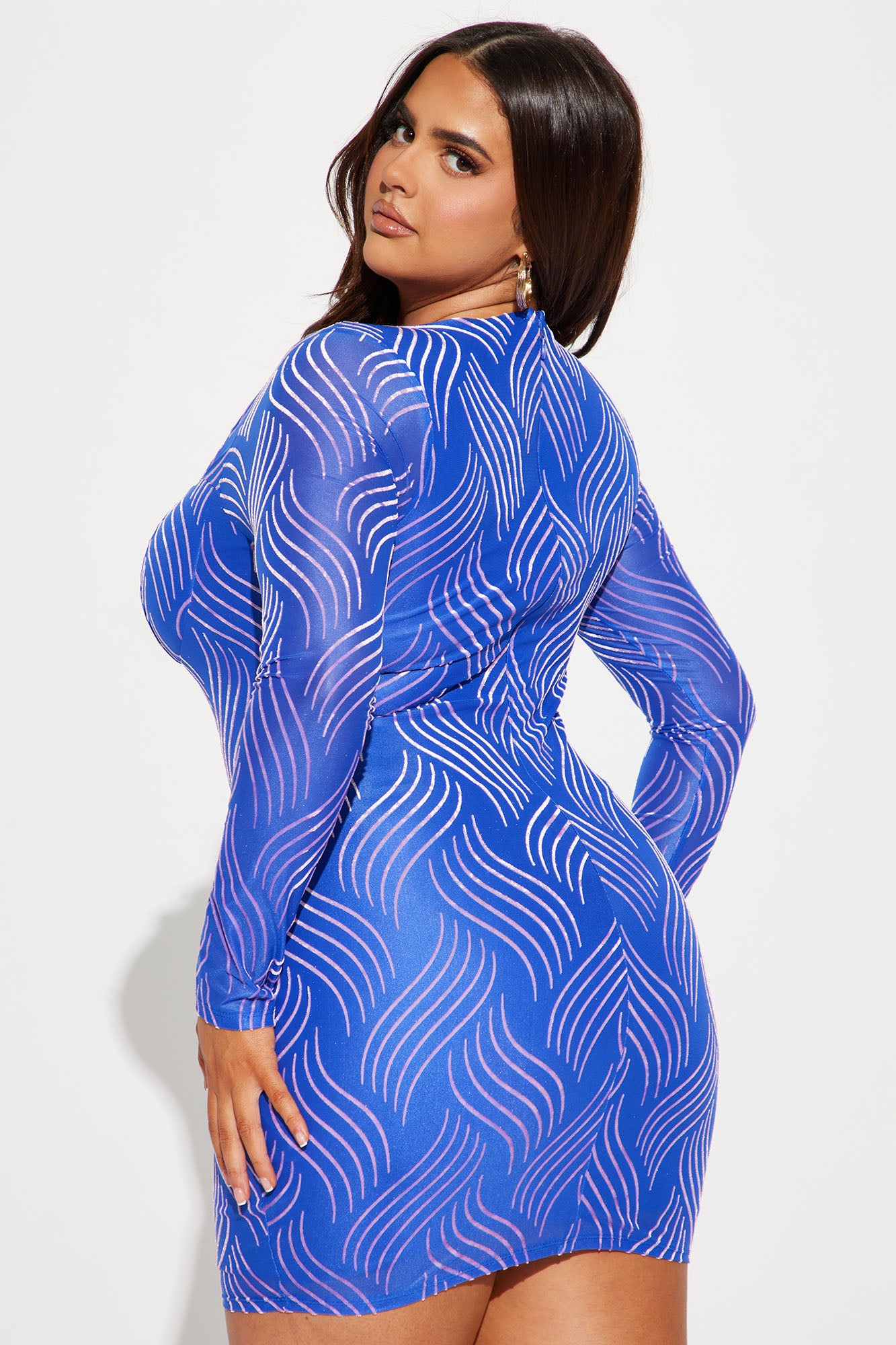 All Wavy Mesh Mini Dress - Royal/combo
