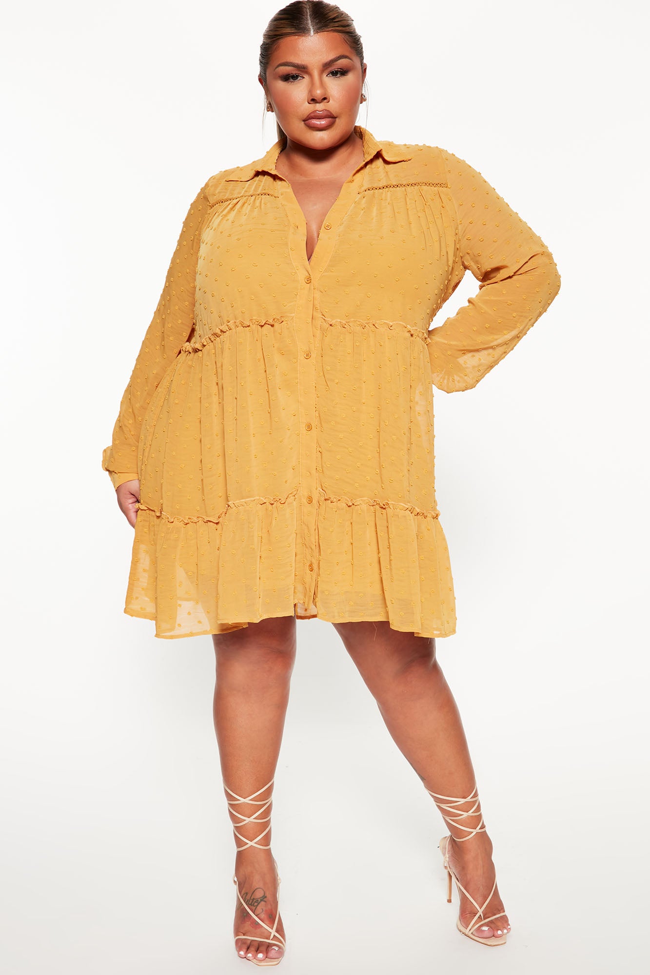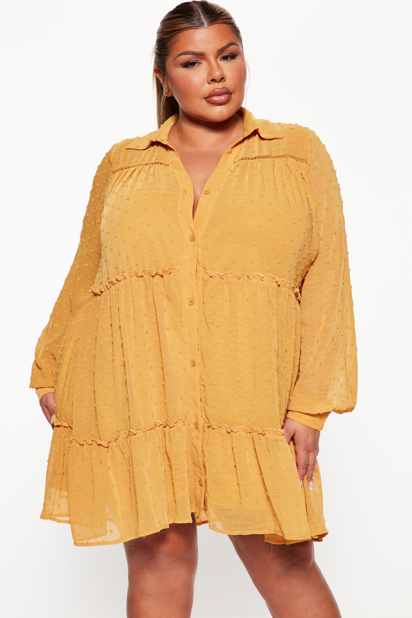 Connect The Dot Shirt Dress - Mustard