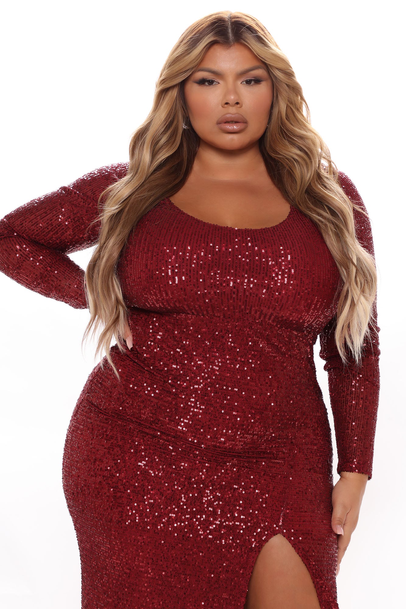 Family Affair Long Sleeve Sequin Dress - Burgundy