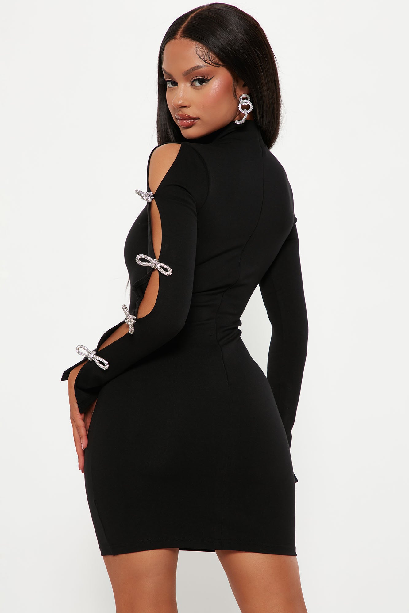 Jessica Bow Embellished Mini Dress - Black