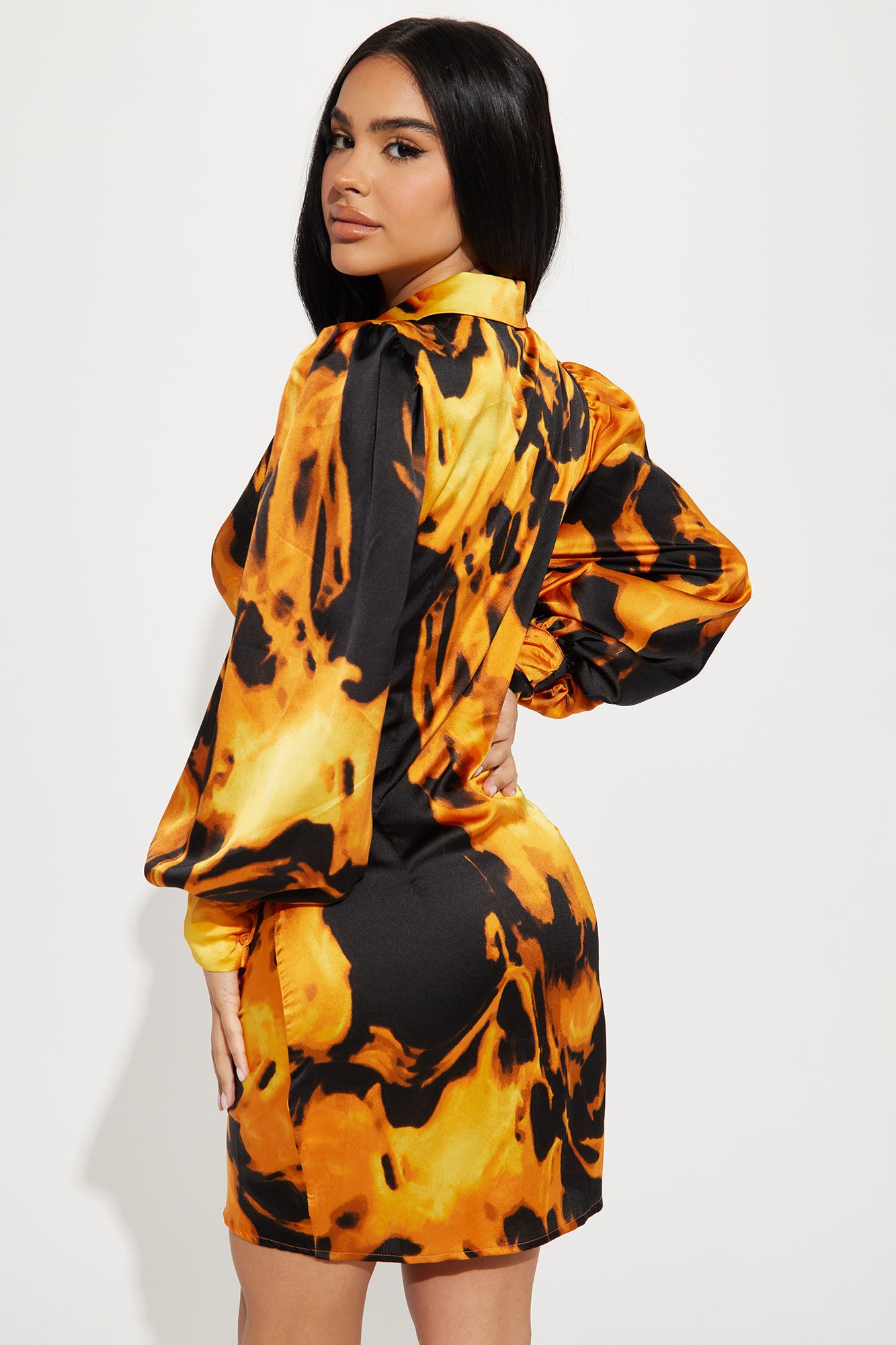 On Fire Ruched Mini Dress - Orange/combo