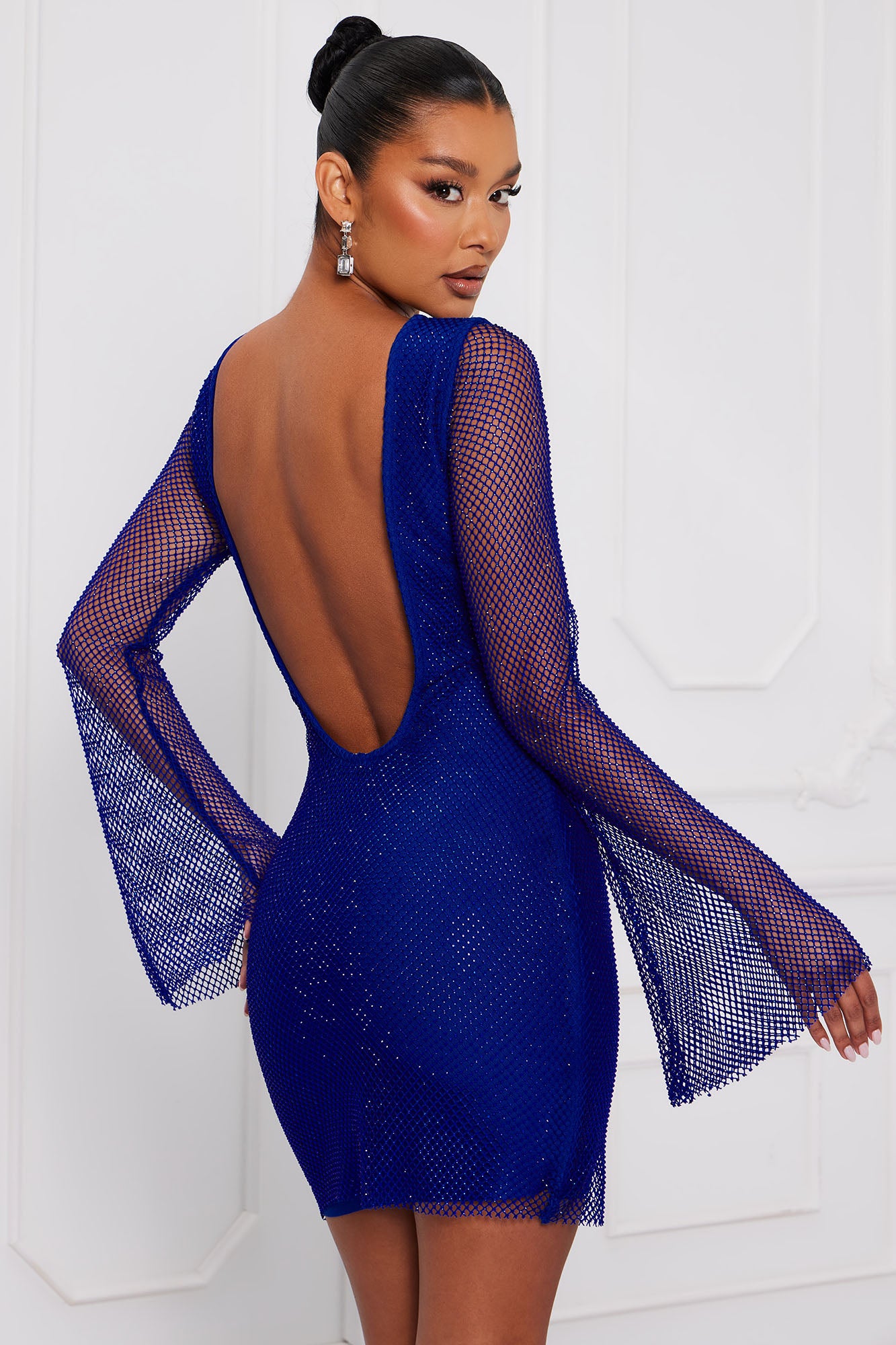Sparkled Embellished Bandage Mini Dress - Royal