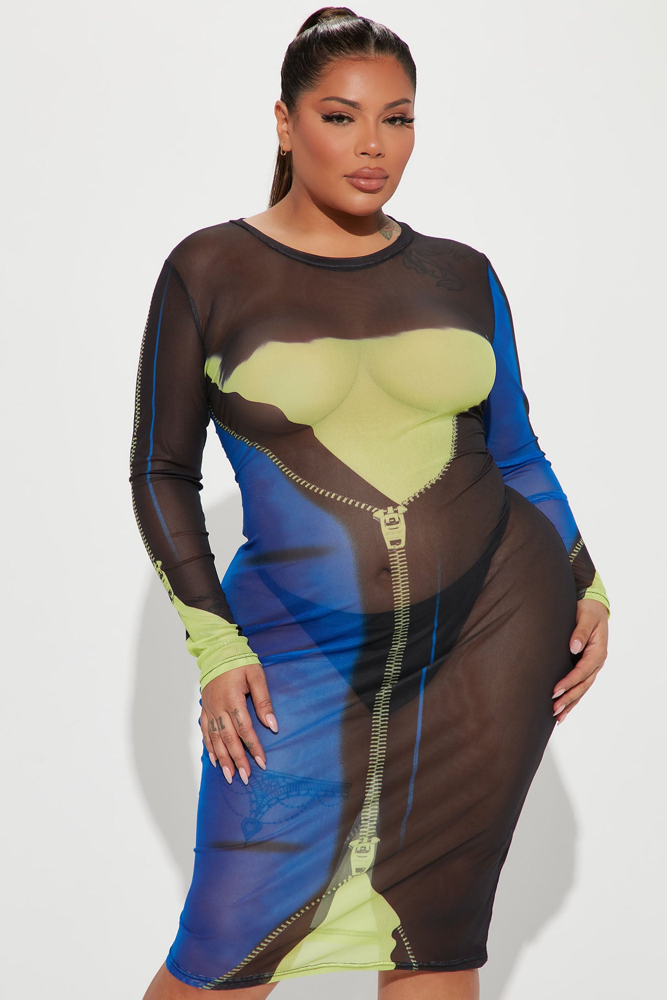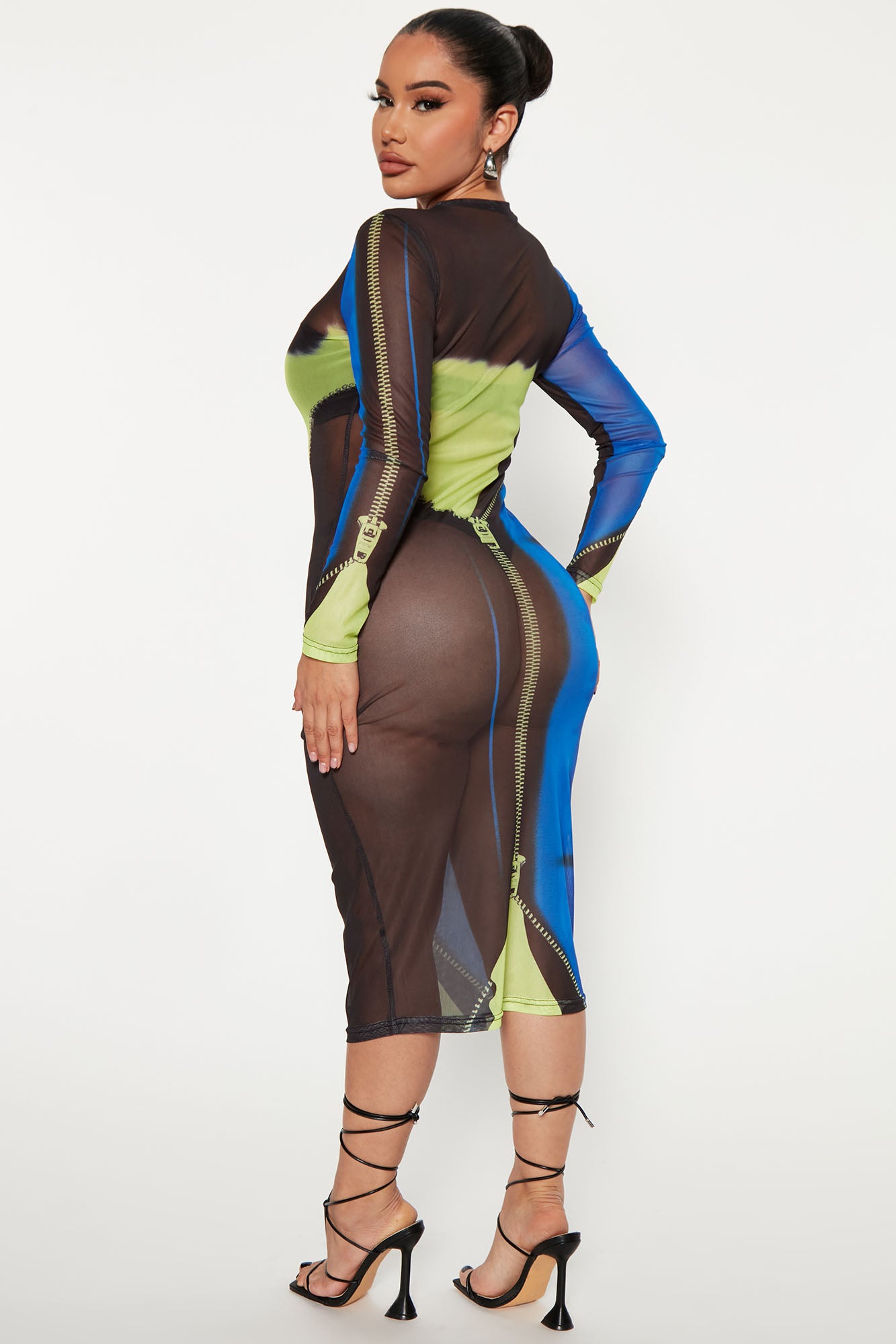 Zip Me Up Mesh Maxi Dress - Black/combo