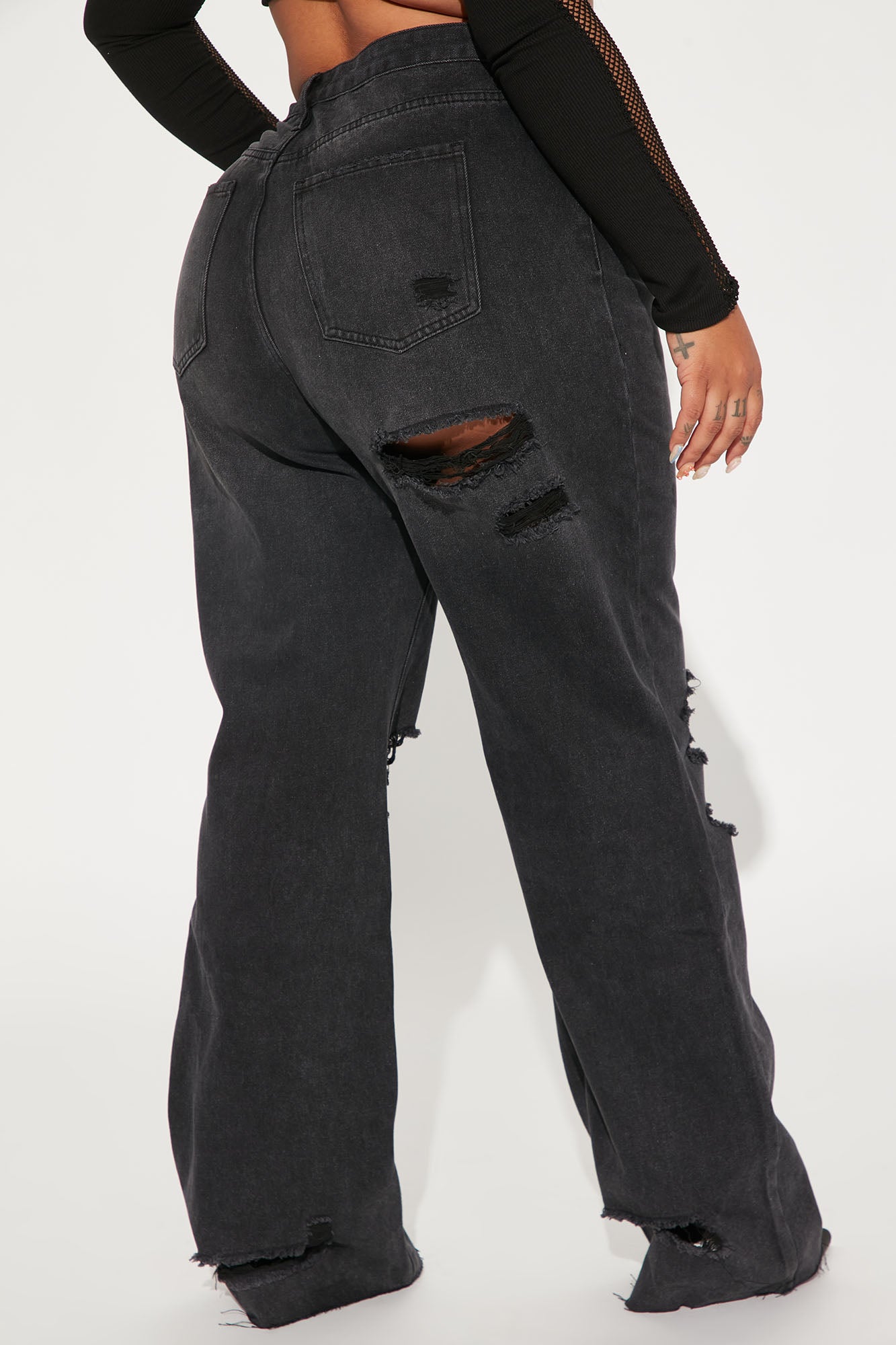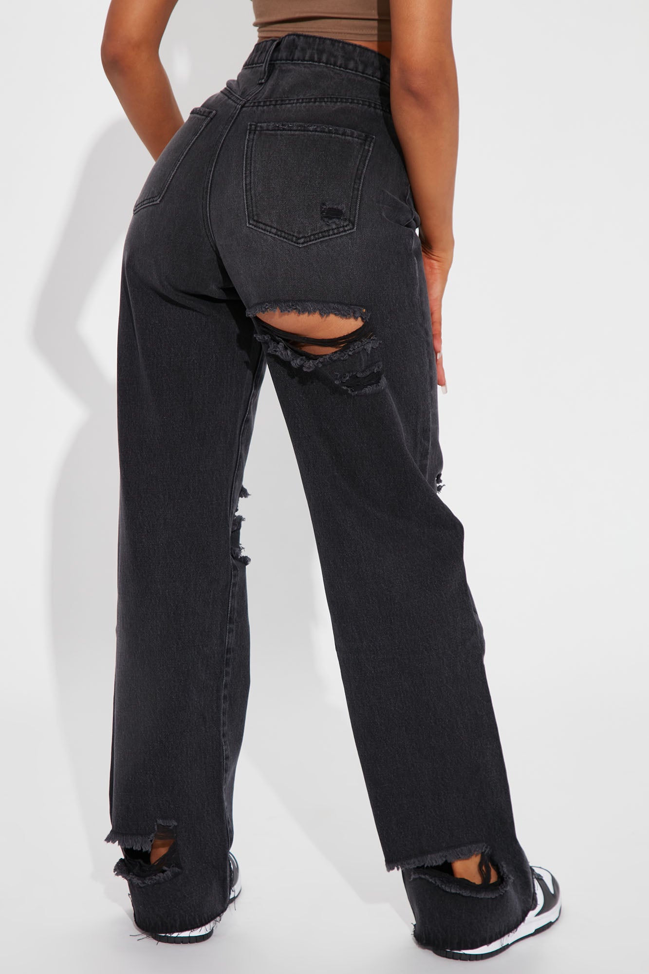 90s Loose Ripped Straight Leg Jeans - Black Wash