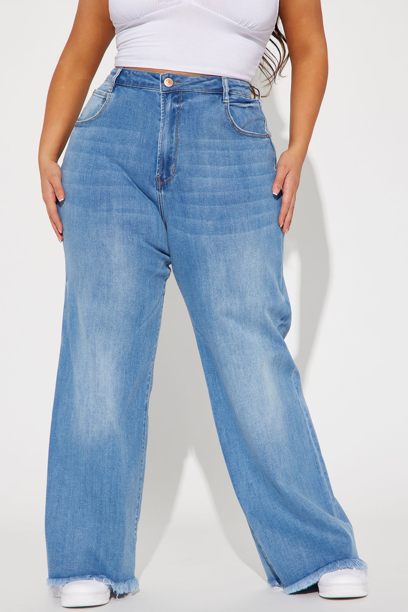 • Can't Be Bothered Soft Stretch Wide Leg Jean - Medium Wash