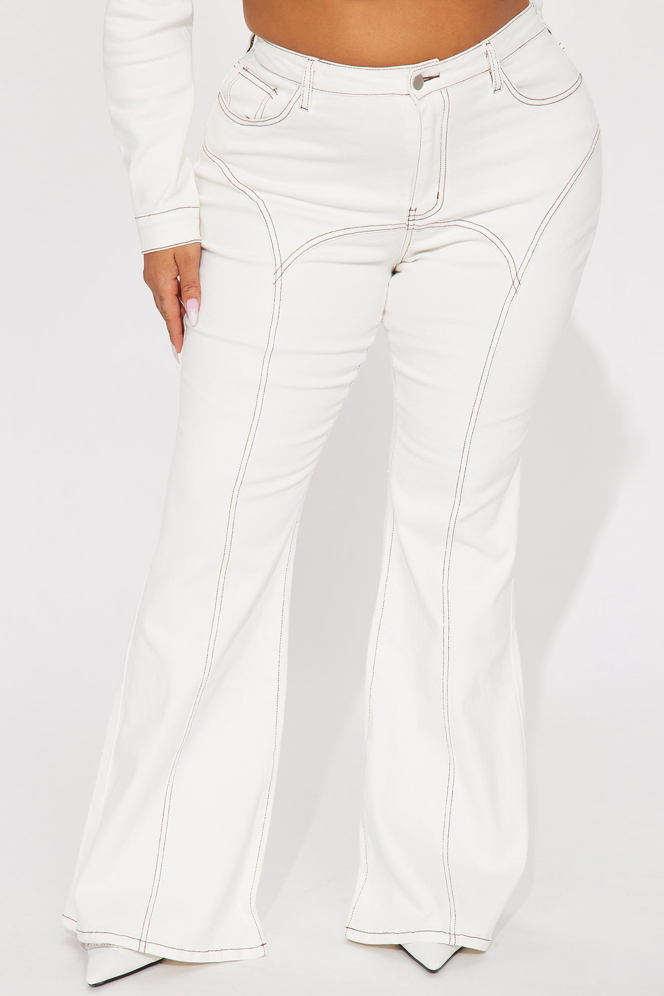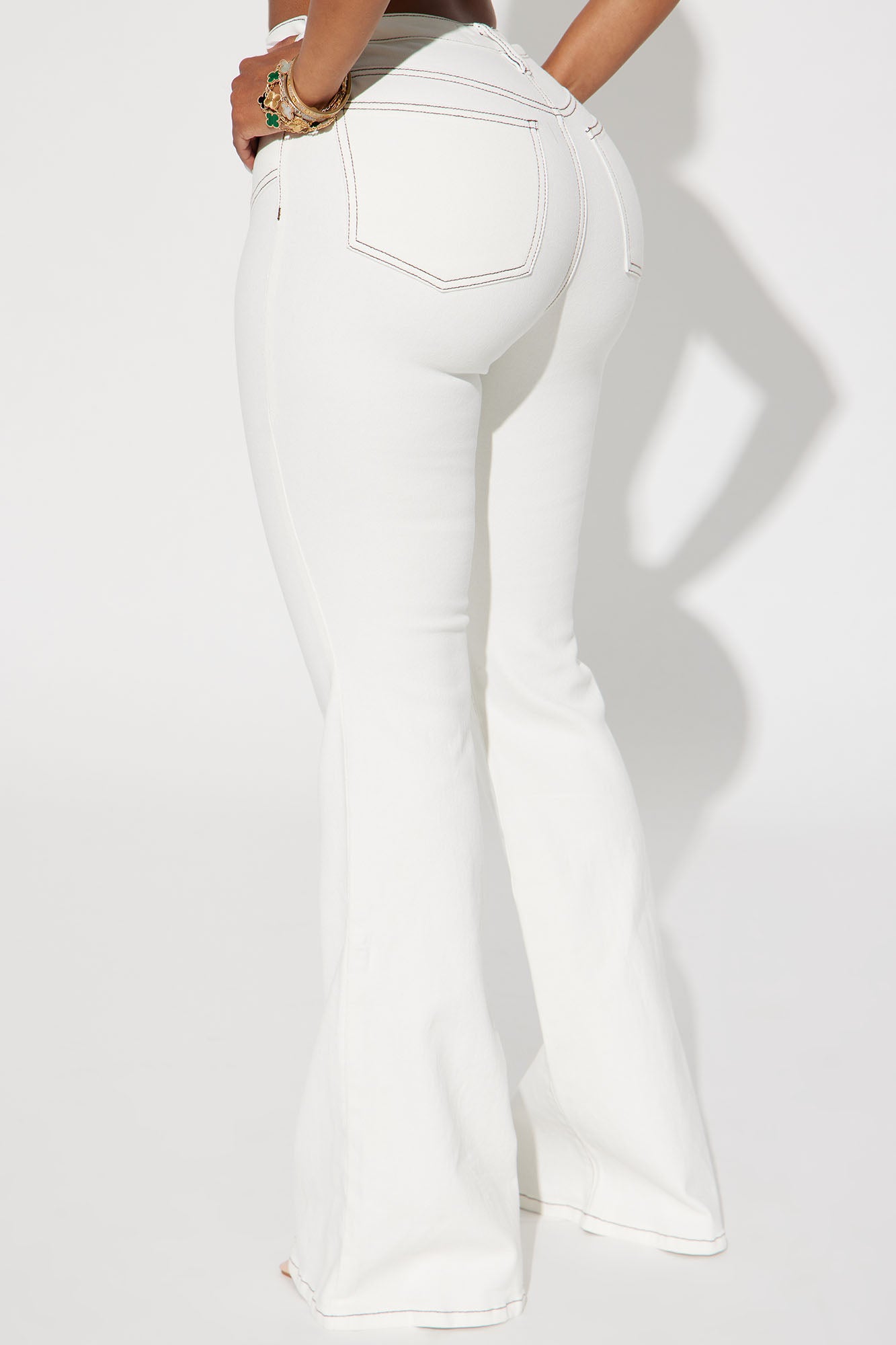 Charlotte Mid Rise Stretch Flare Jeans - White
