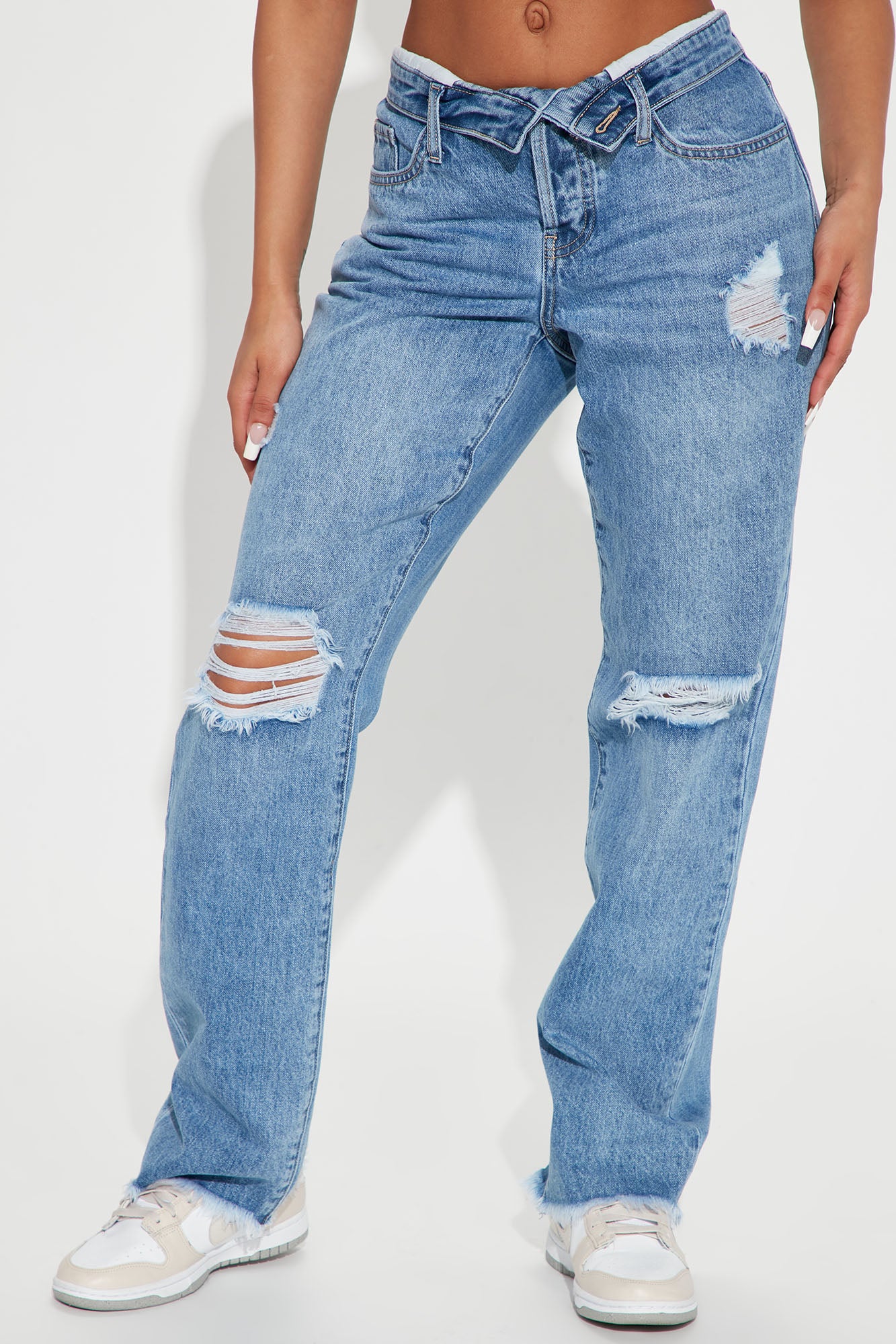 Do As You're Fold Straight Leg Jeans - Medium Blue Wash
