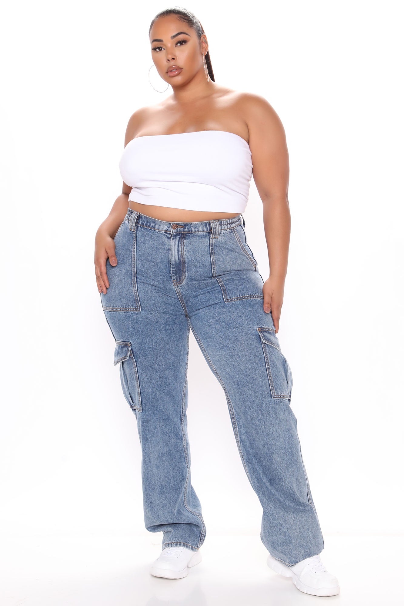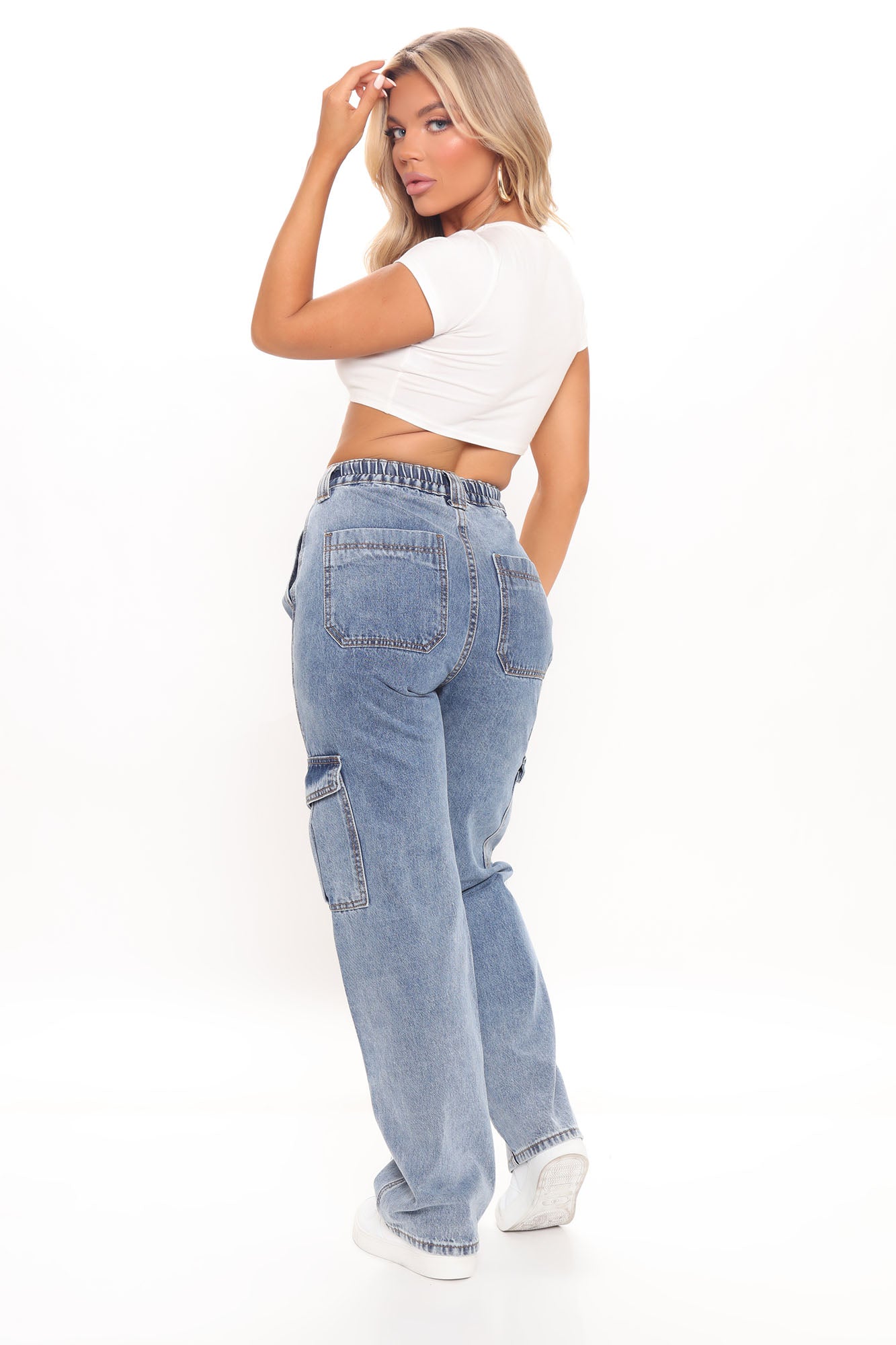 • Don't You Worry Wide Leg Cargo Jeans - Medium Blue Wash
