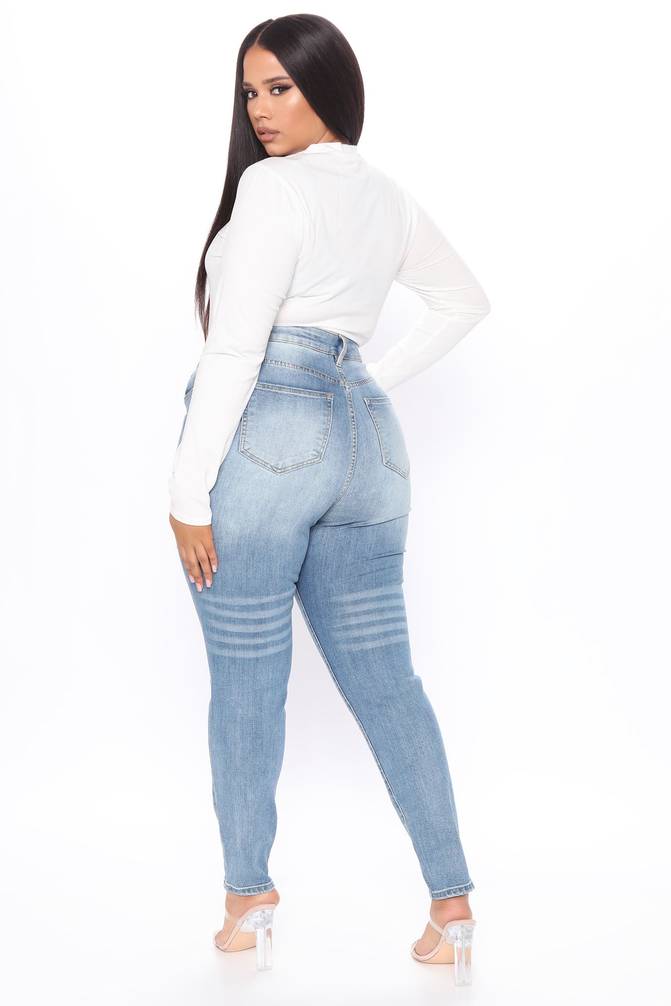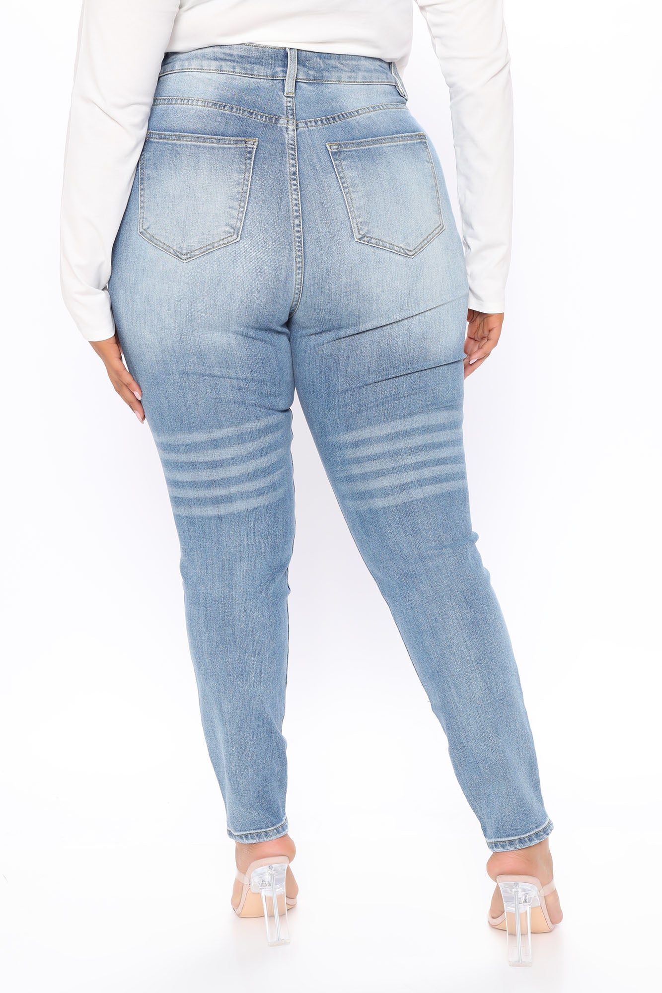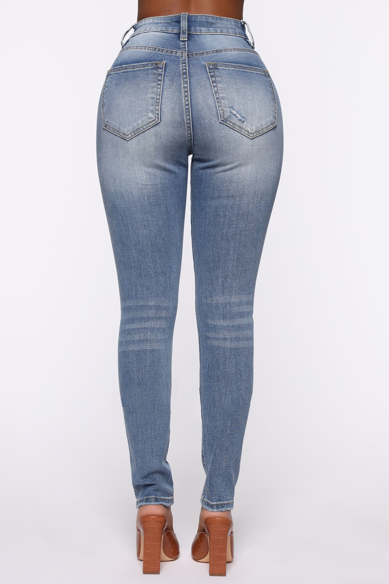 From A Distance Crossover Mid Rise Skinny Jeans - Medium Wash