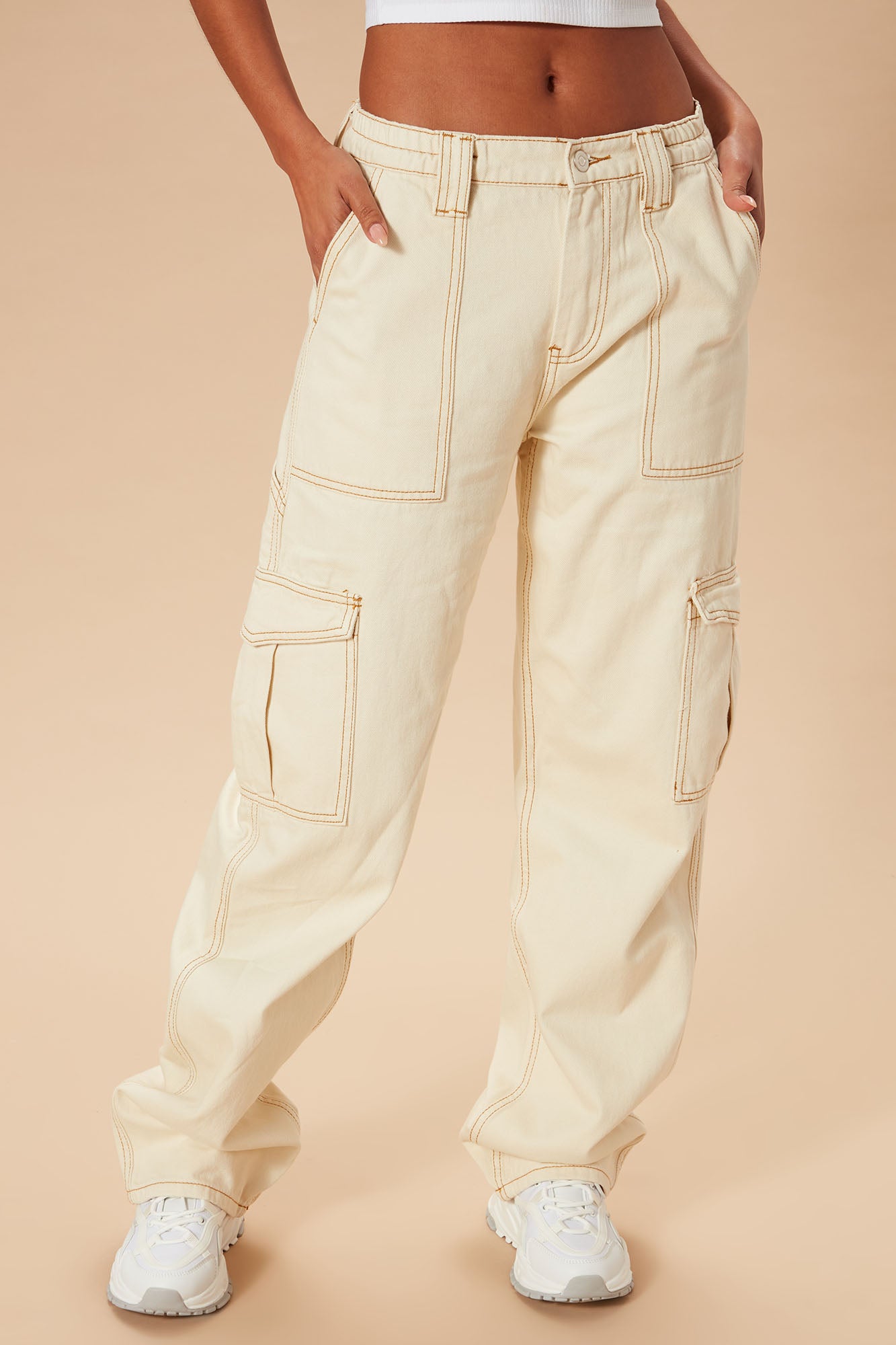 Give Me A Break Cargo Carpenter Jeans - Off White