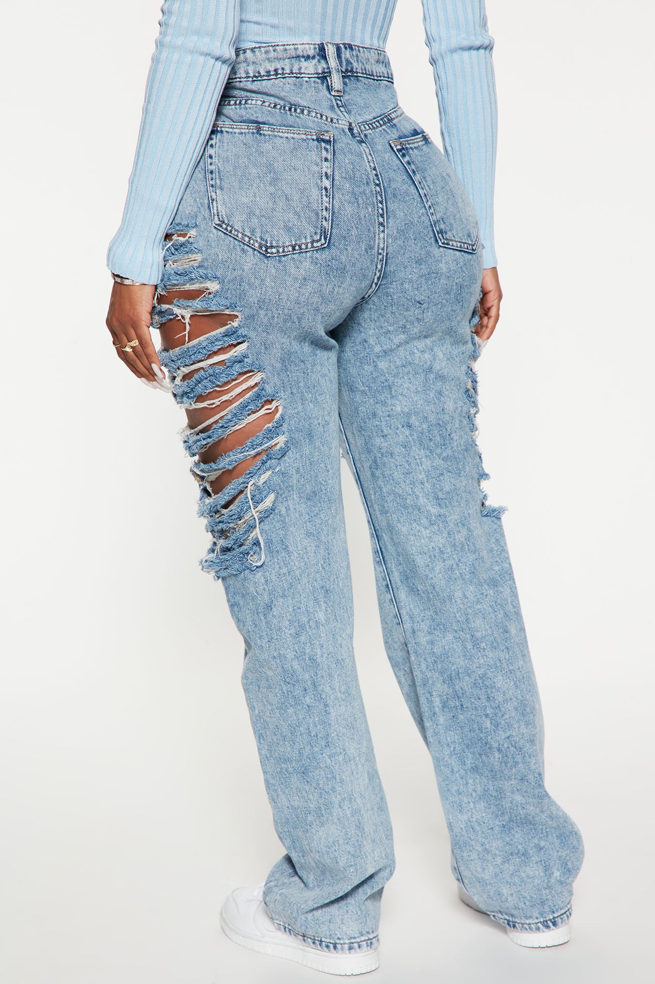 • Go All Out Shredded Straight Leg Jean - Medium Blue Wash