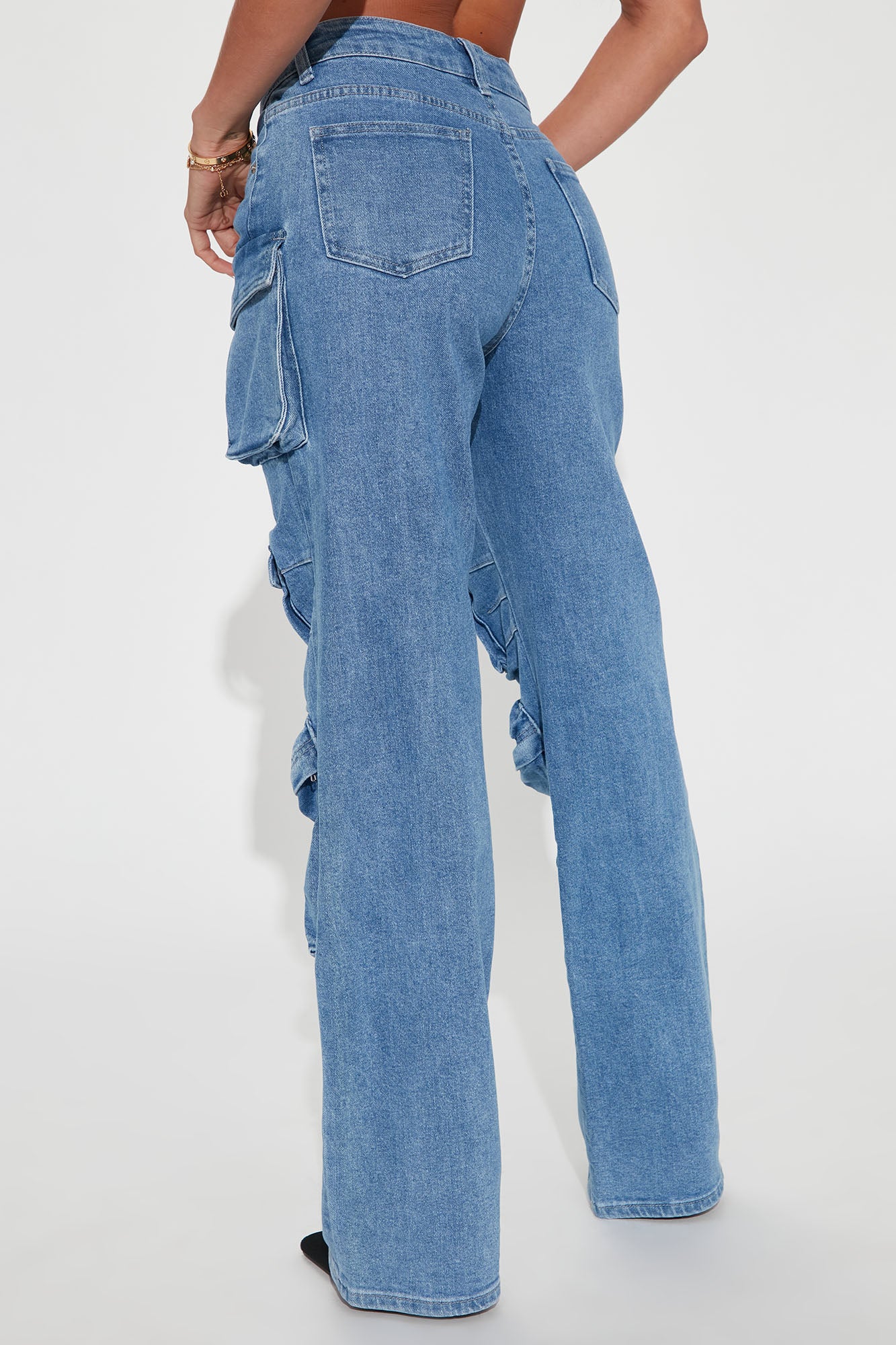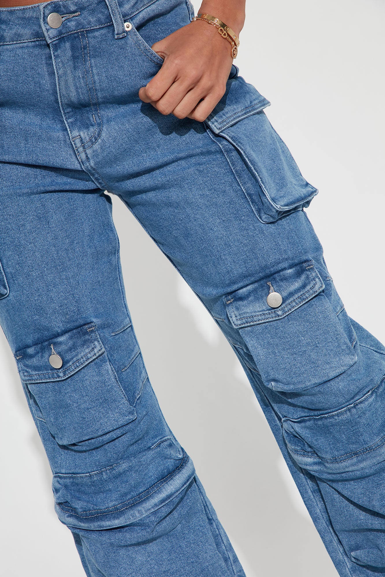 Just Enough Time '90s High Rise Cargo Jeans - Medium Blue Wash