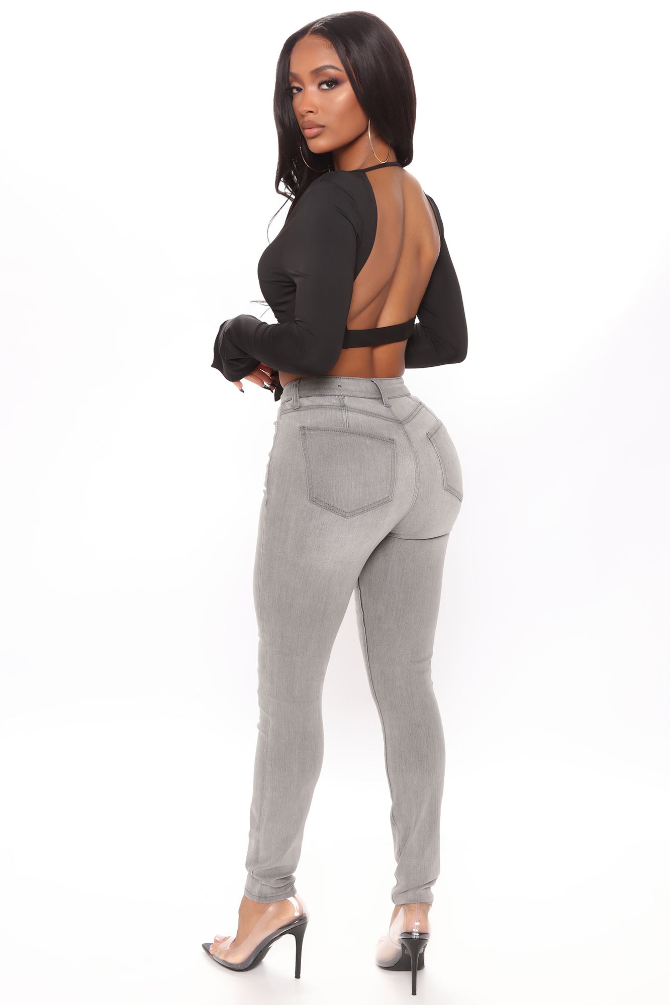 Lights Out High Rise Booty Lifting Skinny Jeans - Grey