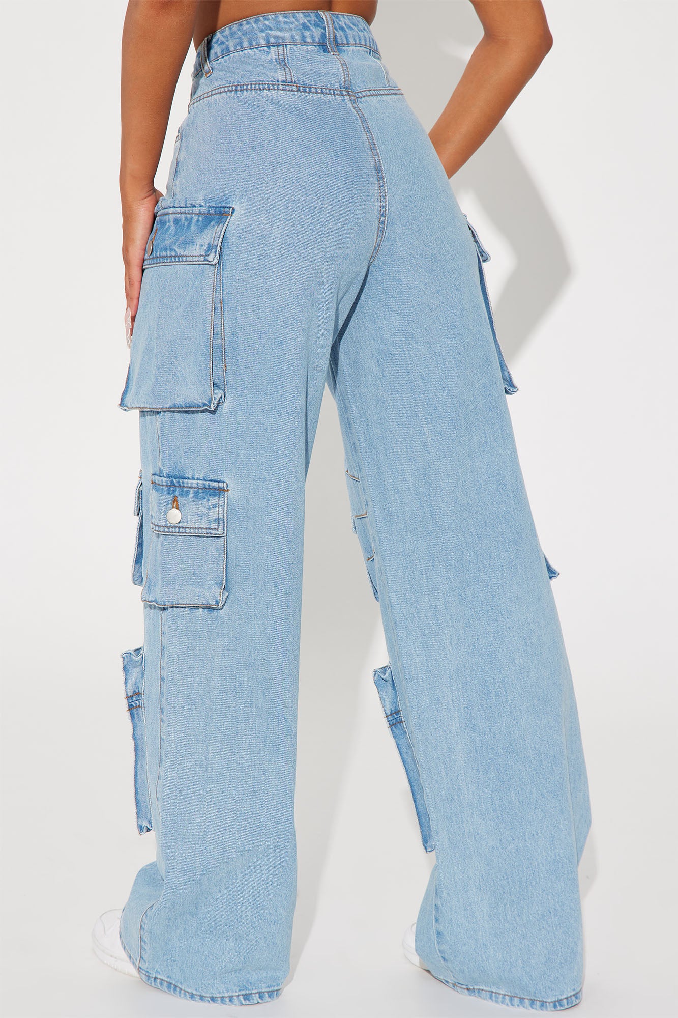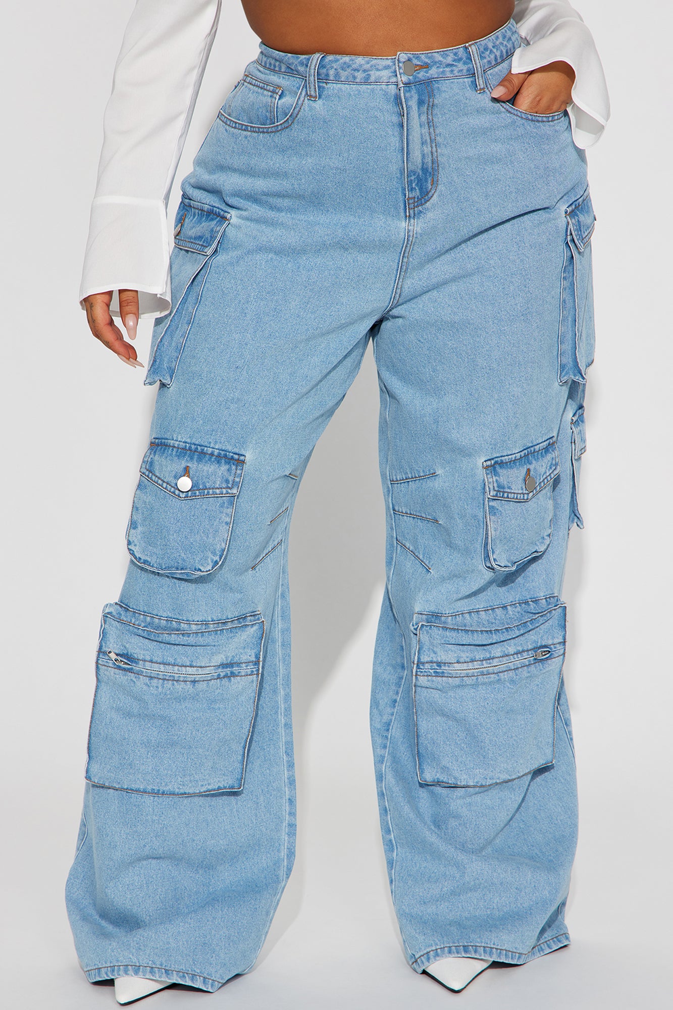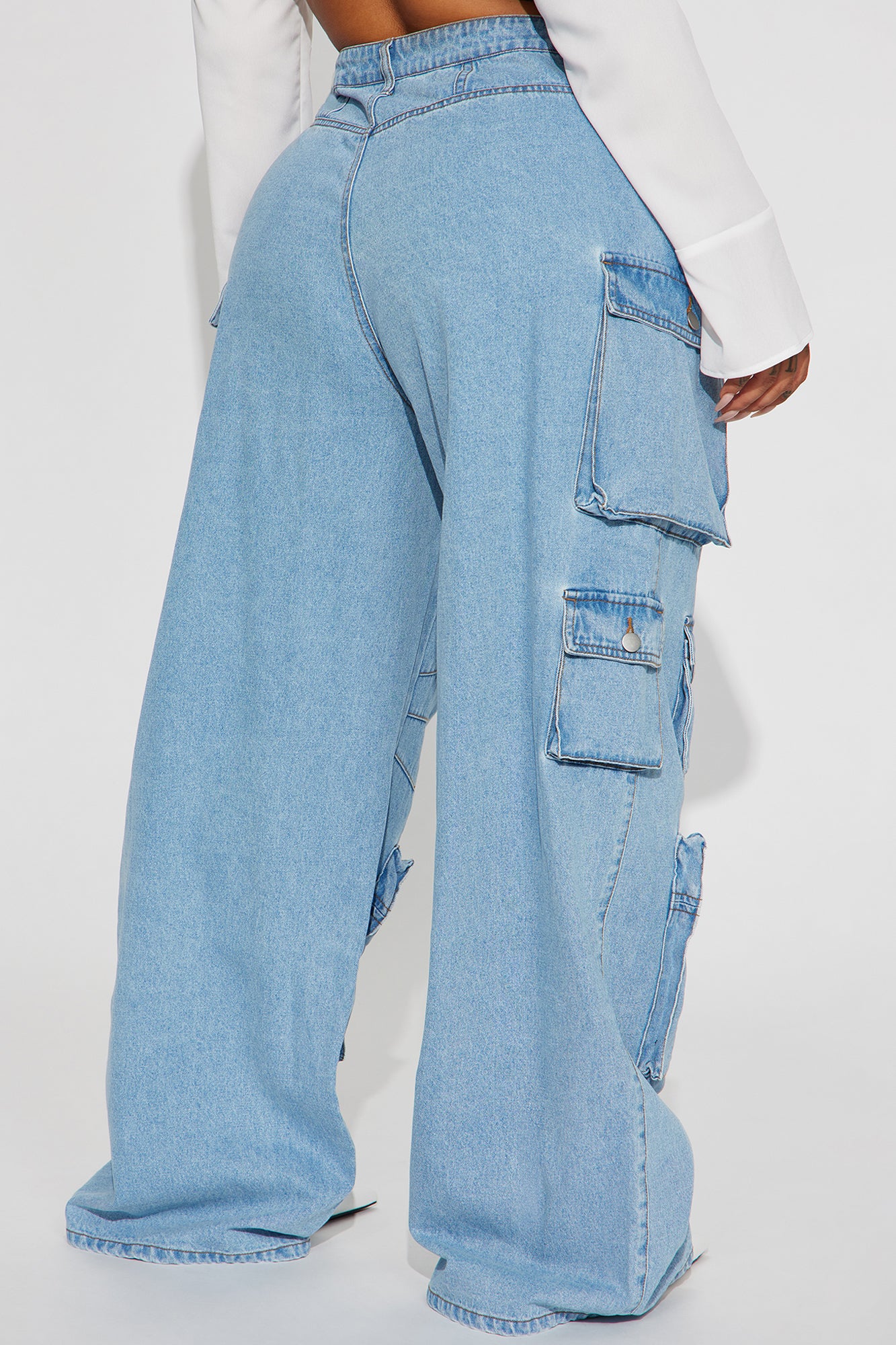 Lily High Rise Cargo Jeans - Light Wash