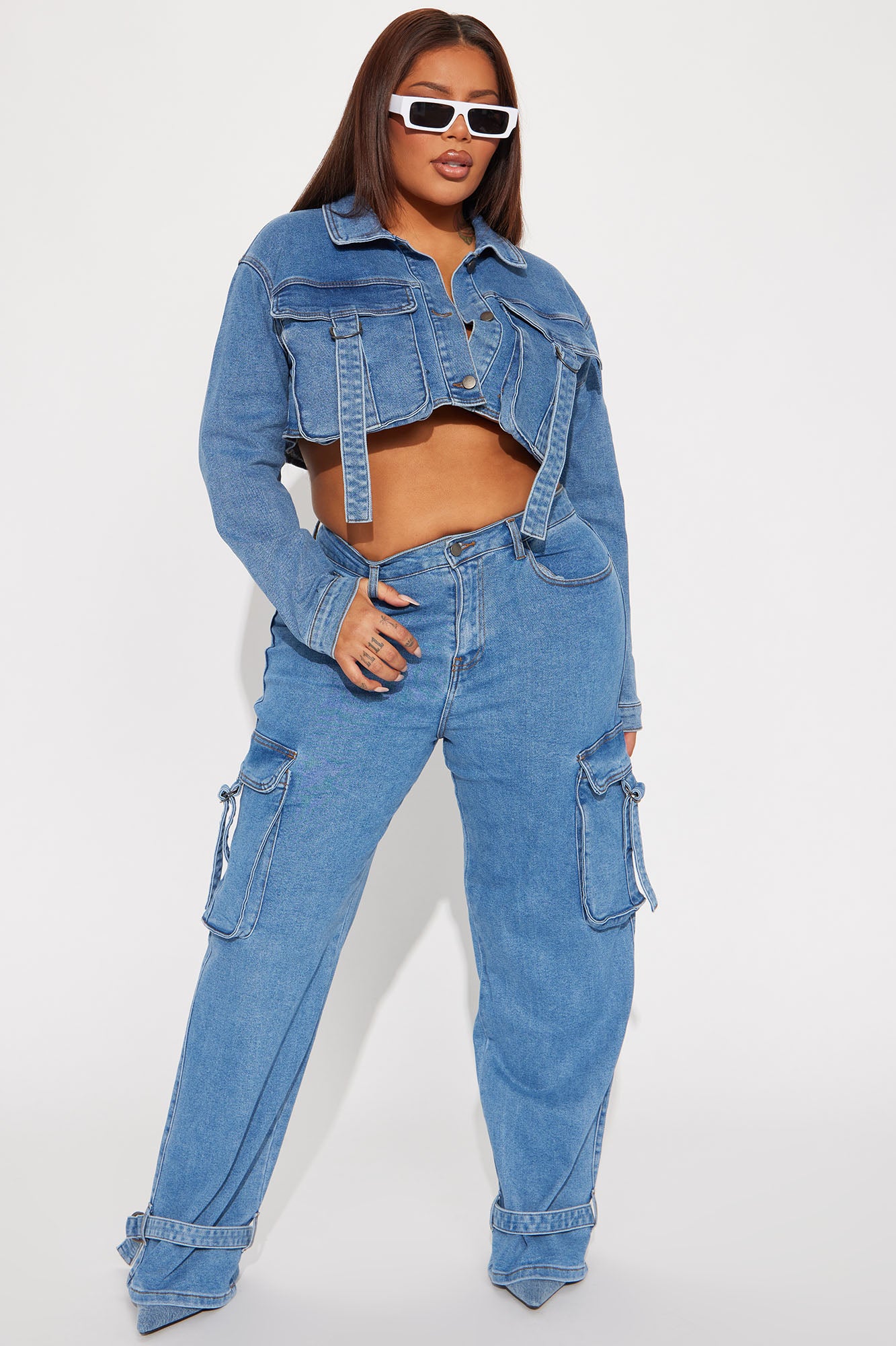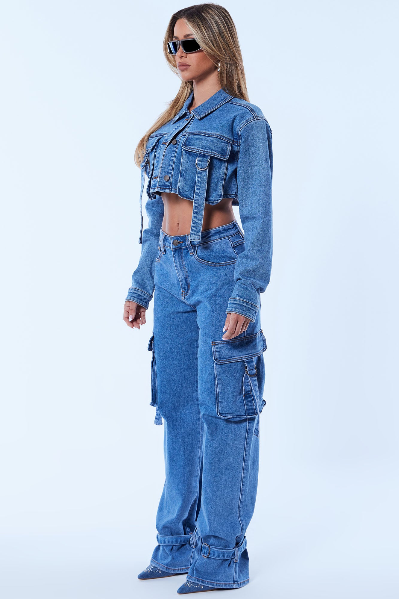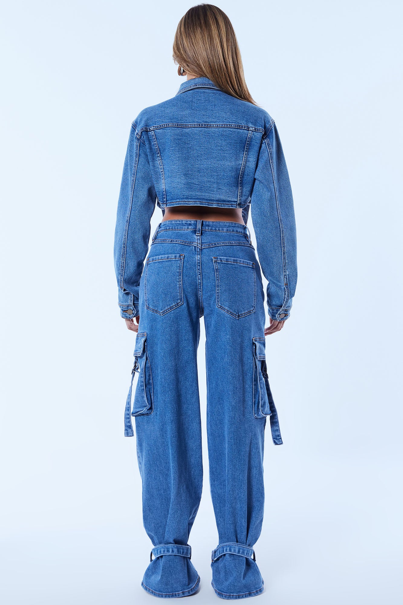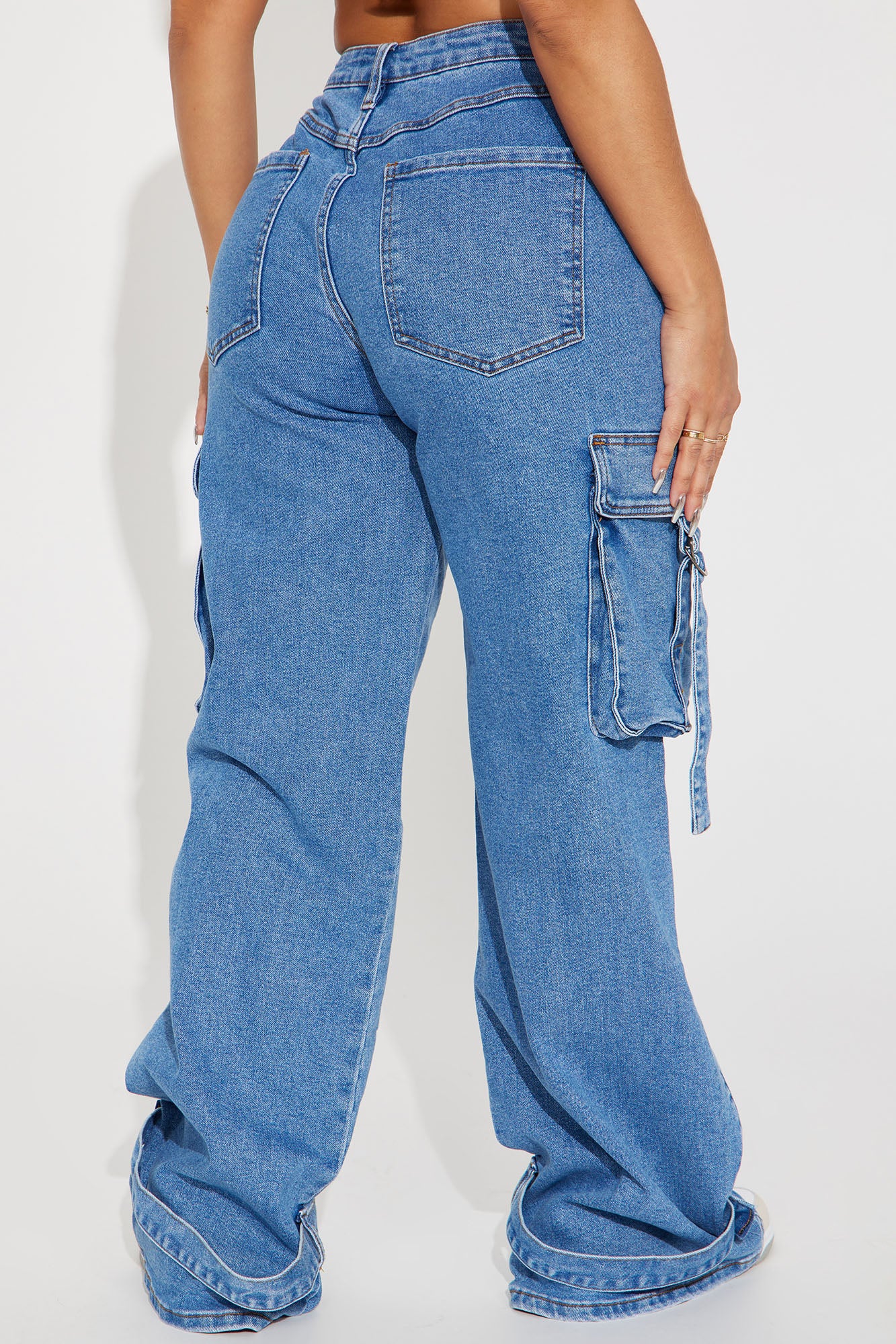 Love Hurts Ankle Strap Cargo Jeans - Medium Blue Wash