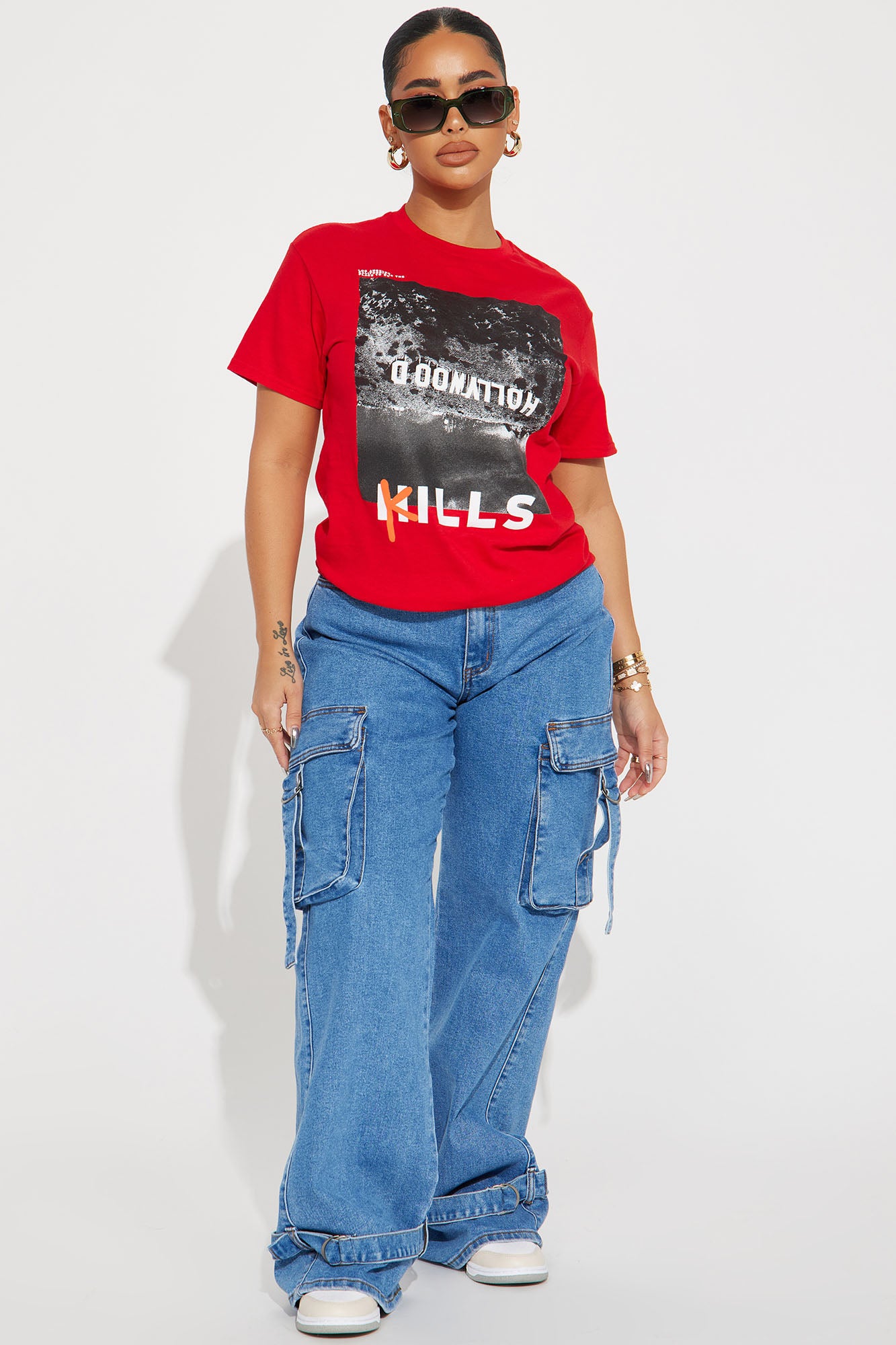 • Love Hurts Ankle Strap Cargo Jeans - Medium Blue Wash