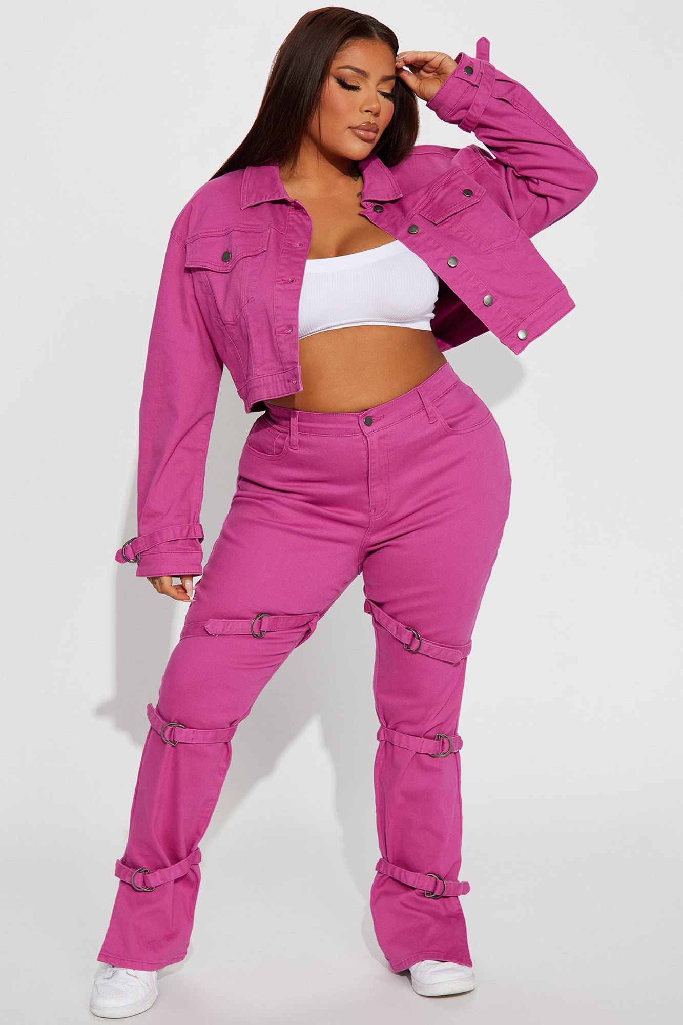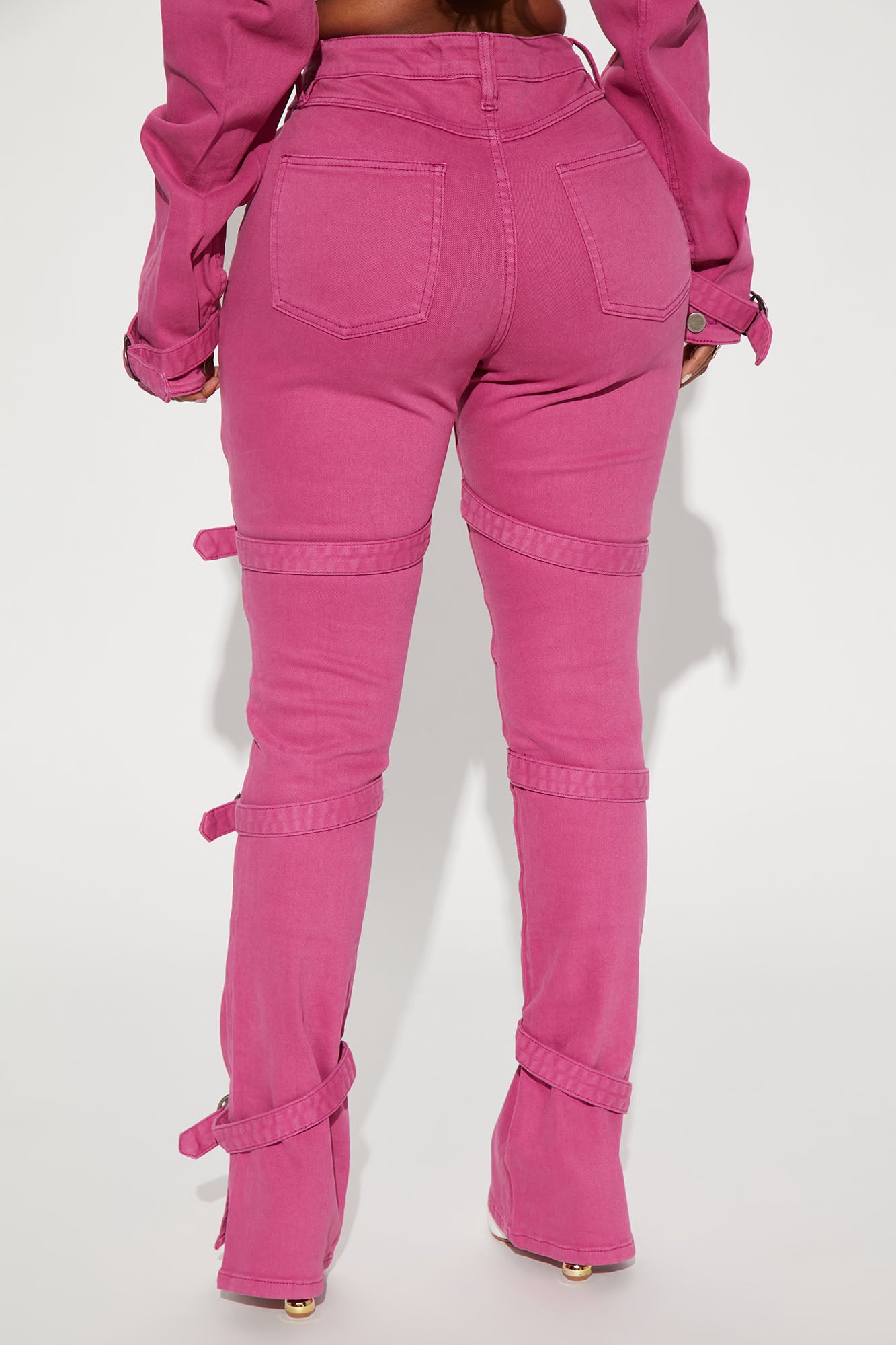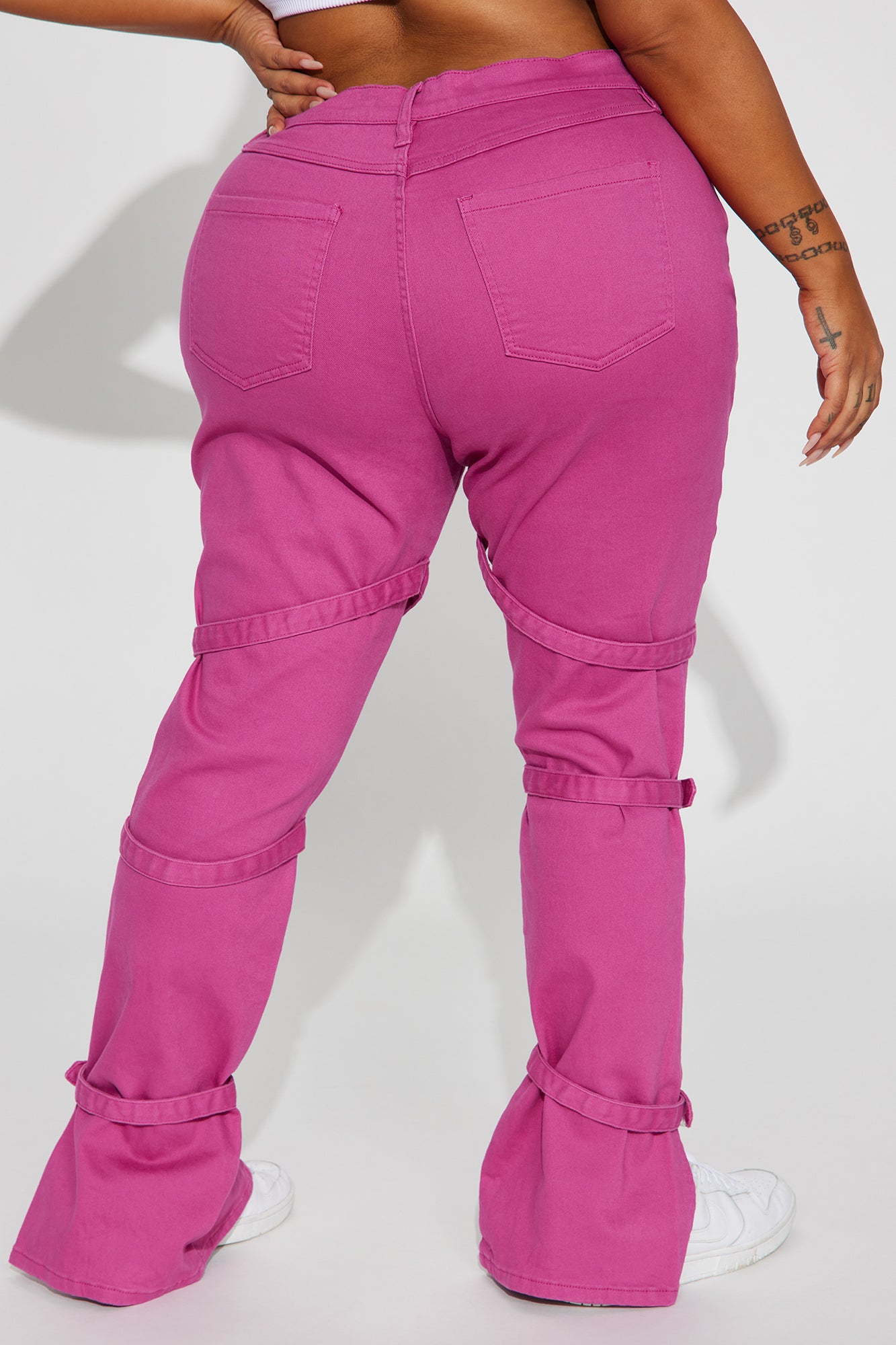 • Lovefool Strappy Split Hem Straight Leg Jeans - Magenta