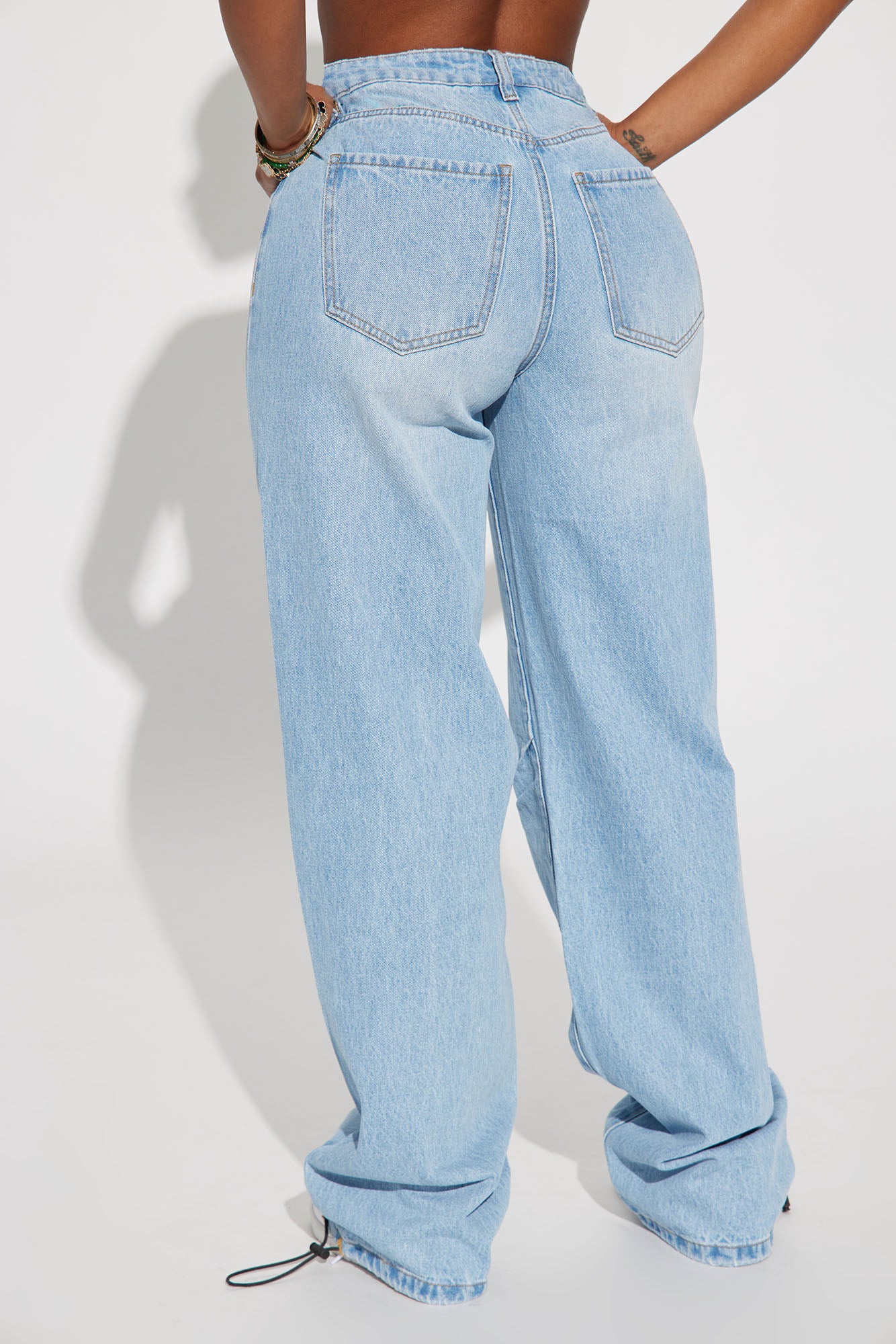 Make It Happen Non Stretch Straight Leg Bungee Jean - Light Wash