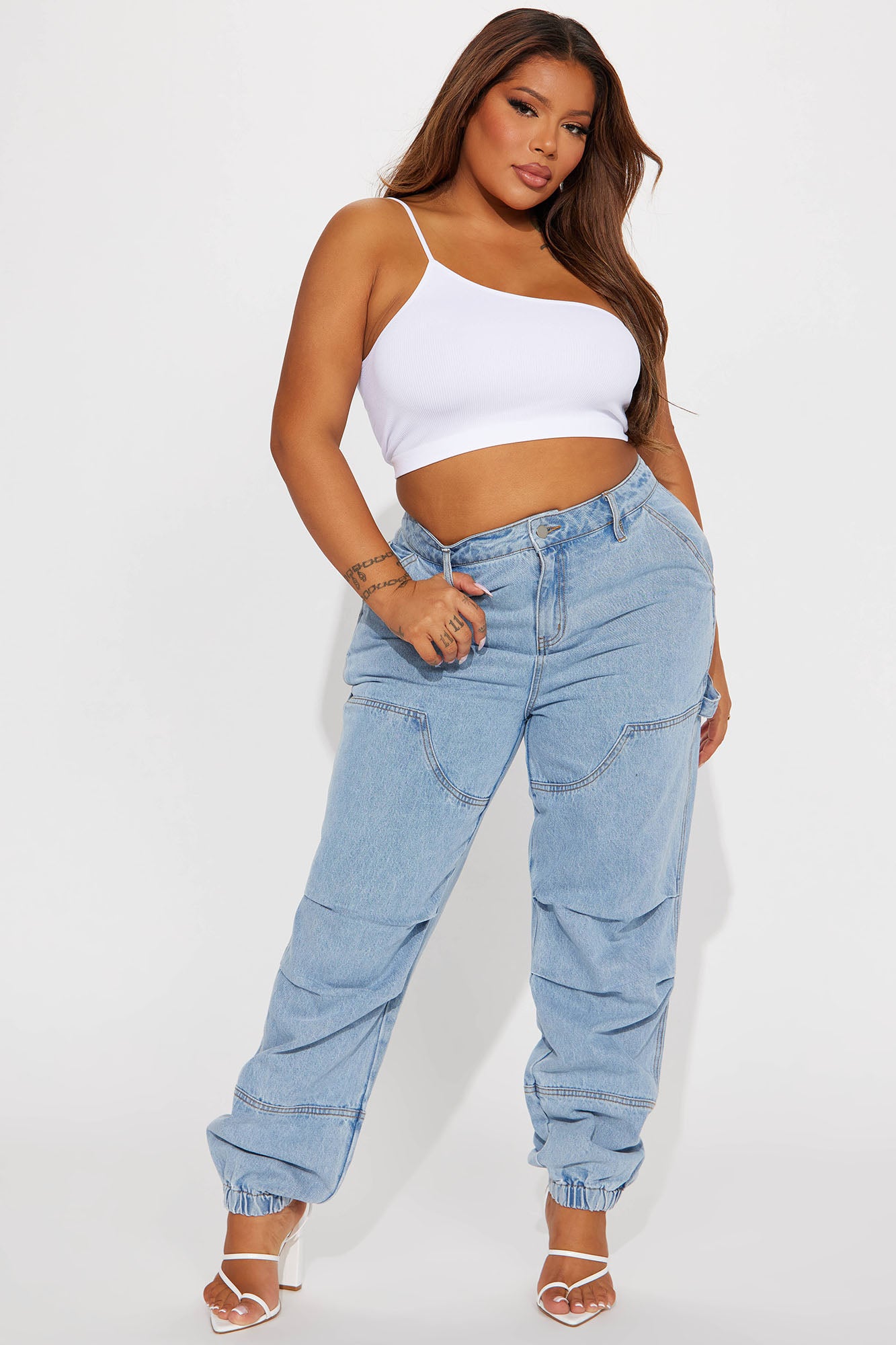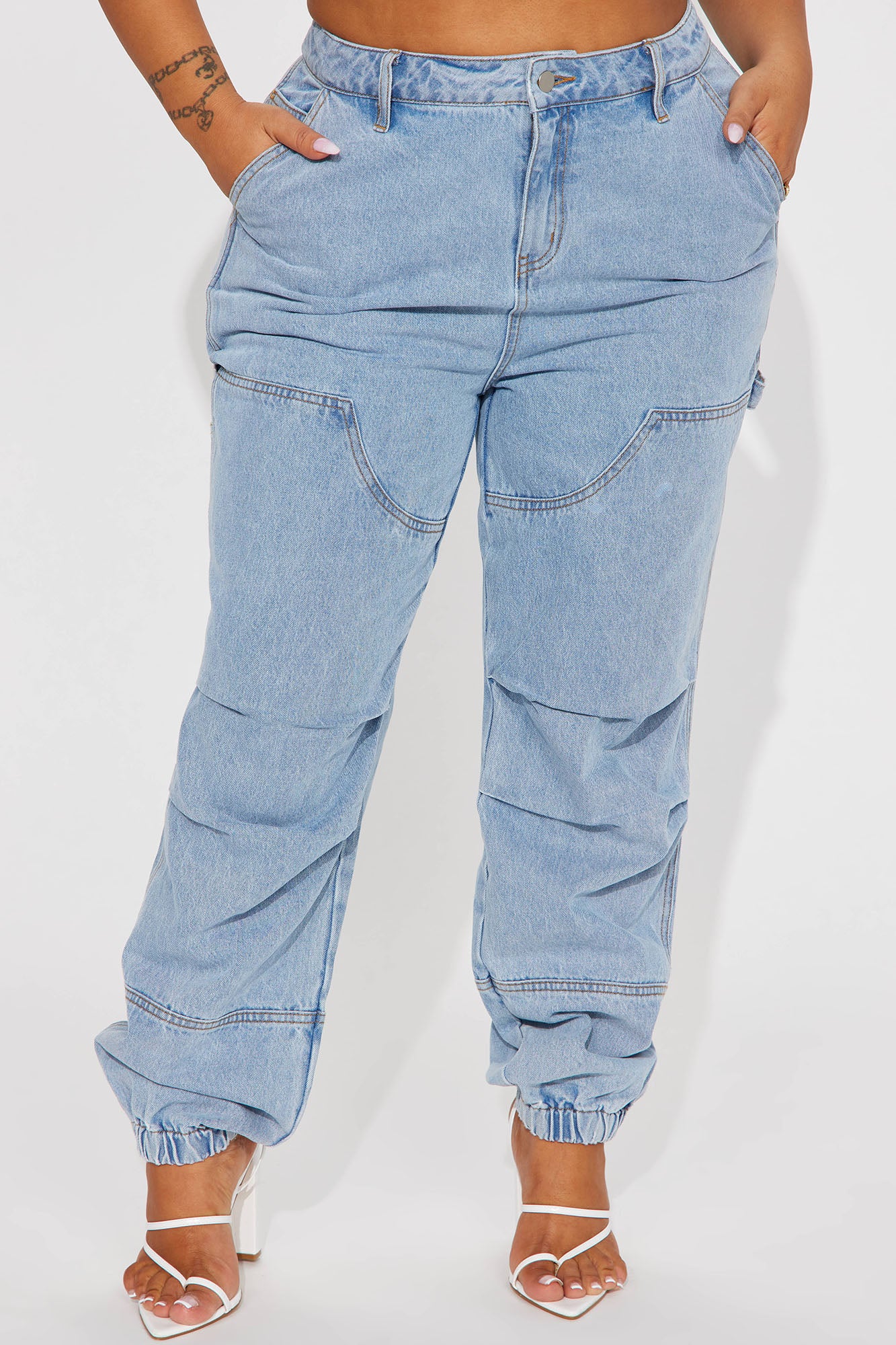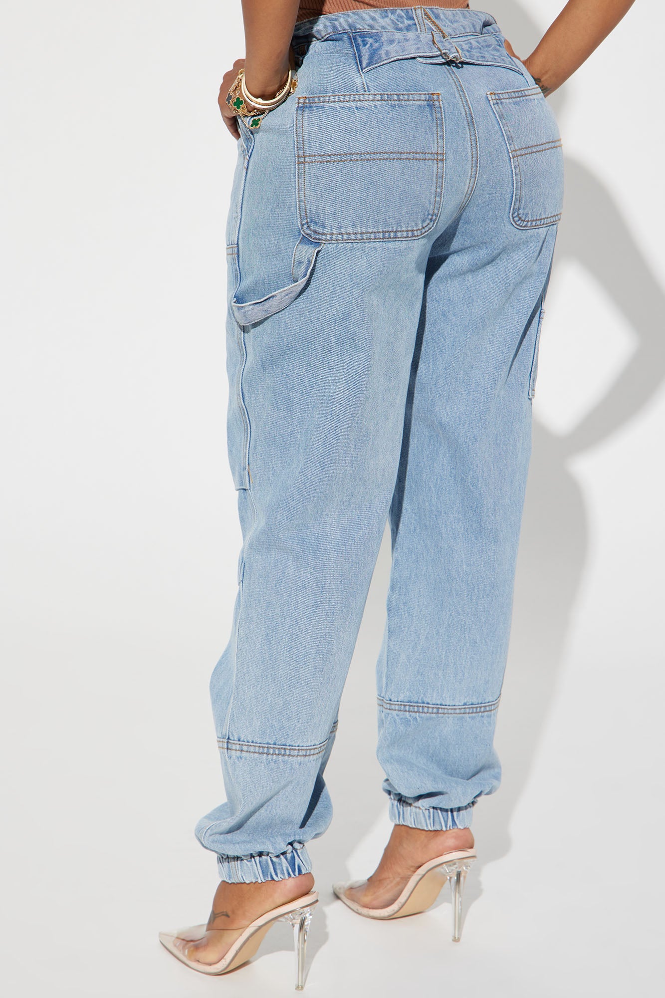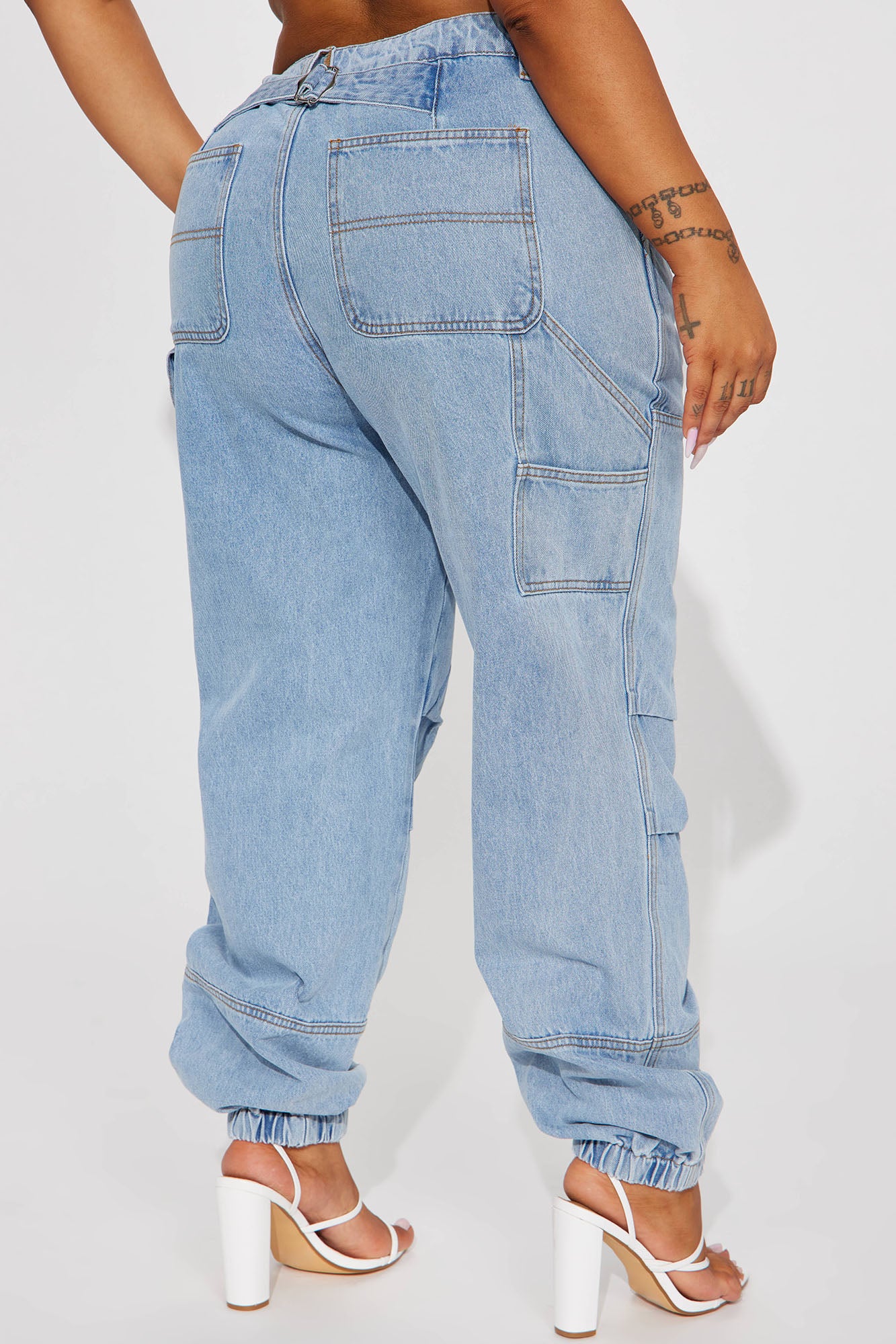 Mutual Attraction Non Stretch Drop Waist Utility Jeans - Light Wash