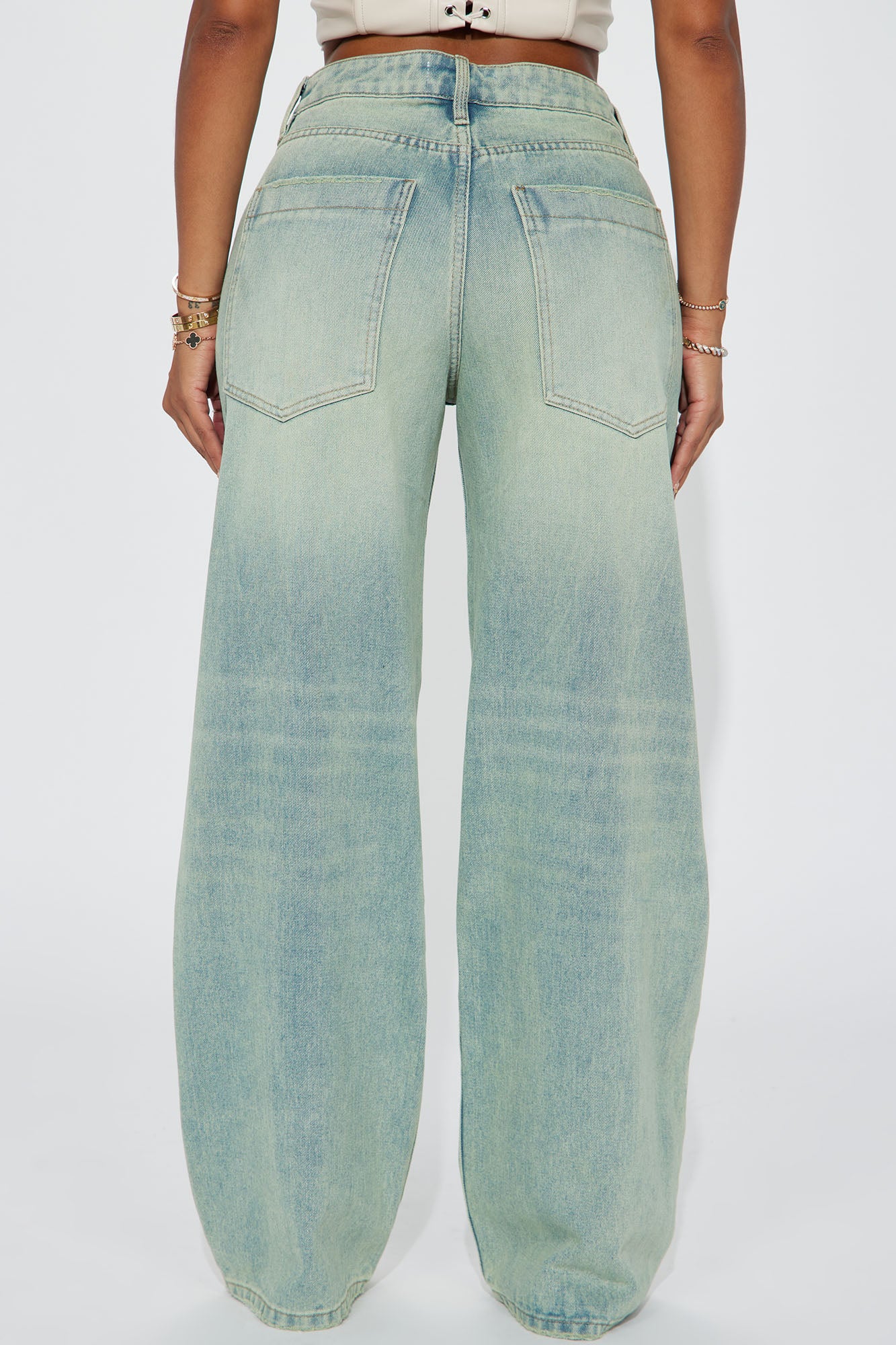 Naples Tinted Drop Waist Baggy Jeans - Light Wash