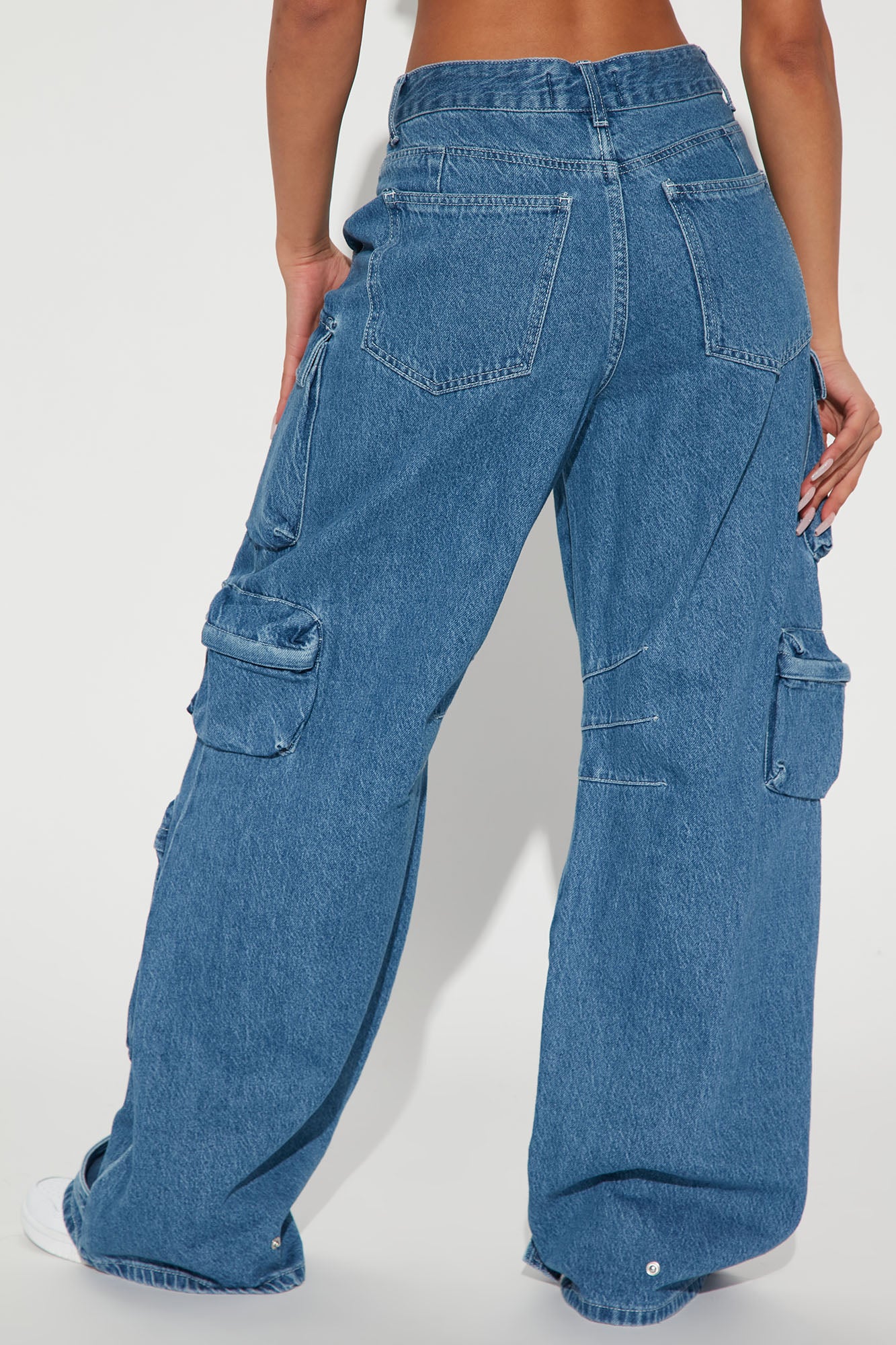 • No Boys Allowed High Rise Cargo Jeans - Medium Blue Wash