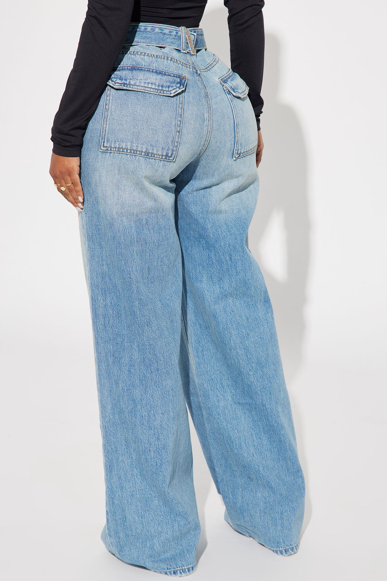 No Limit Belted Non Stretch Wide Leg Jean - Medium Wash