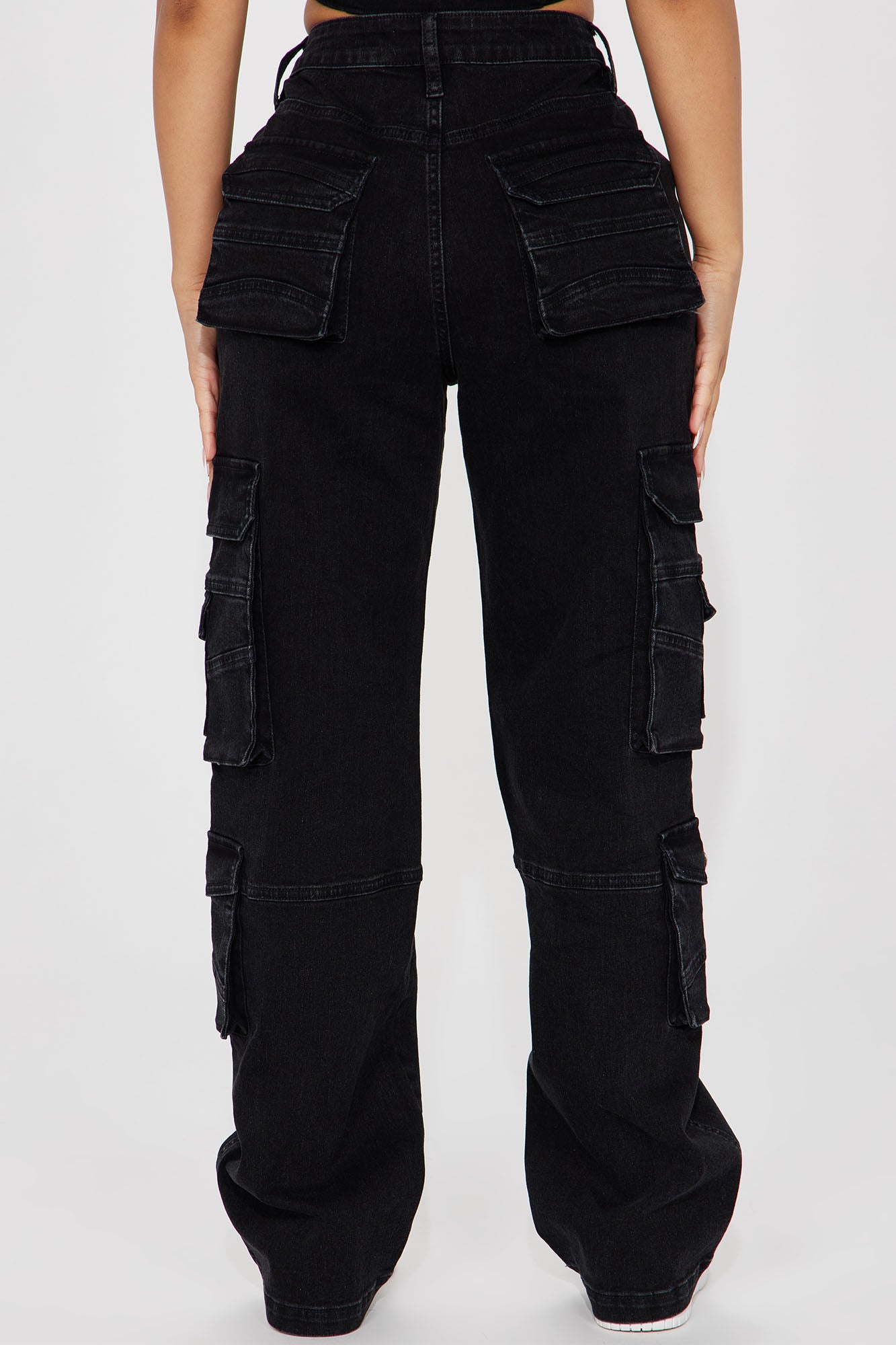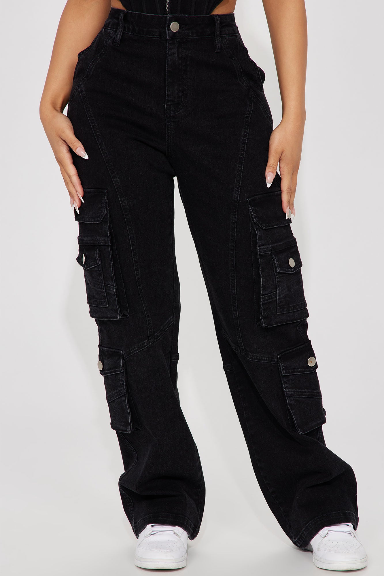 • Petite Mulholland Drive 90's Cargo Straight Leg Jeans - Black Wash