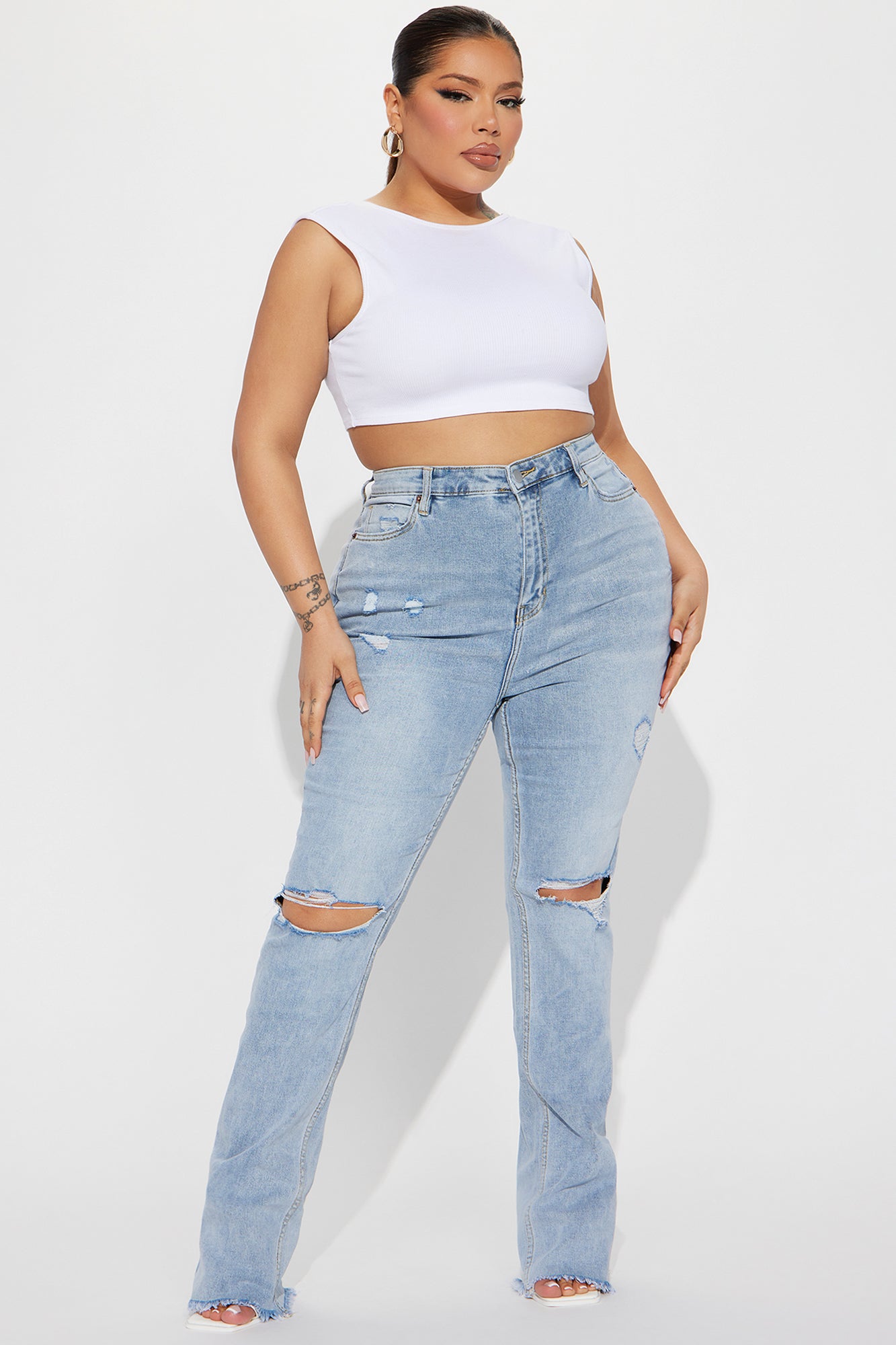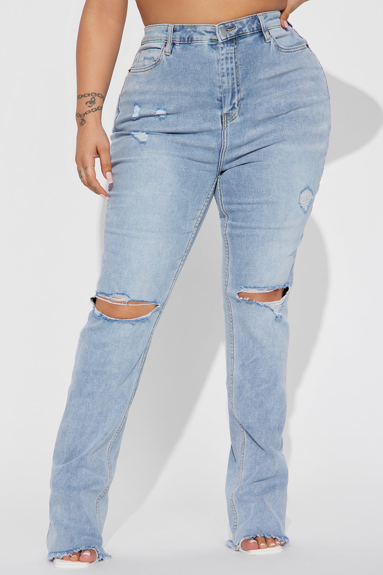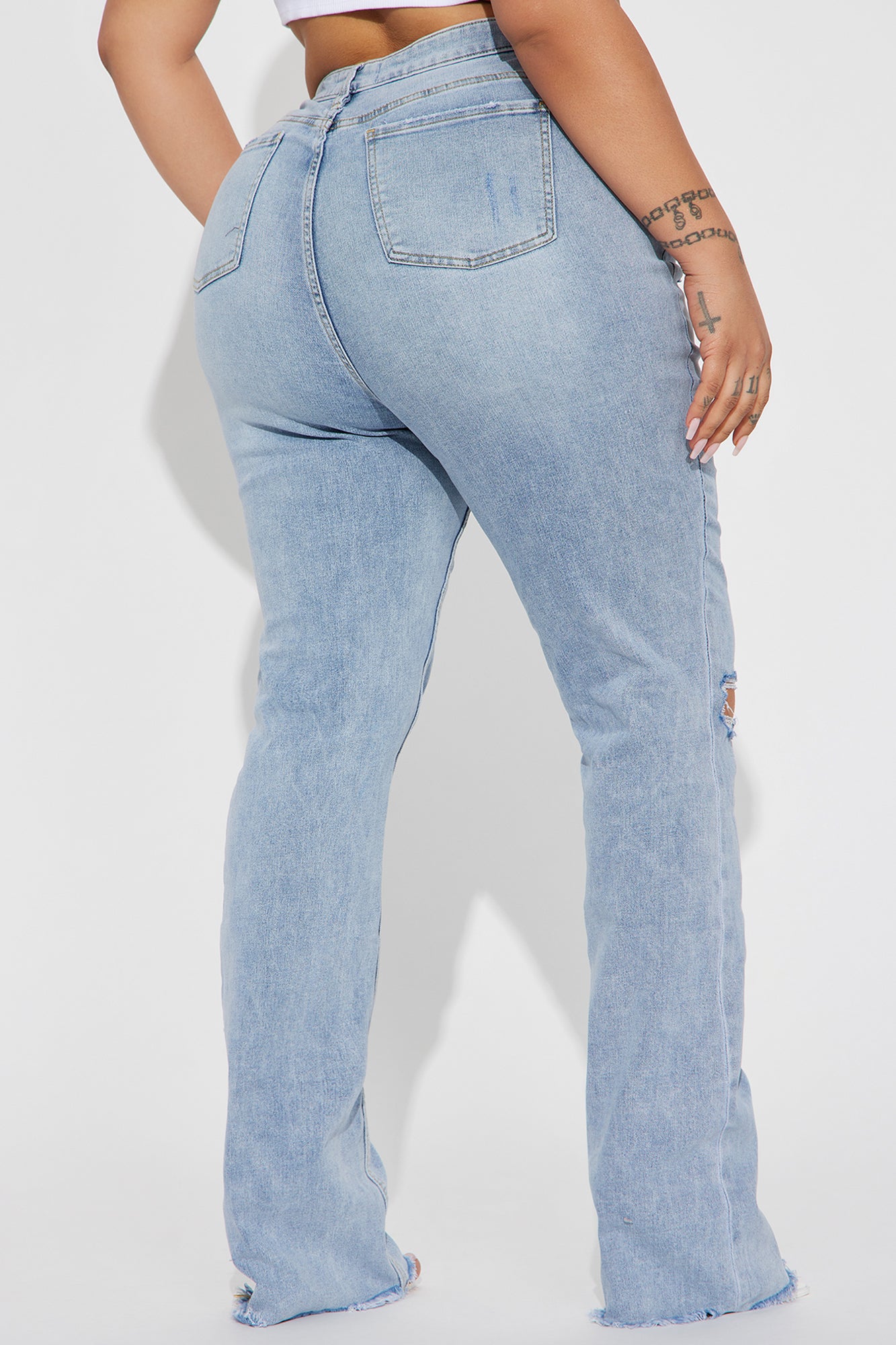 Really Rowdy Ripped Stretch Flare Jeans - Light Wash