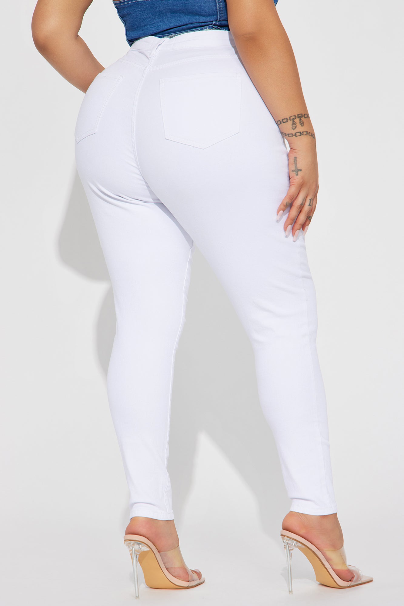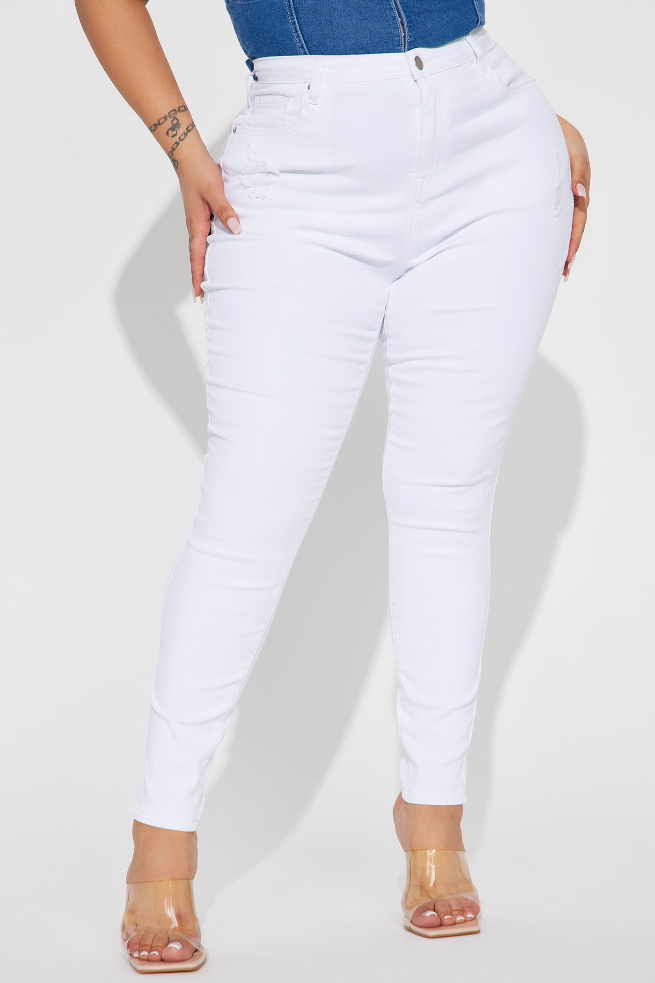 Riley Ripped High Rise Stretch Skinny Jeans - White