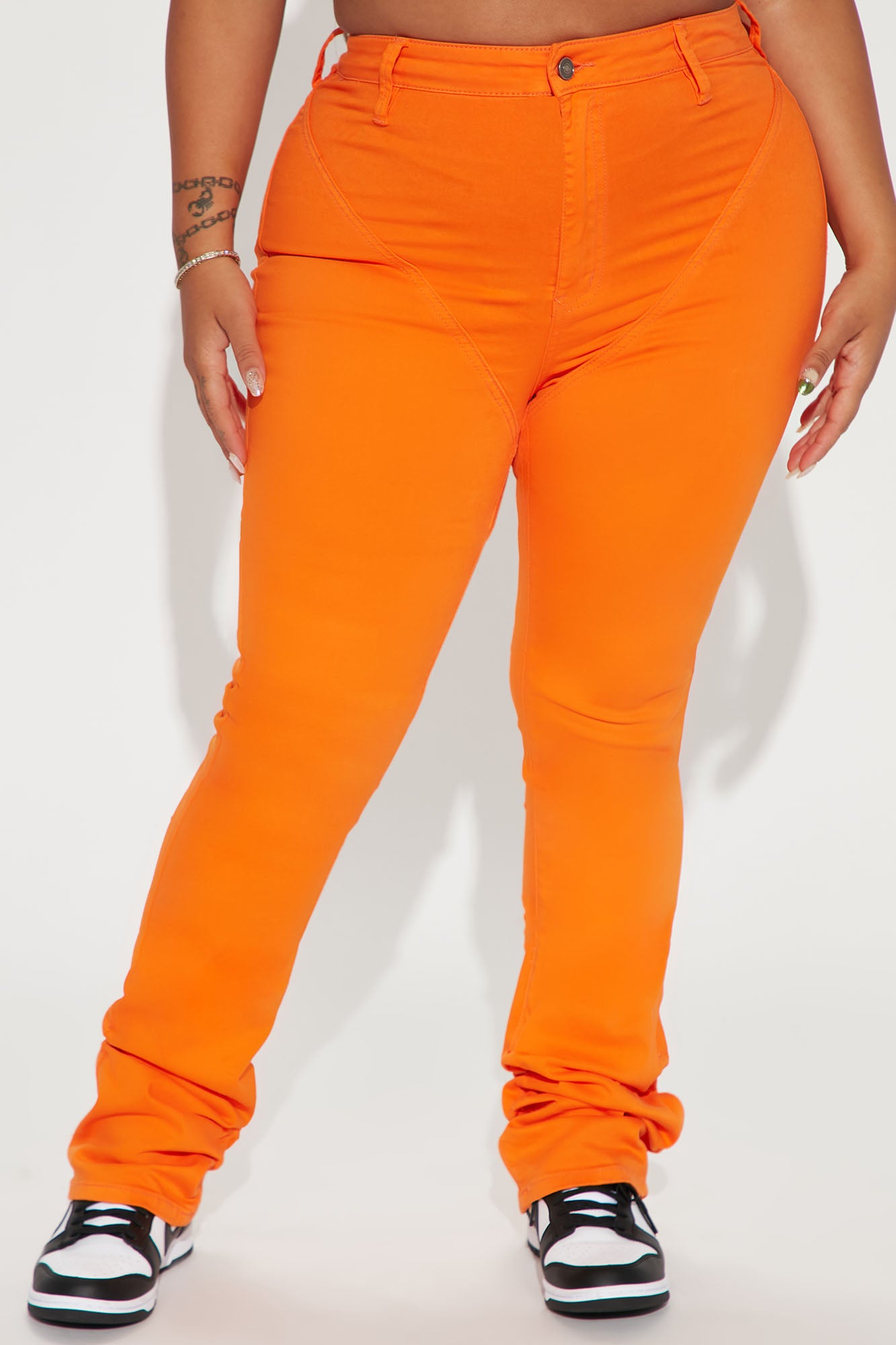 See Me High Rise Stacked Straight Leg Jeans - Orange