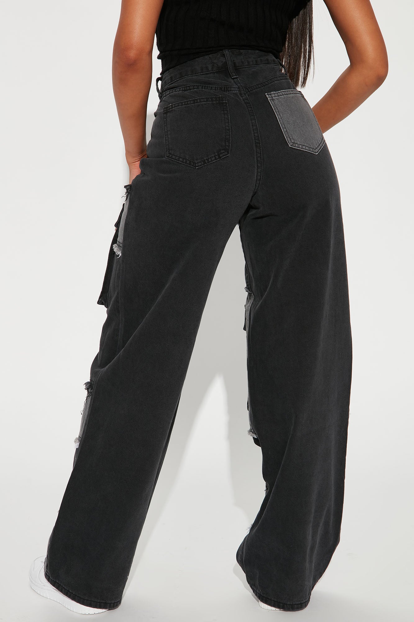 Seeing Double Patchwork Baggy Cargo Jeans - Black/combo