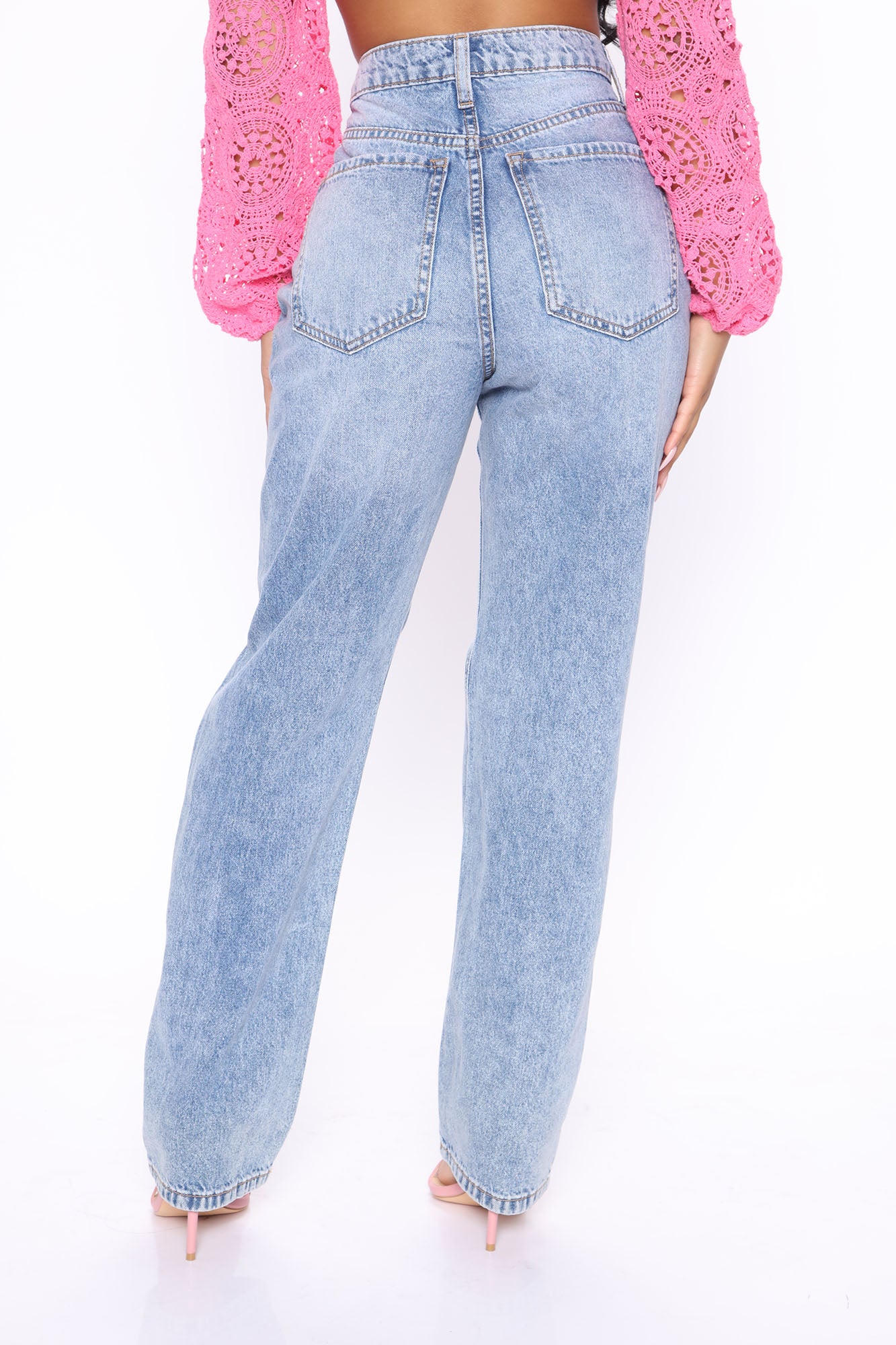 • She's A Riot Super High Rise Straight Leg Jeans - Medium Blue Wash