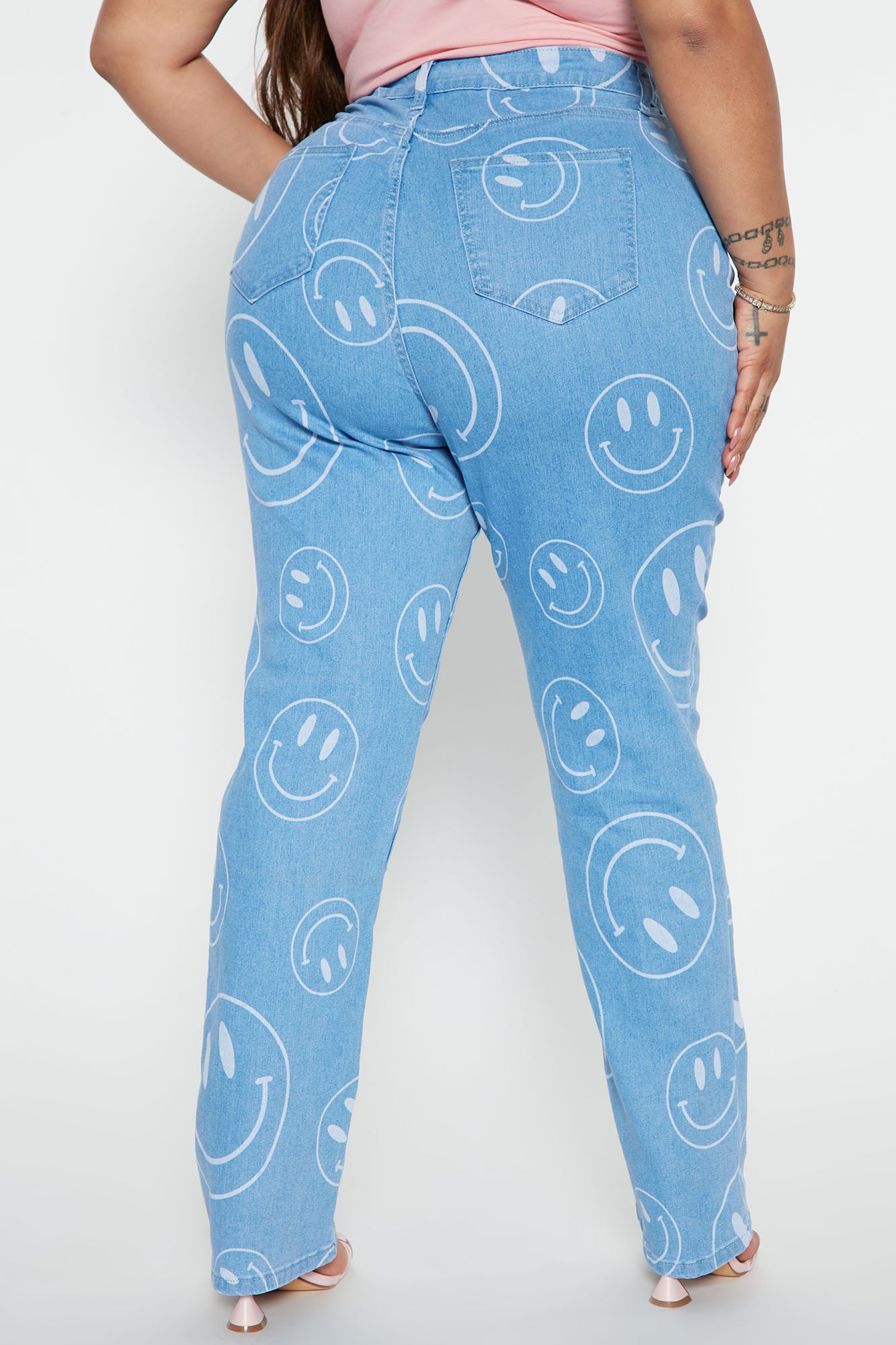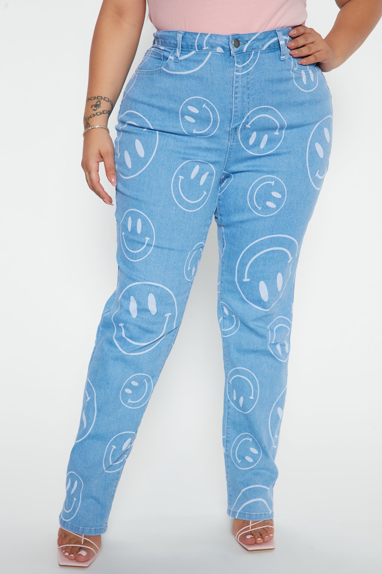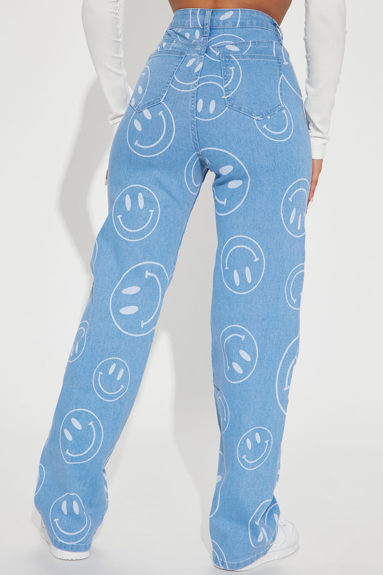 Silly Smiles High Waisted Straight Leg Jeans - Light Blue Wash