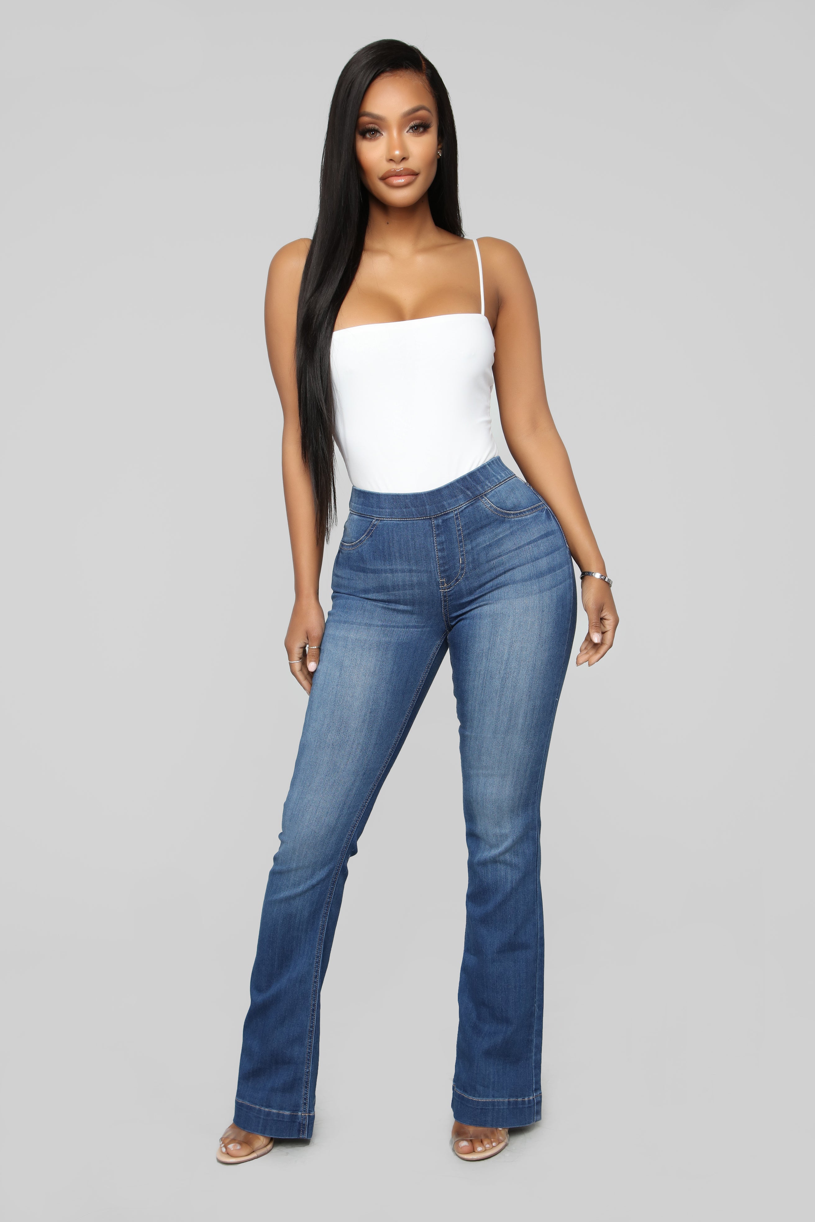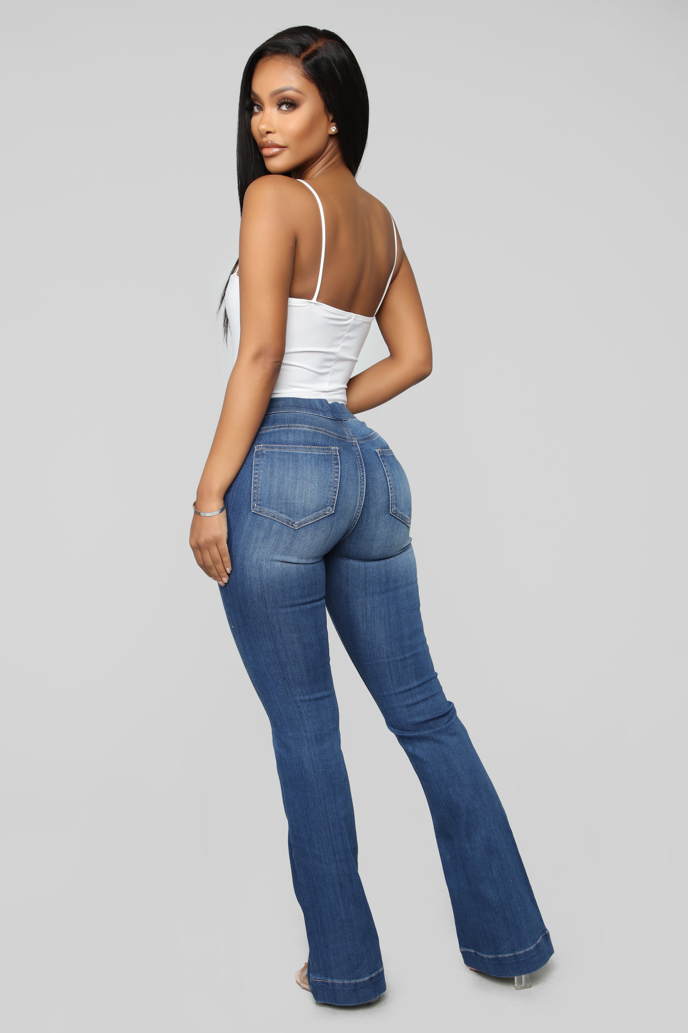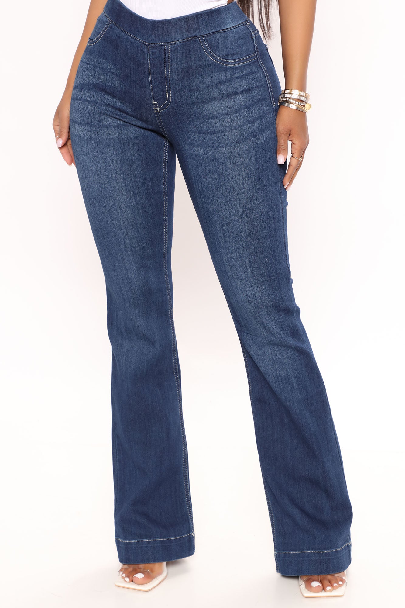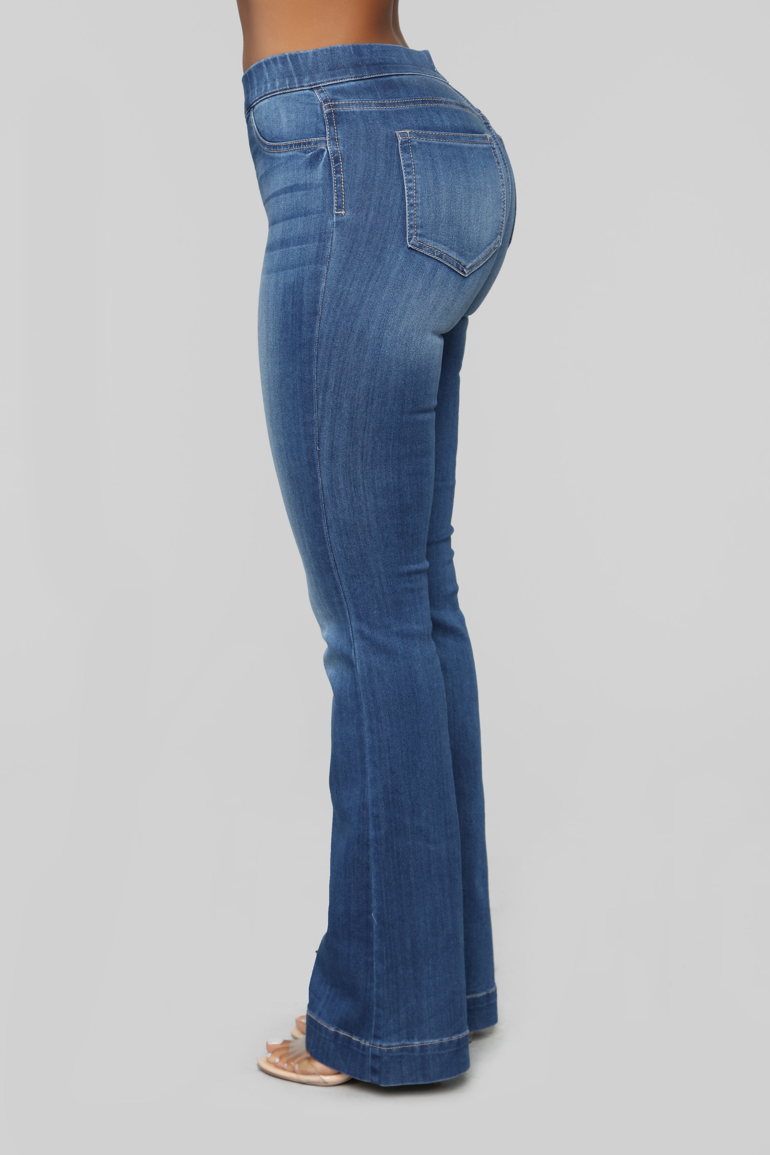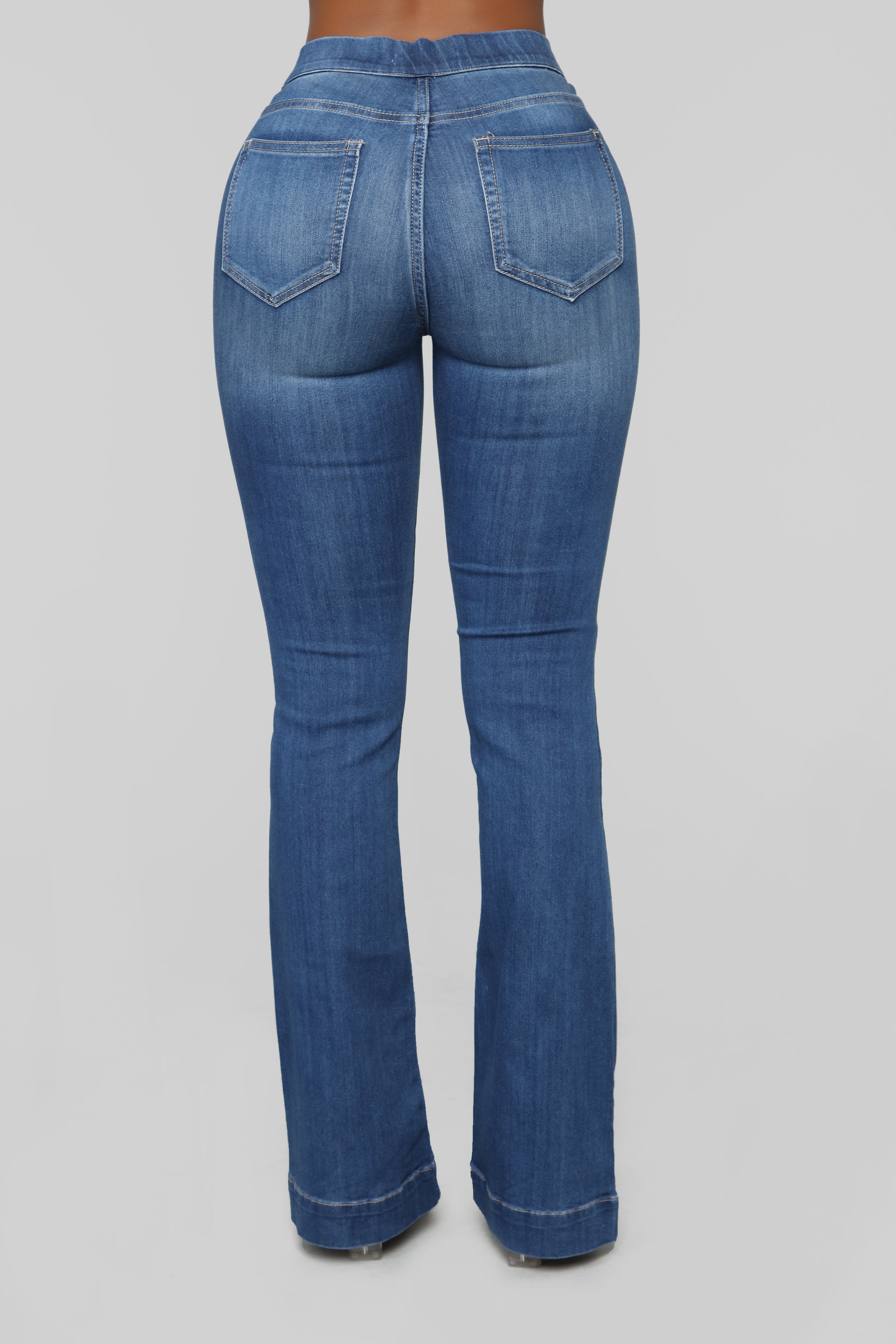 Start Something Mid Rise Flare Jeans - Medium Blue Wash
