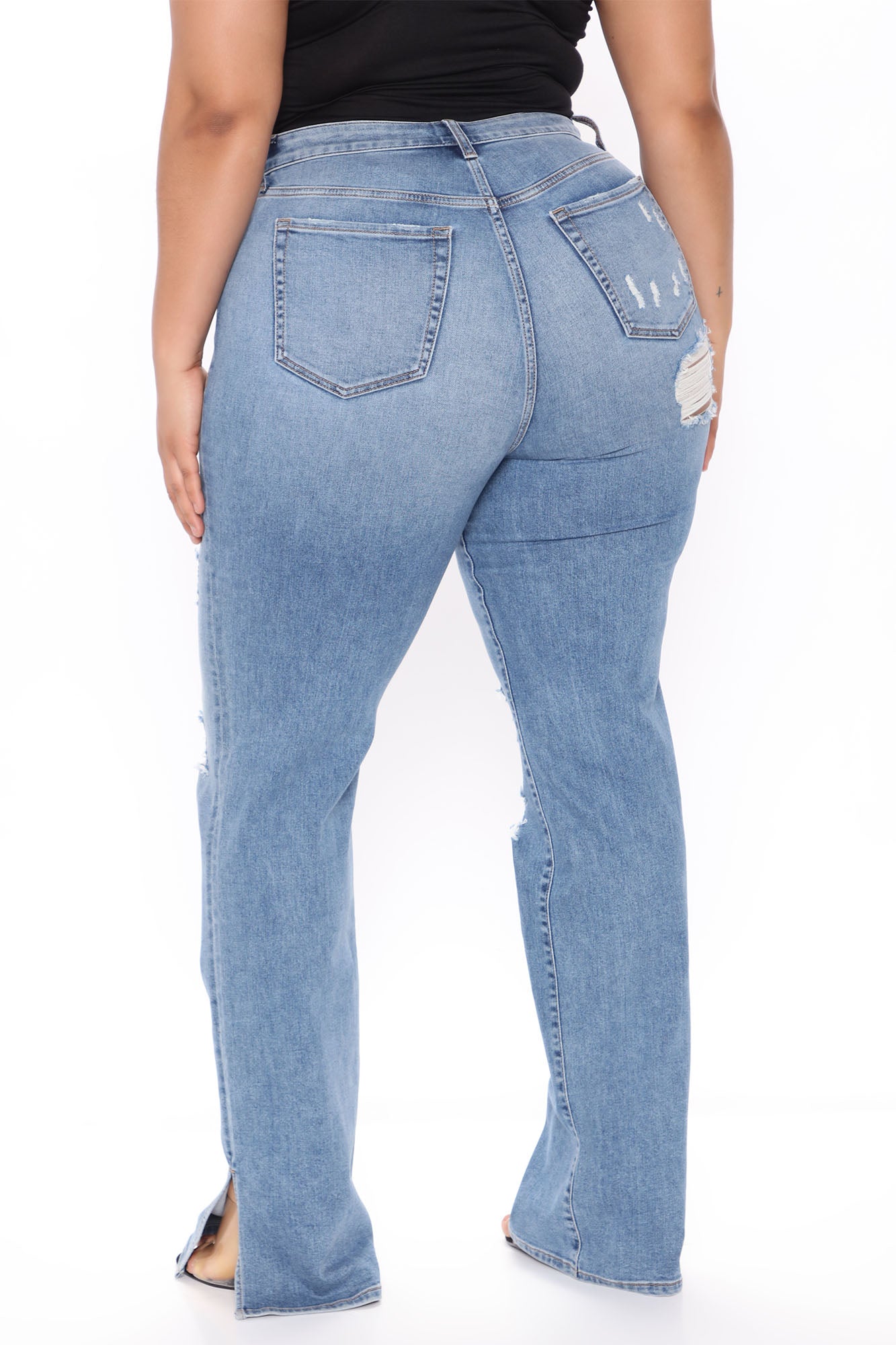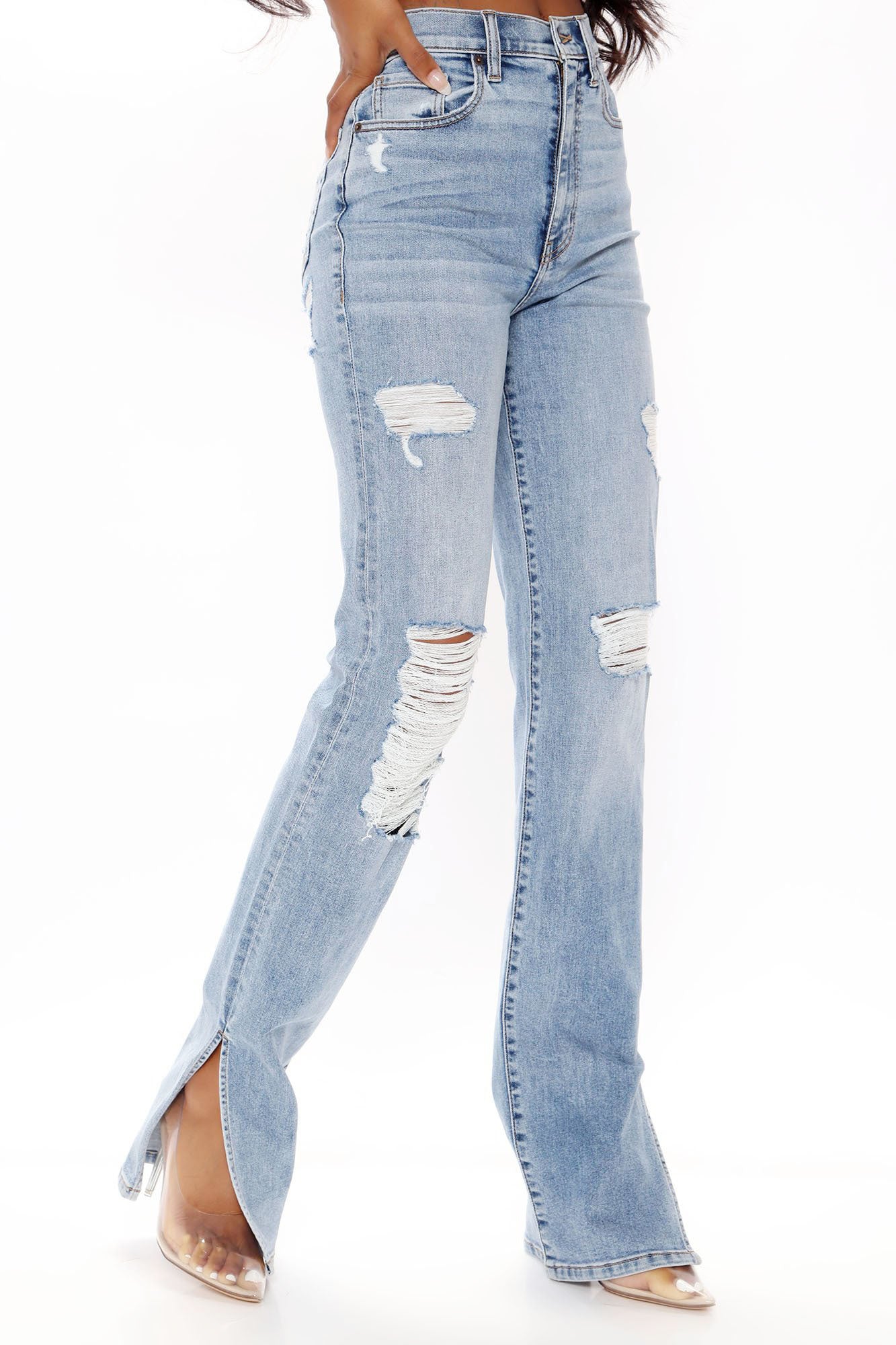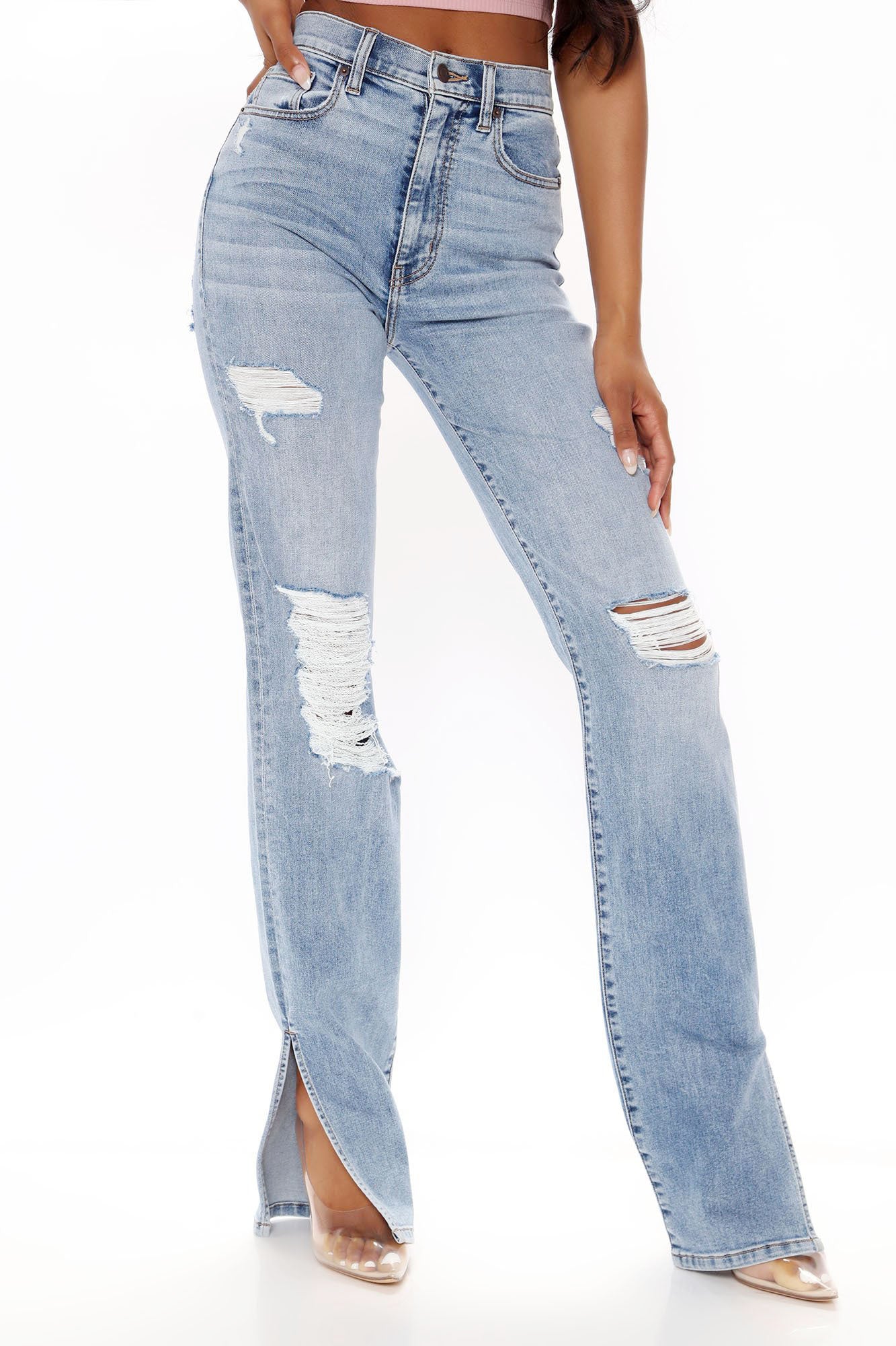 • Tall Killing 'Em Softly Distressed Side Split Jeans - Light Blue Wash
