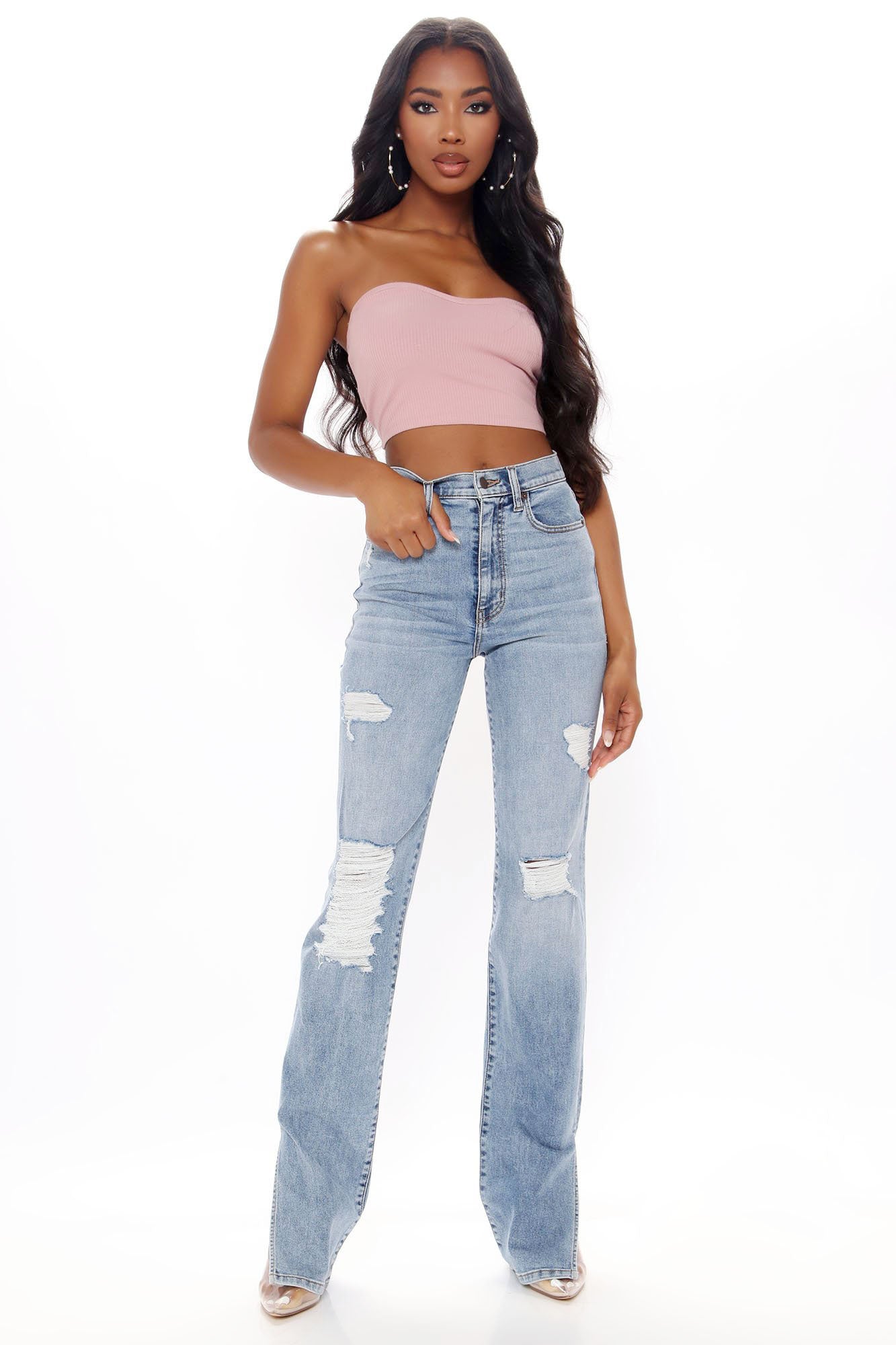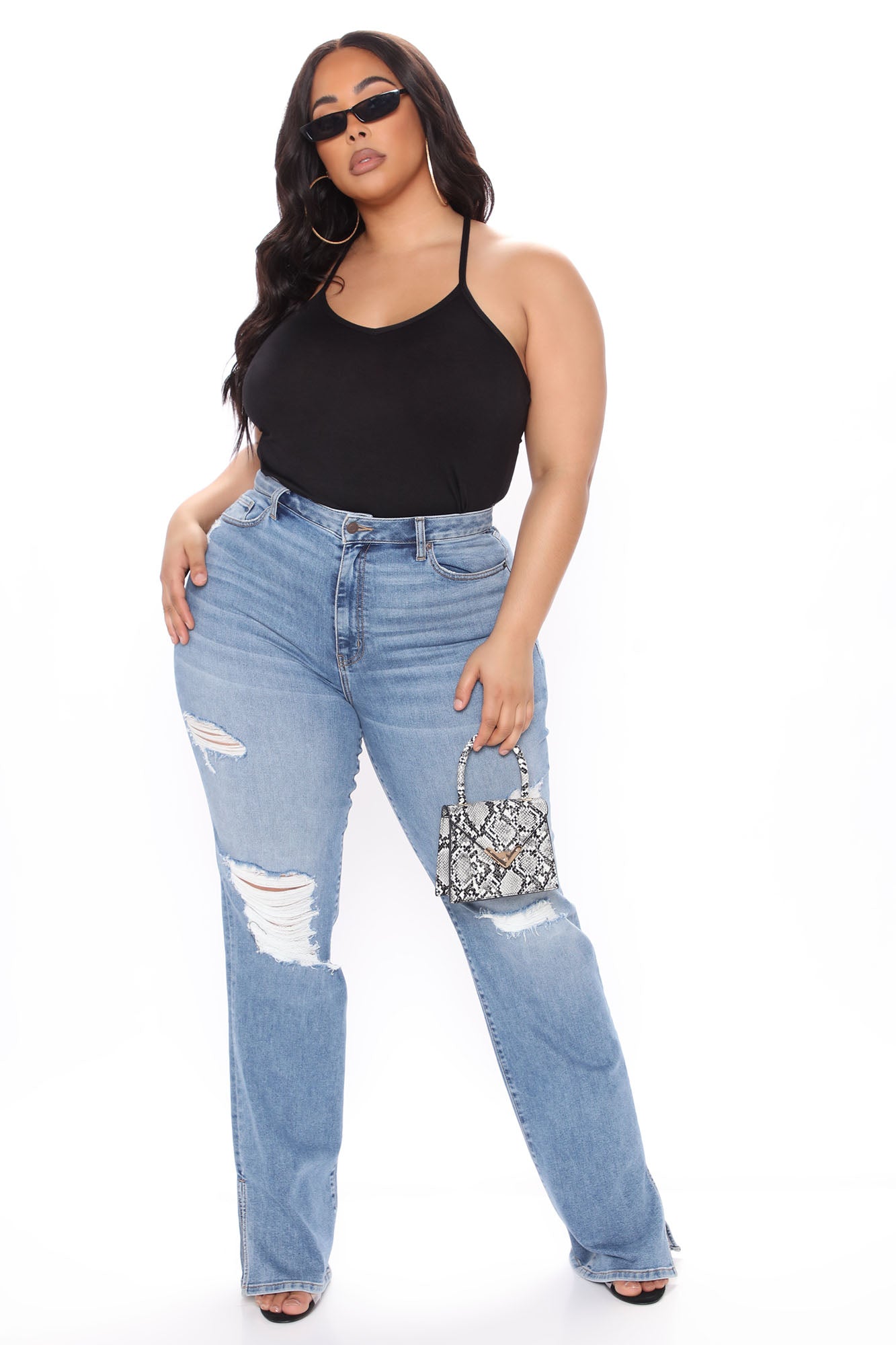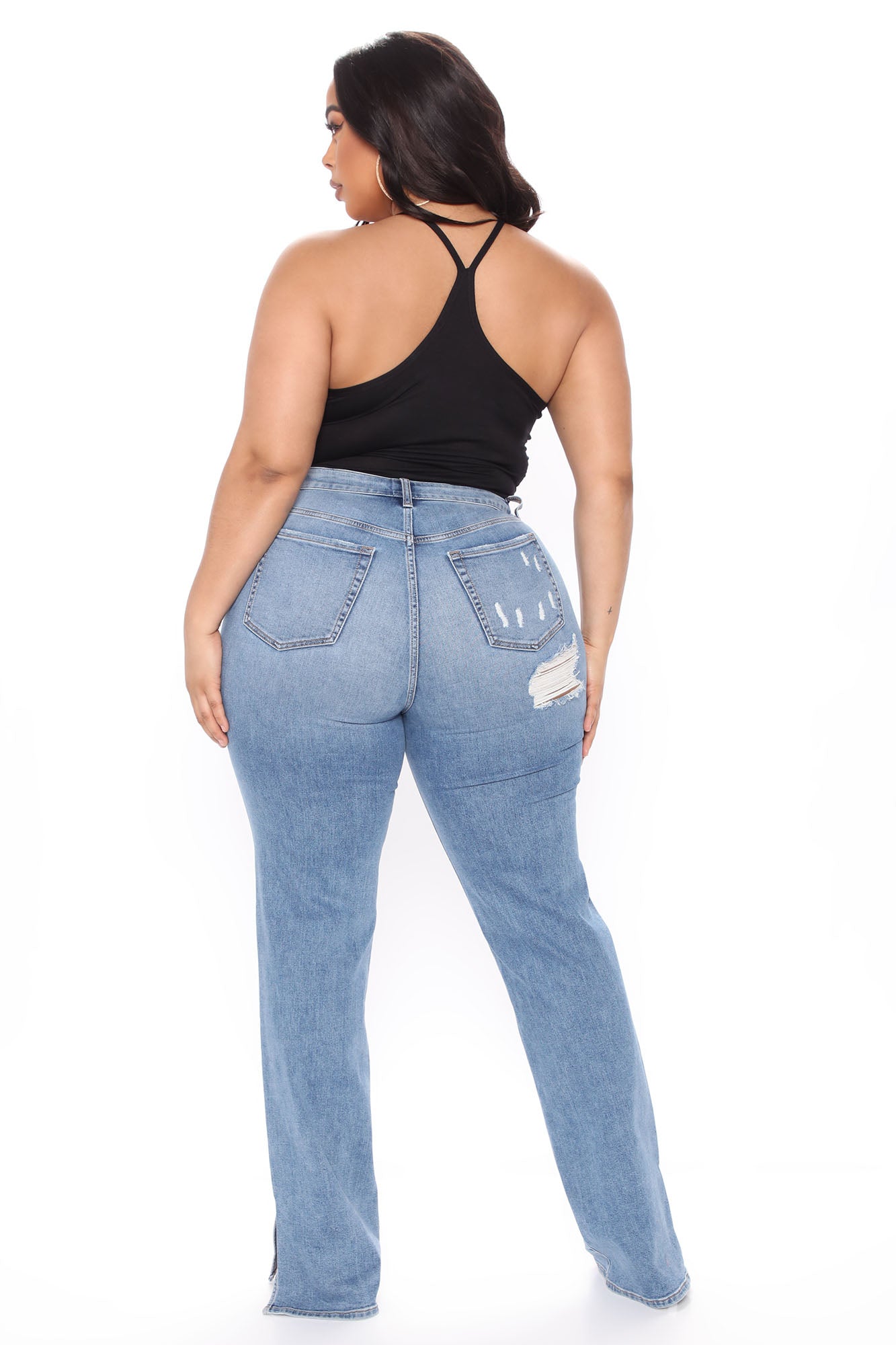 • Tall Killing 'Em Softly Distressed Side Split Jeans - Light Blue Wash