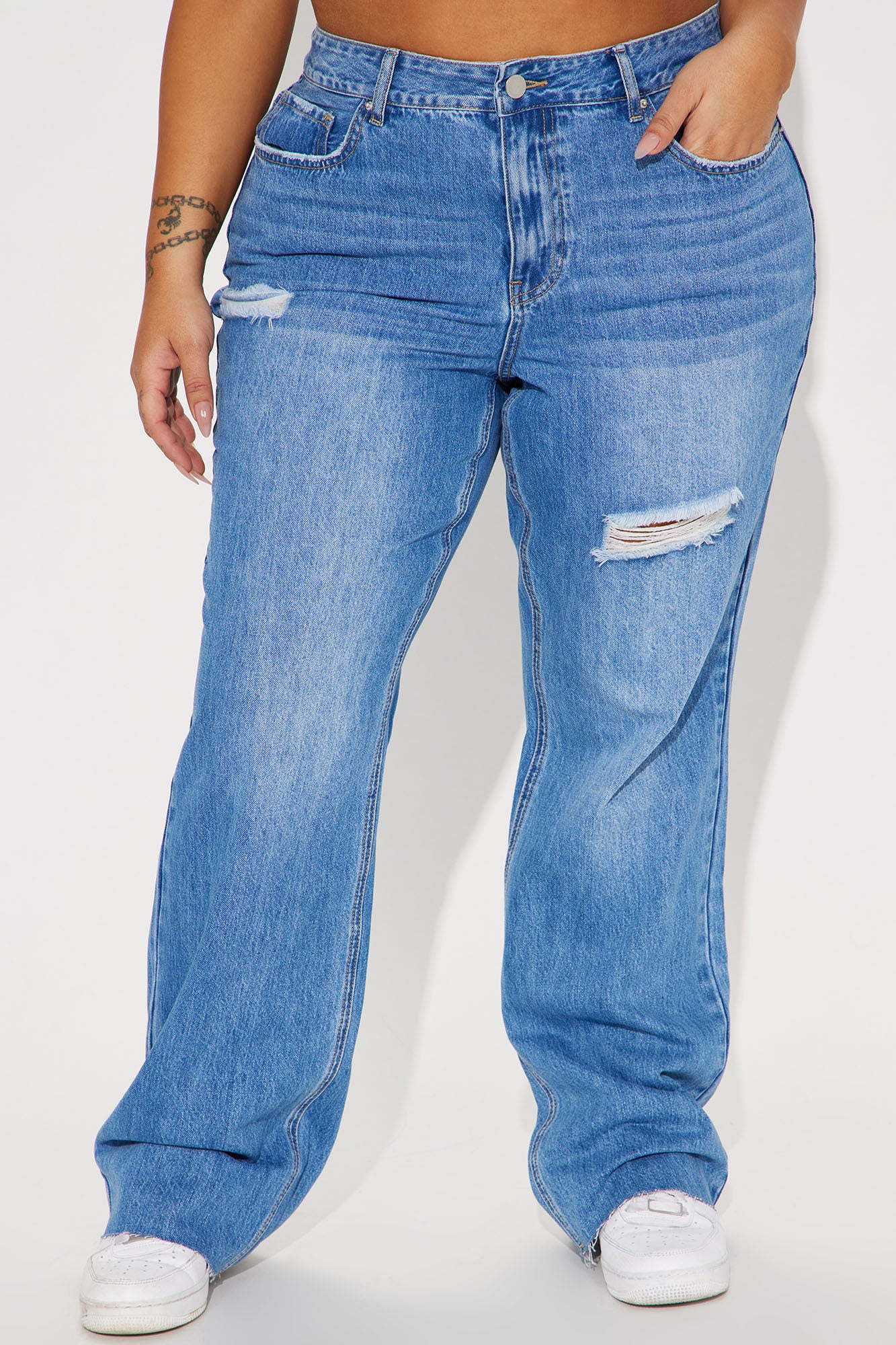 Worth The Wait Ripped Straight Leg Jean - Medium Wash