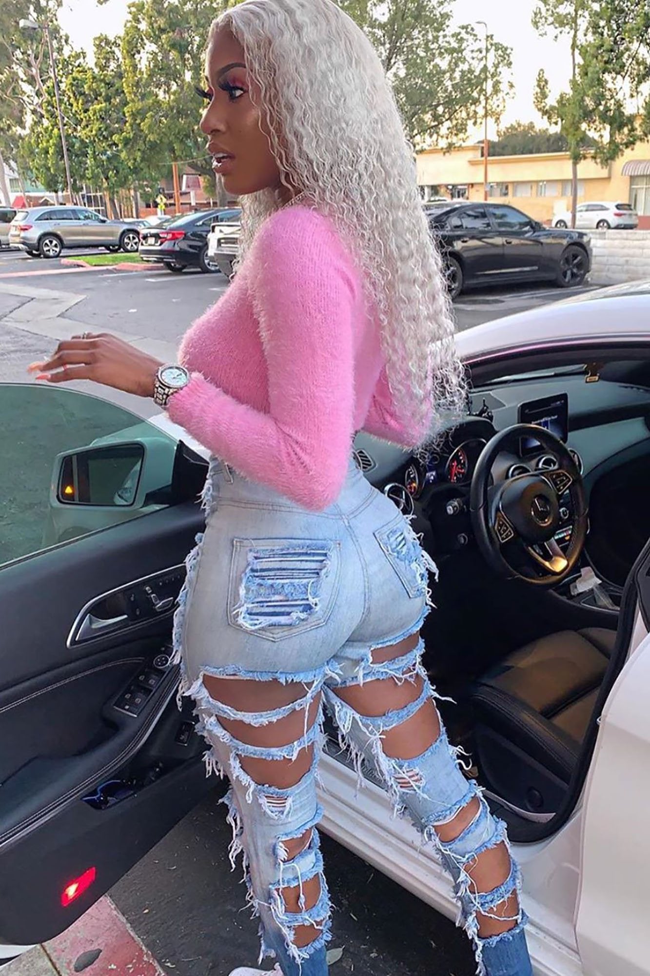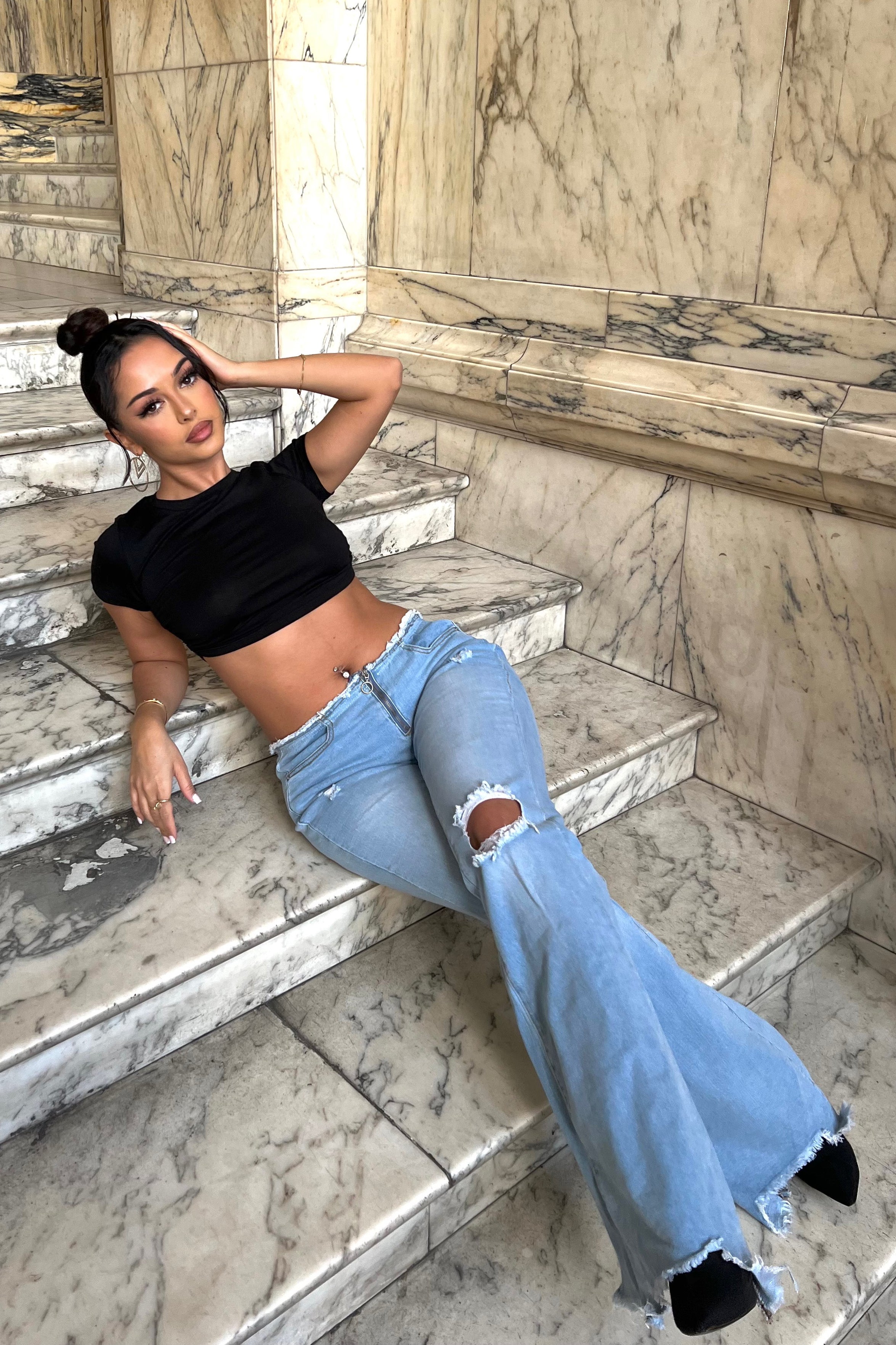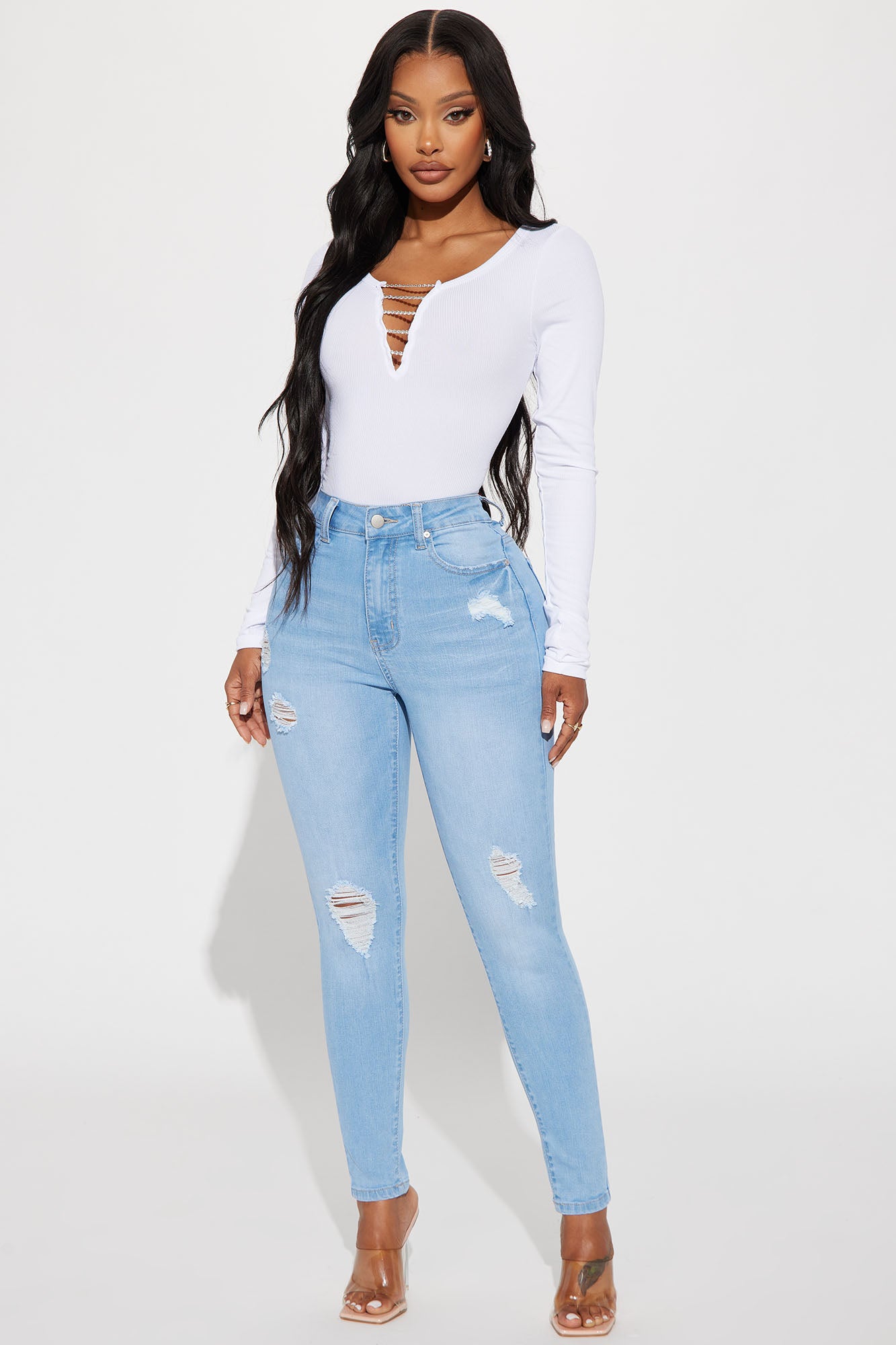 Caught In Your Love Distressed Jeans - Light Blue Wash