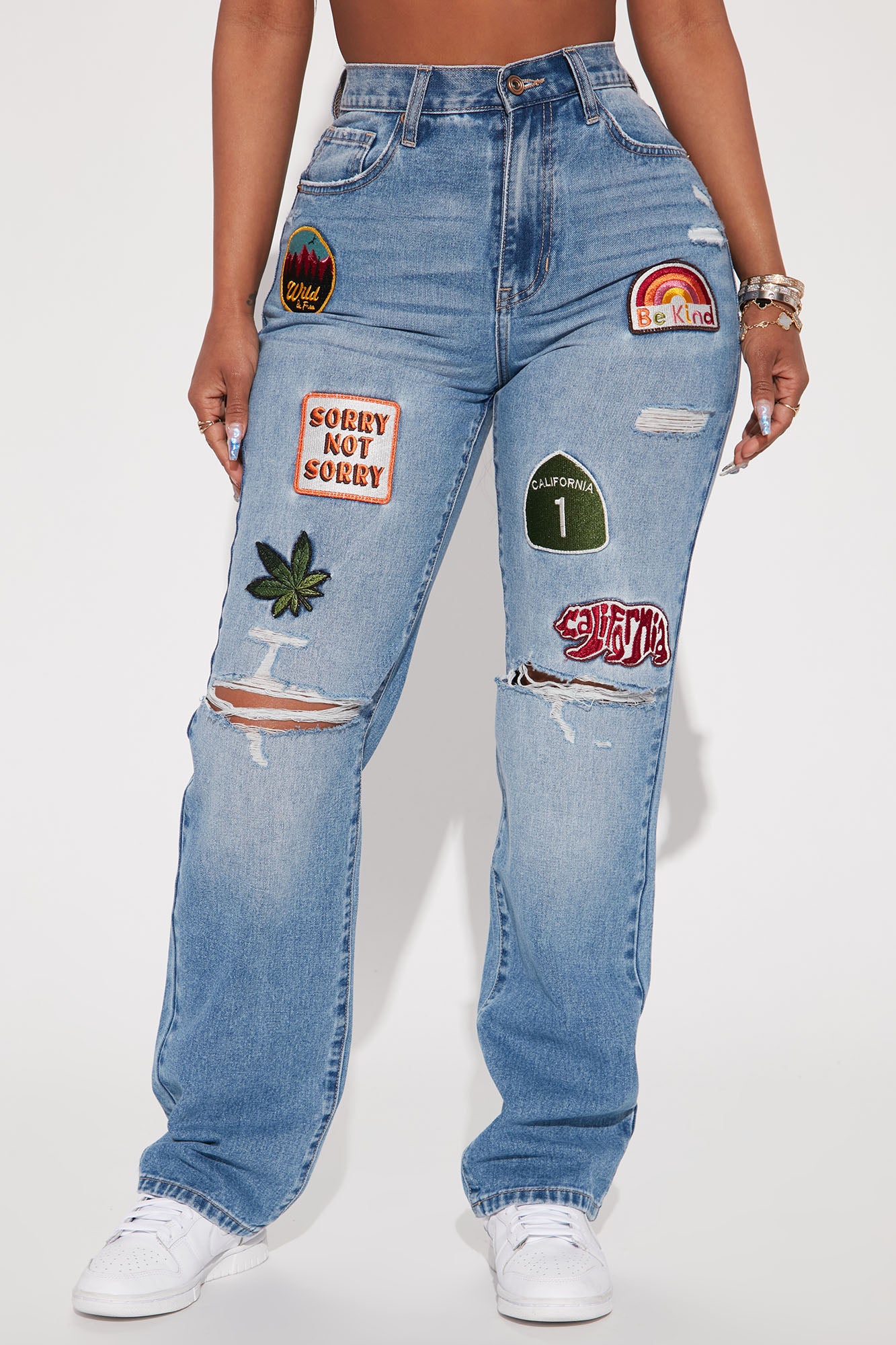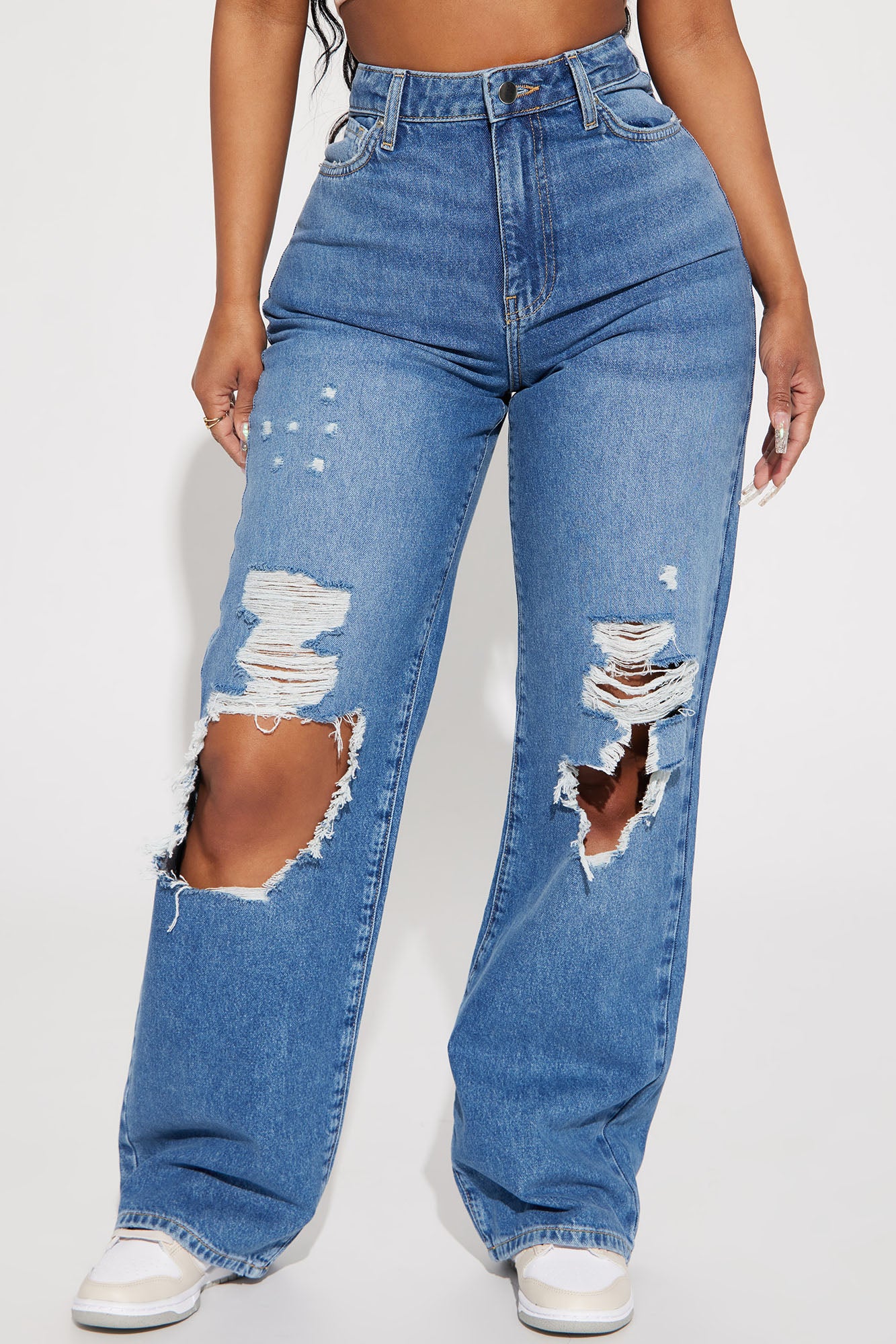 Calling Home Ripped Non Stretch Straight Leg Jeans - Medium Blue Wash