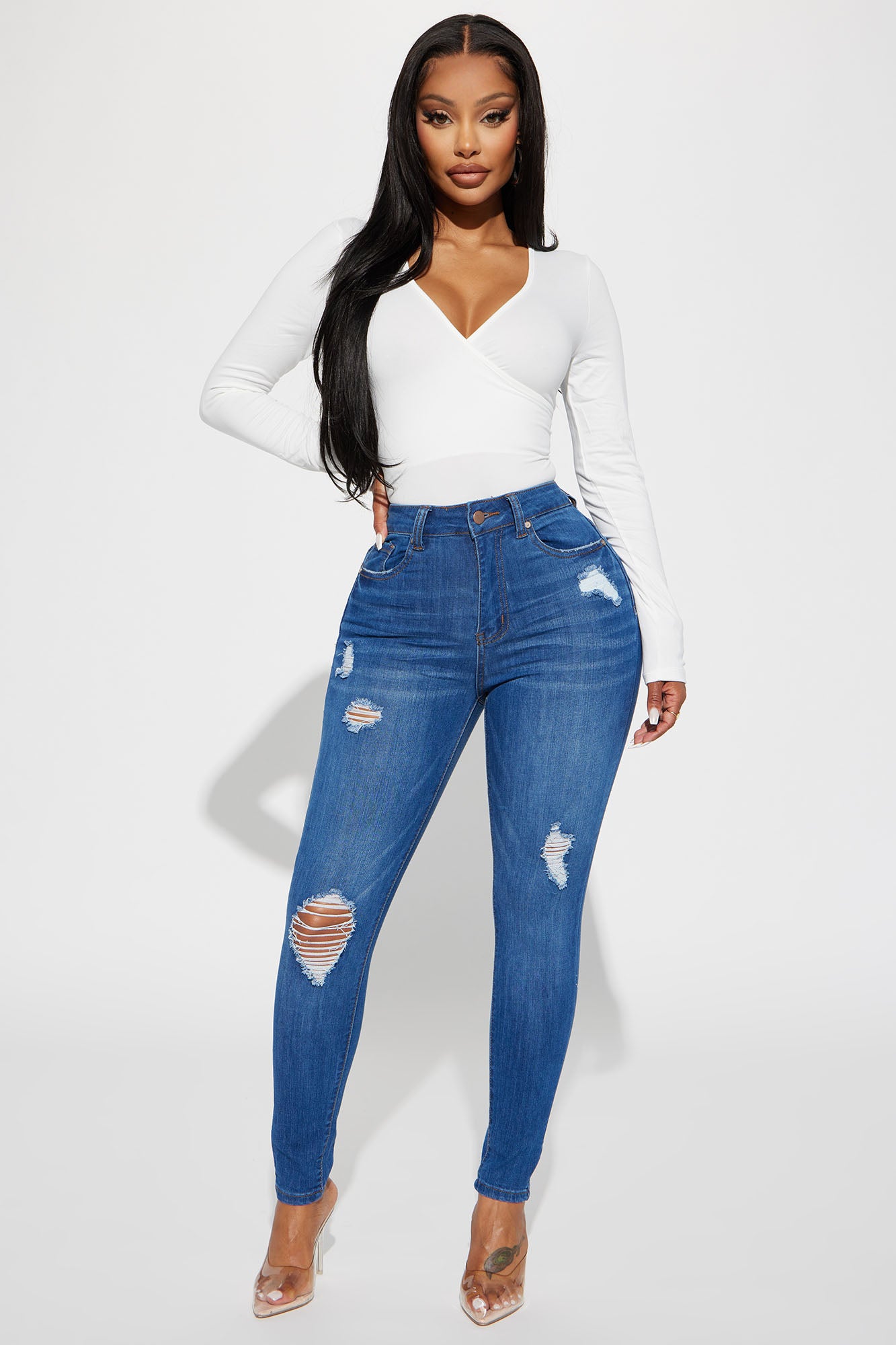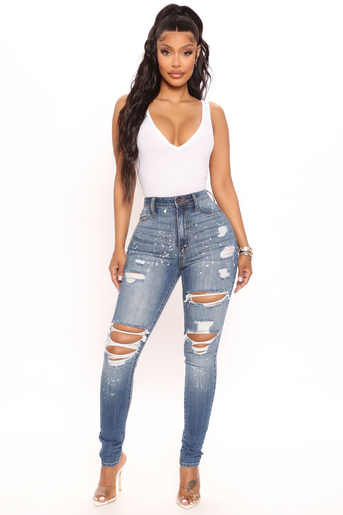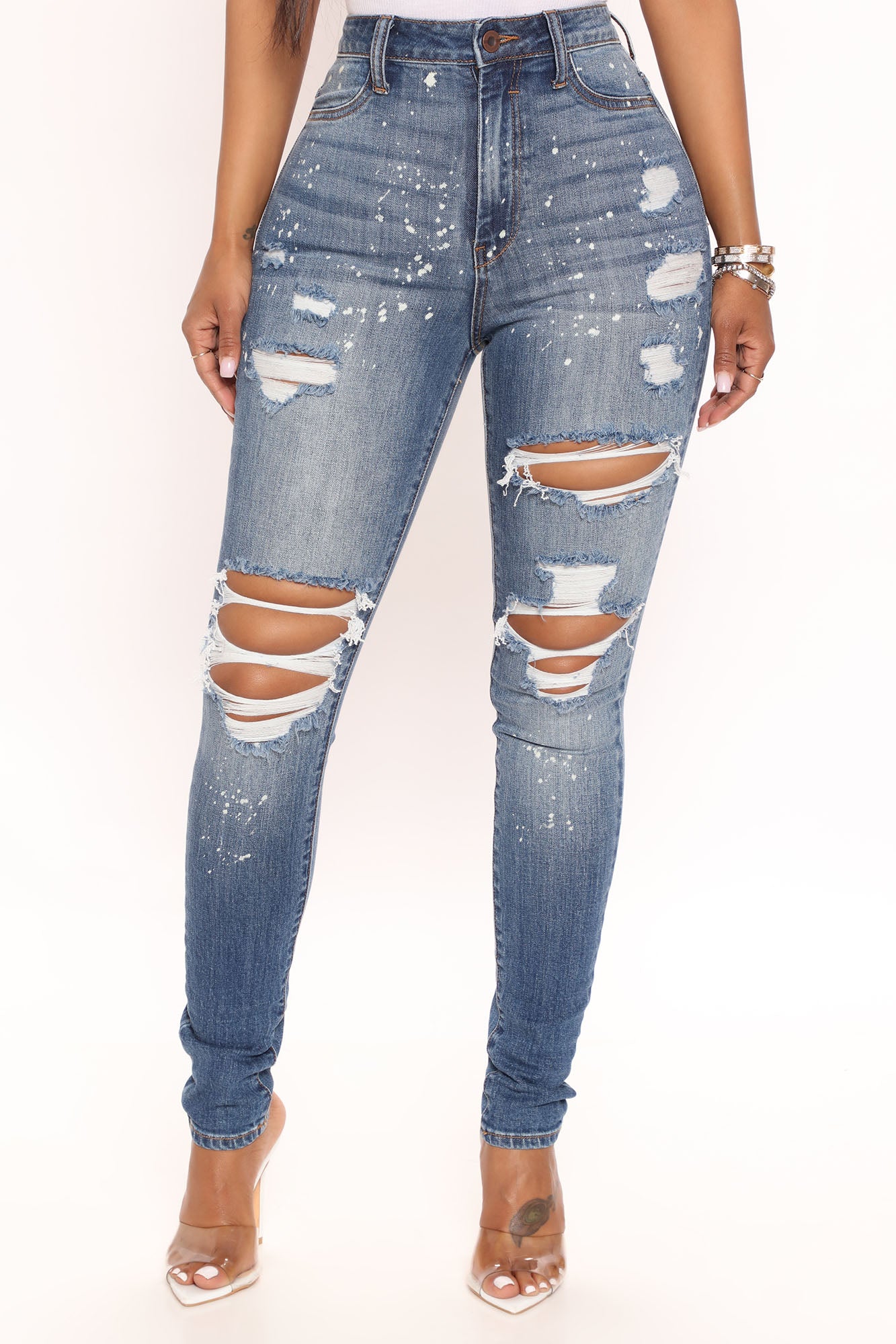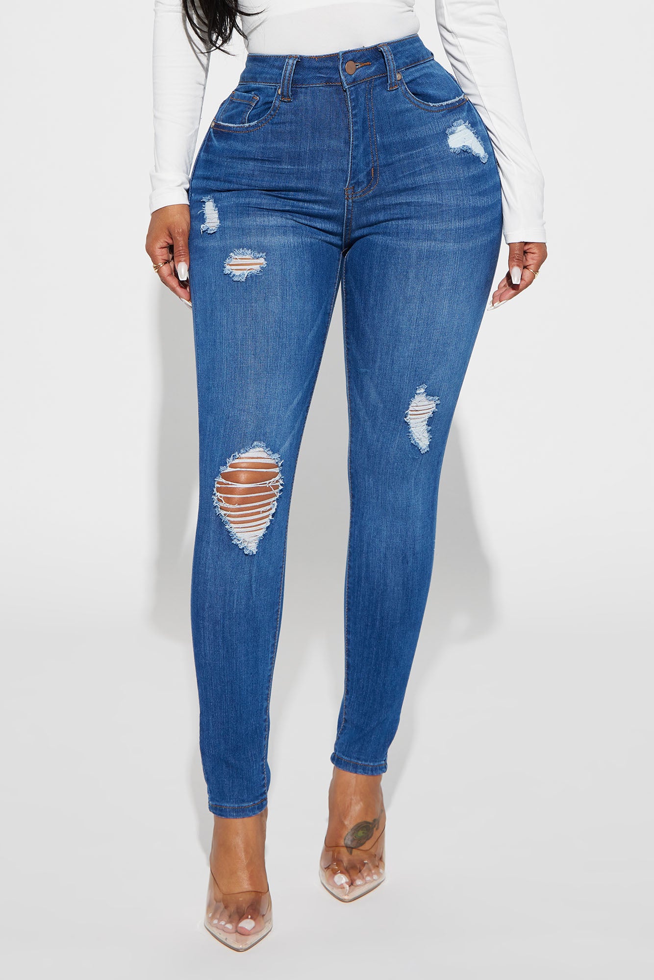 All The Booty Ripped Skinny Jeans - Medium Blue Wash