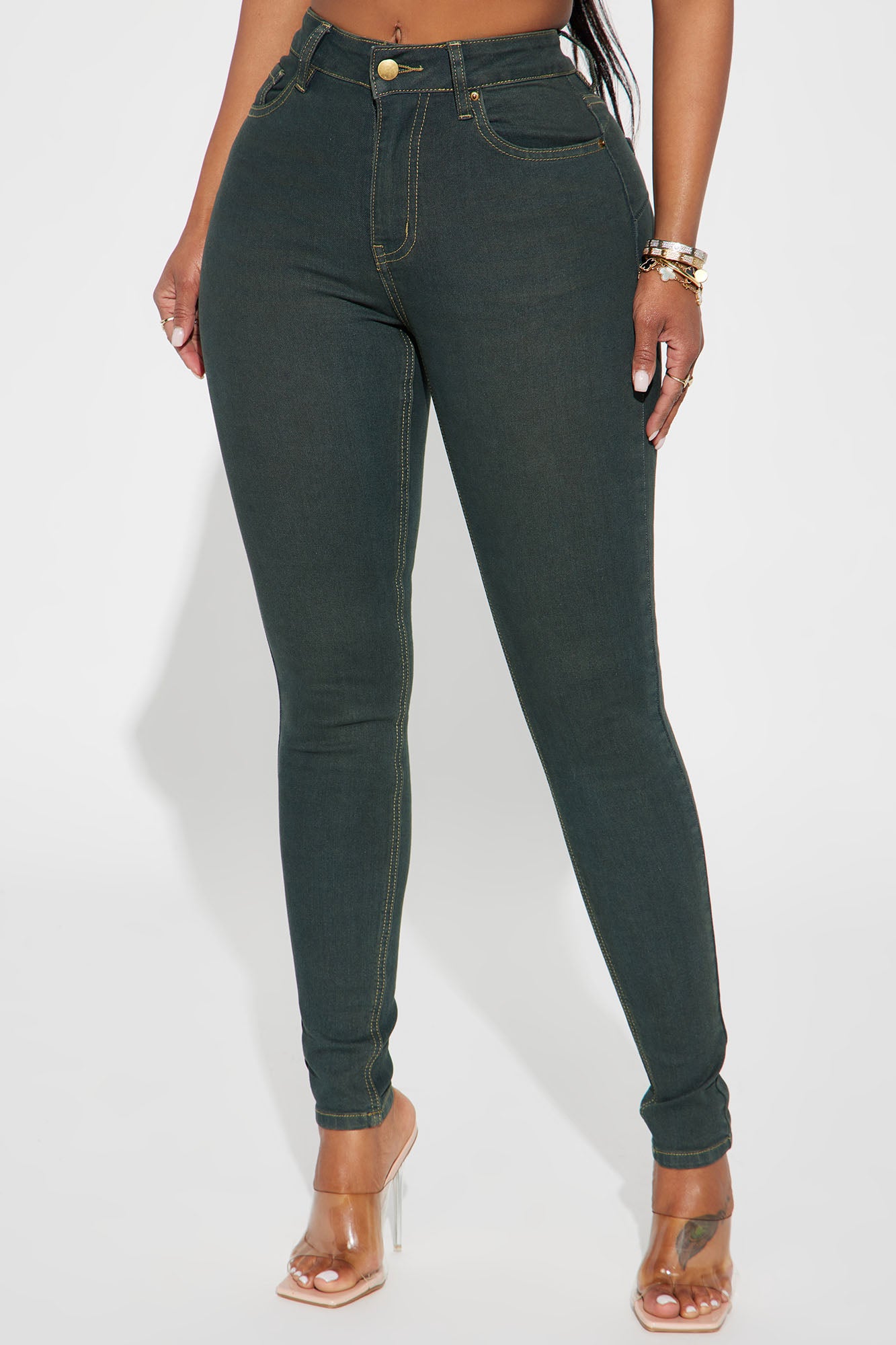 Baja Dark Green Curvy Stretch Skinny Jeans - Dark Wash