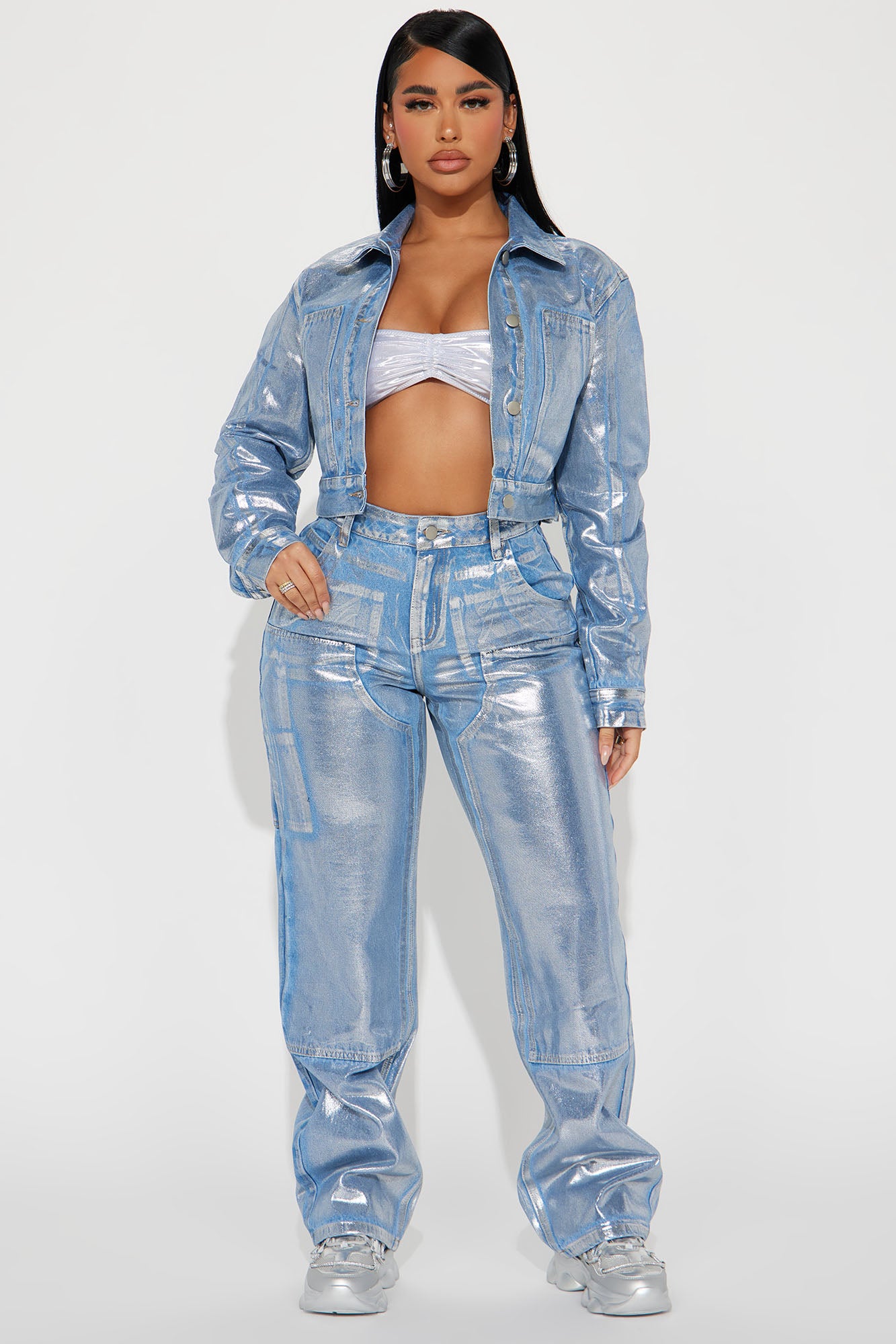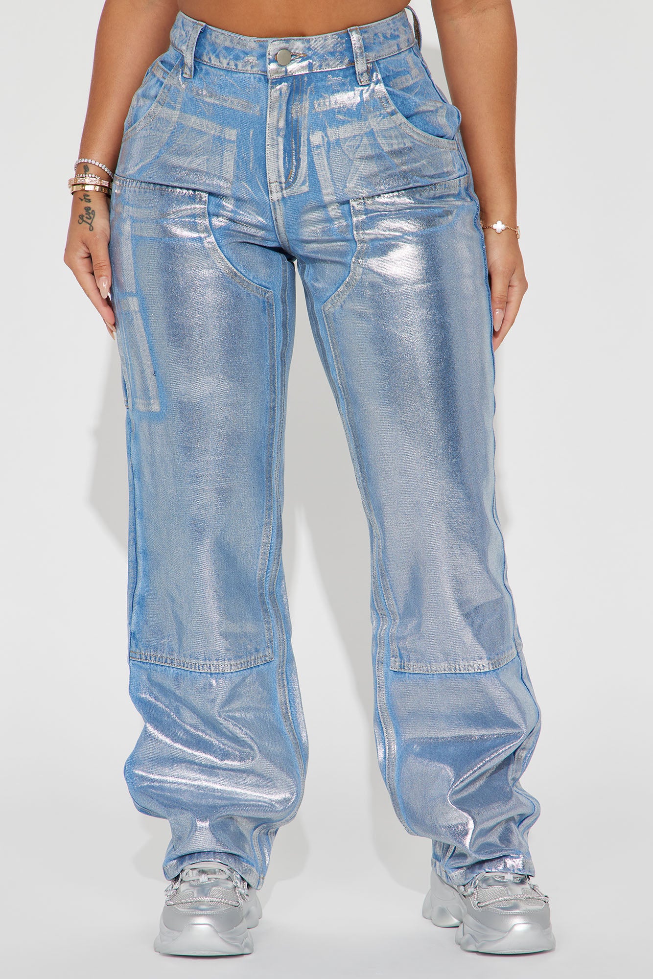 Big Time Magic Metallic Coated Straight Leg Jeans - Light Wash
