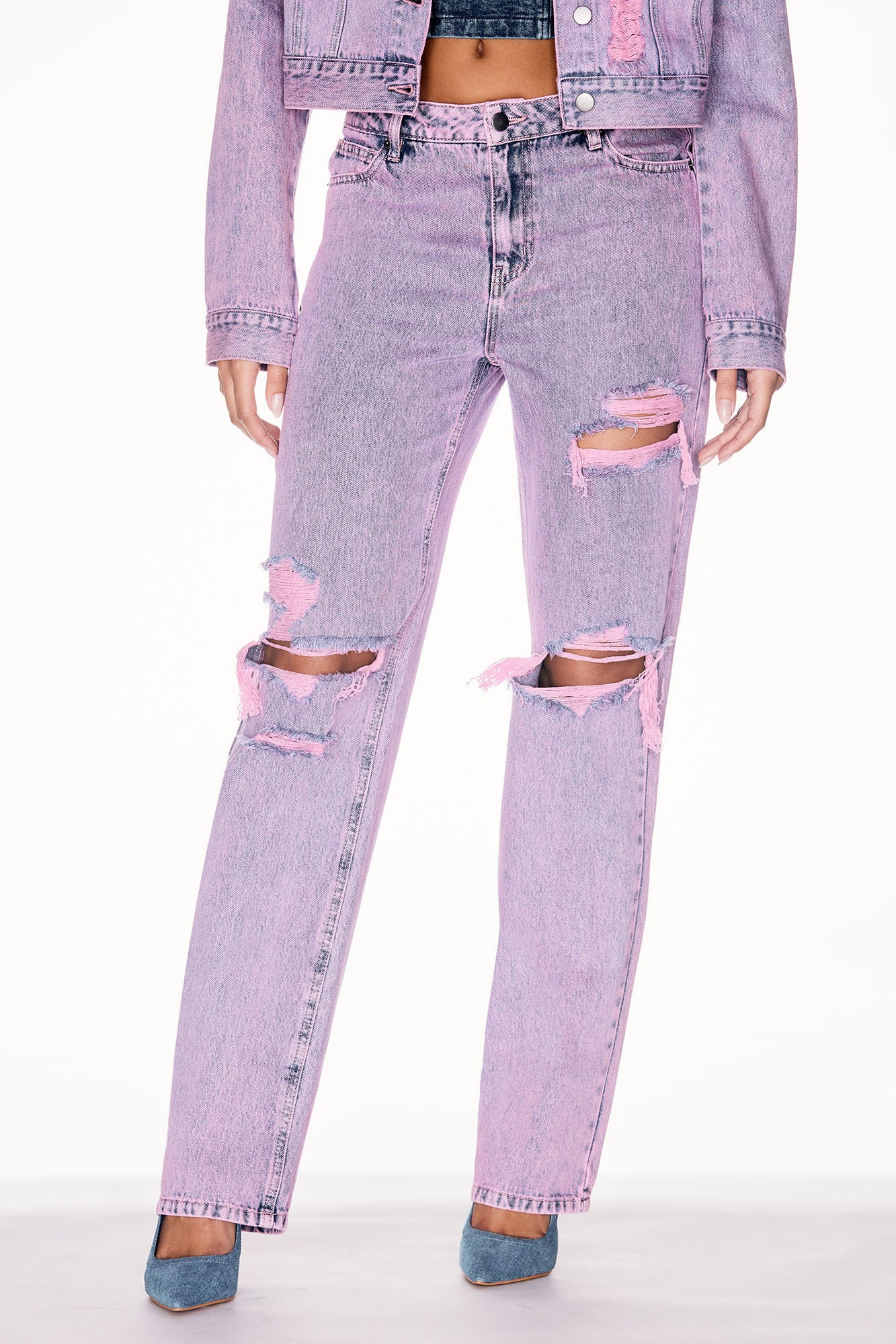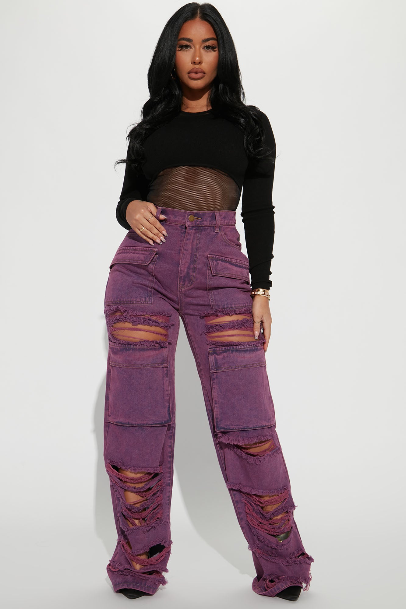 Believe Me Ripped High Rise Cargo Jeans - Magenta