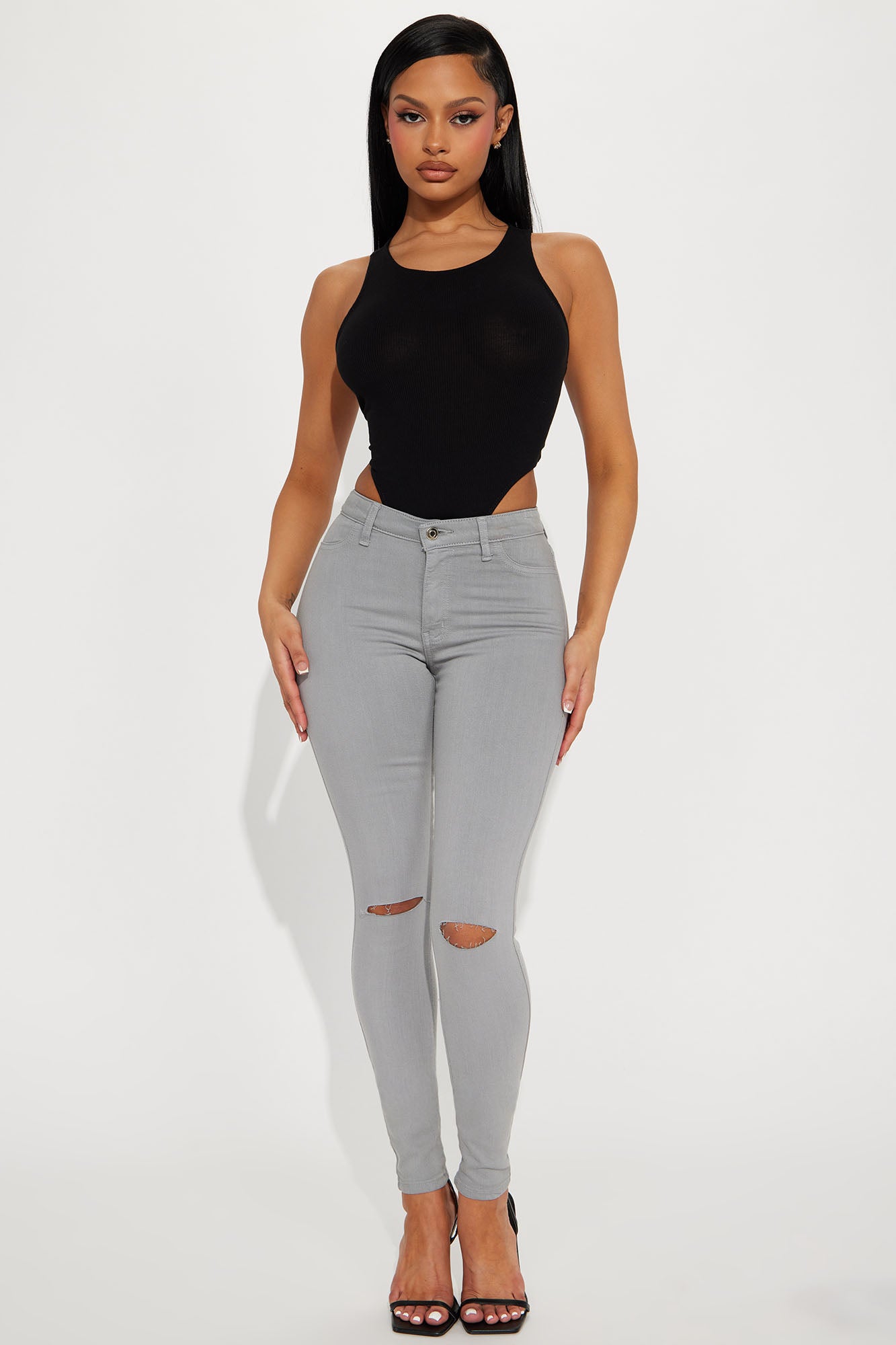 Beacon Booty Lifting Ripped High Rise Stretch Skinny Jeans - Grey