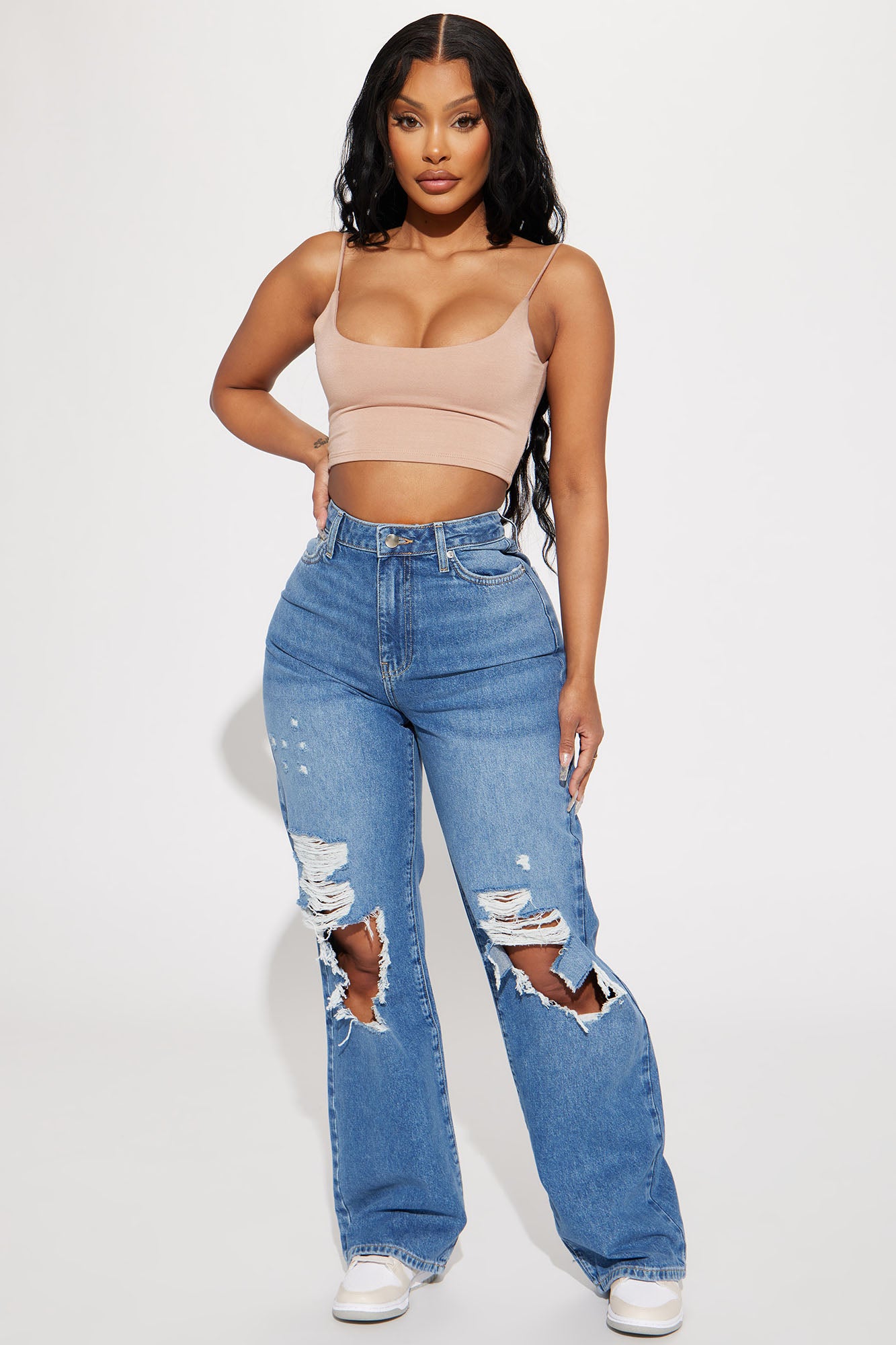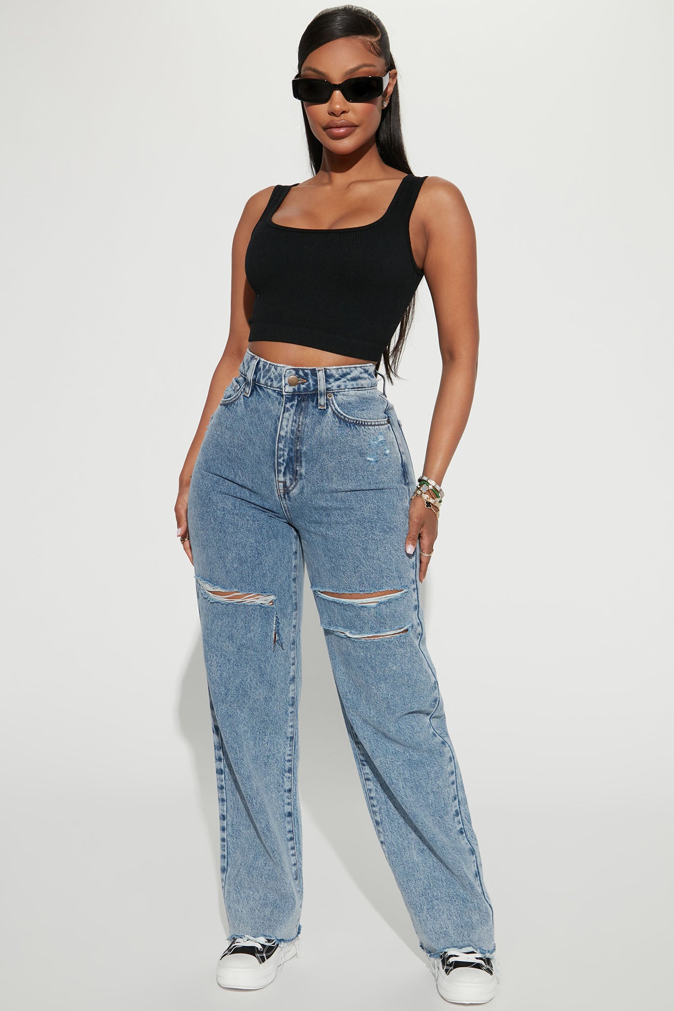 Best In Class Ripped Straight Leg Jeans - Medium Wash
