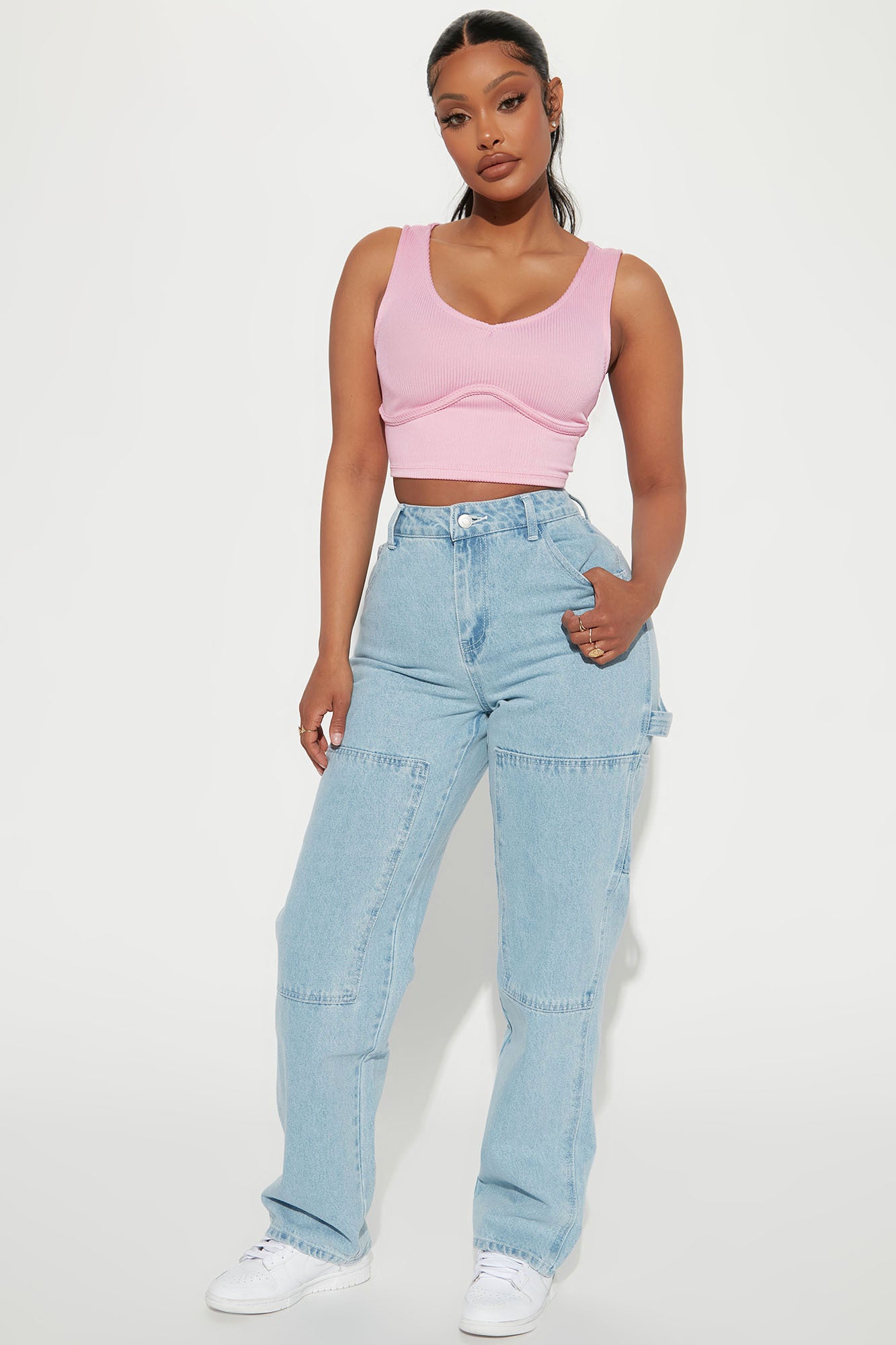 Breaking The Rules Straight Leg Utility Jean - Light Wash