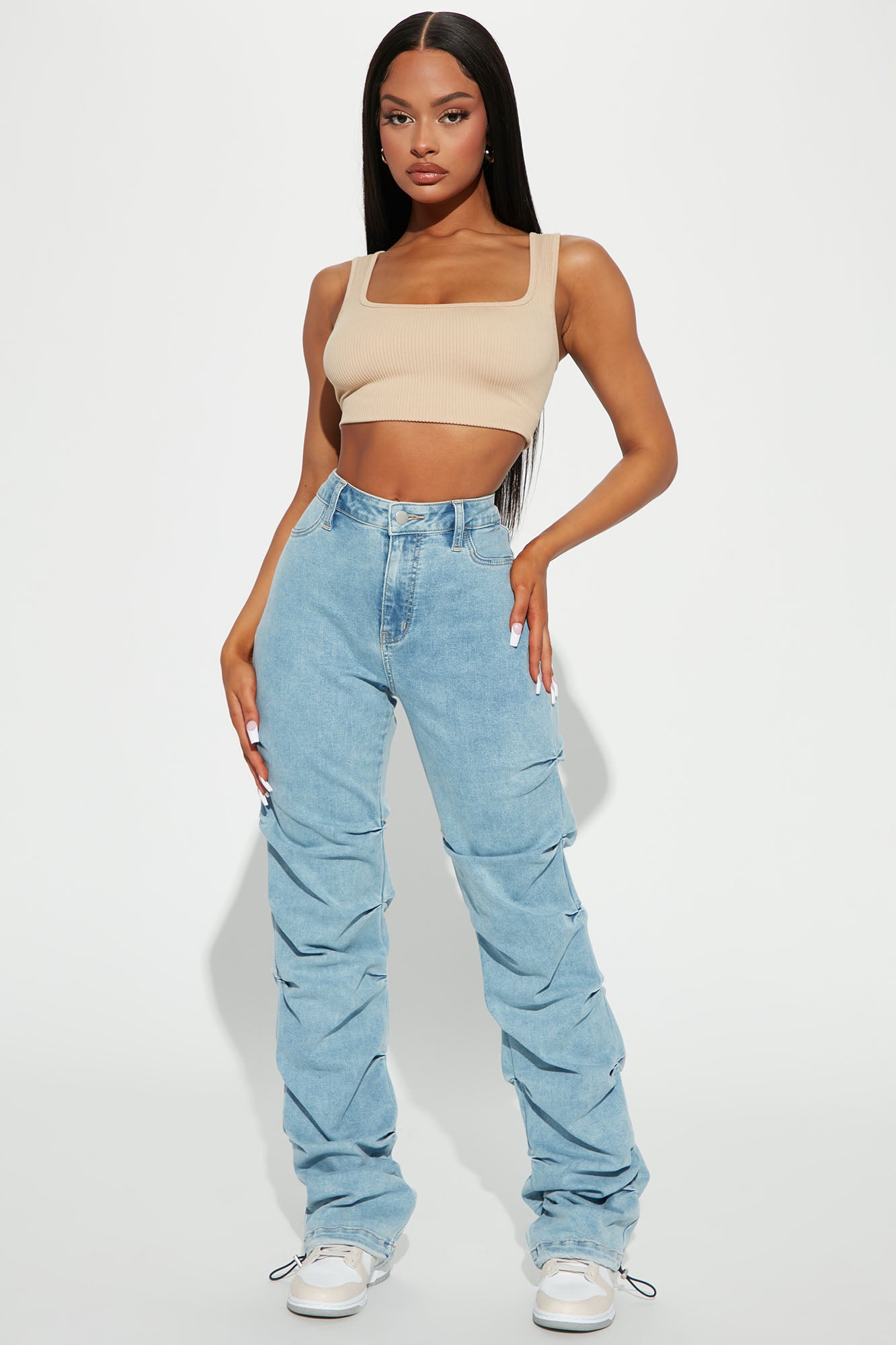 Catch My Vibe Stacked Straight Leg Jeans - Light Blue Wash