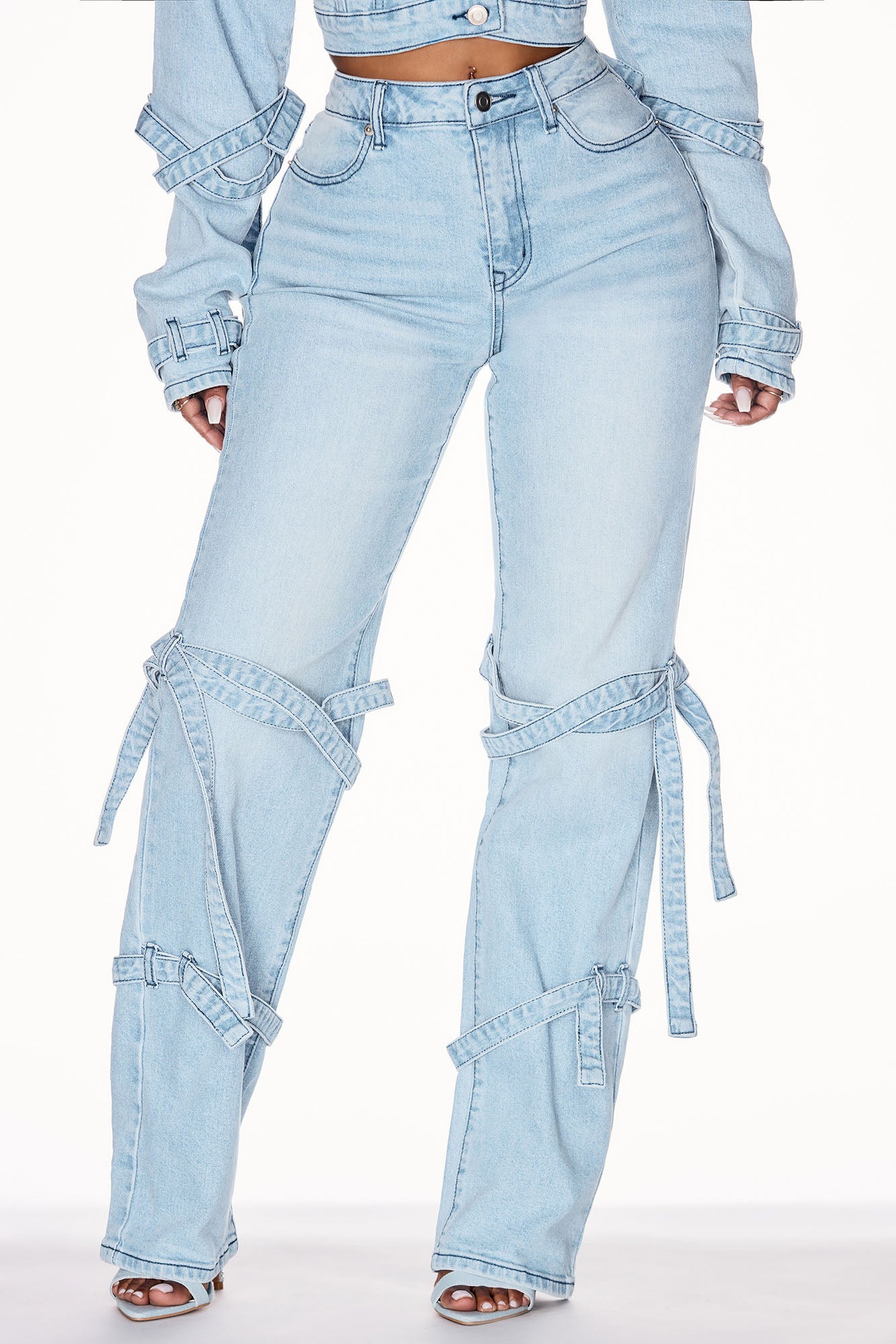 All Tied Up Stretch Straight Leg Jeans - Light Wash