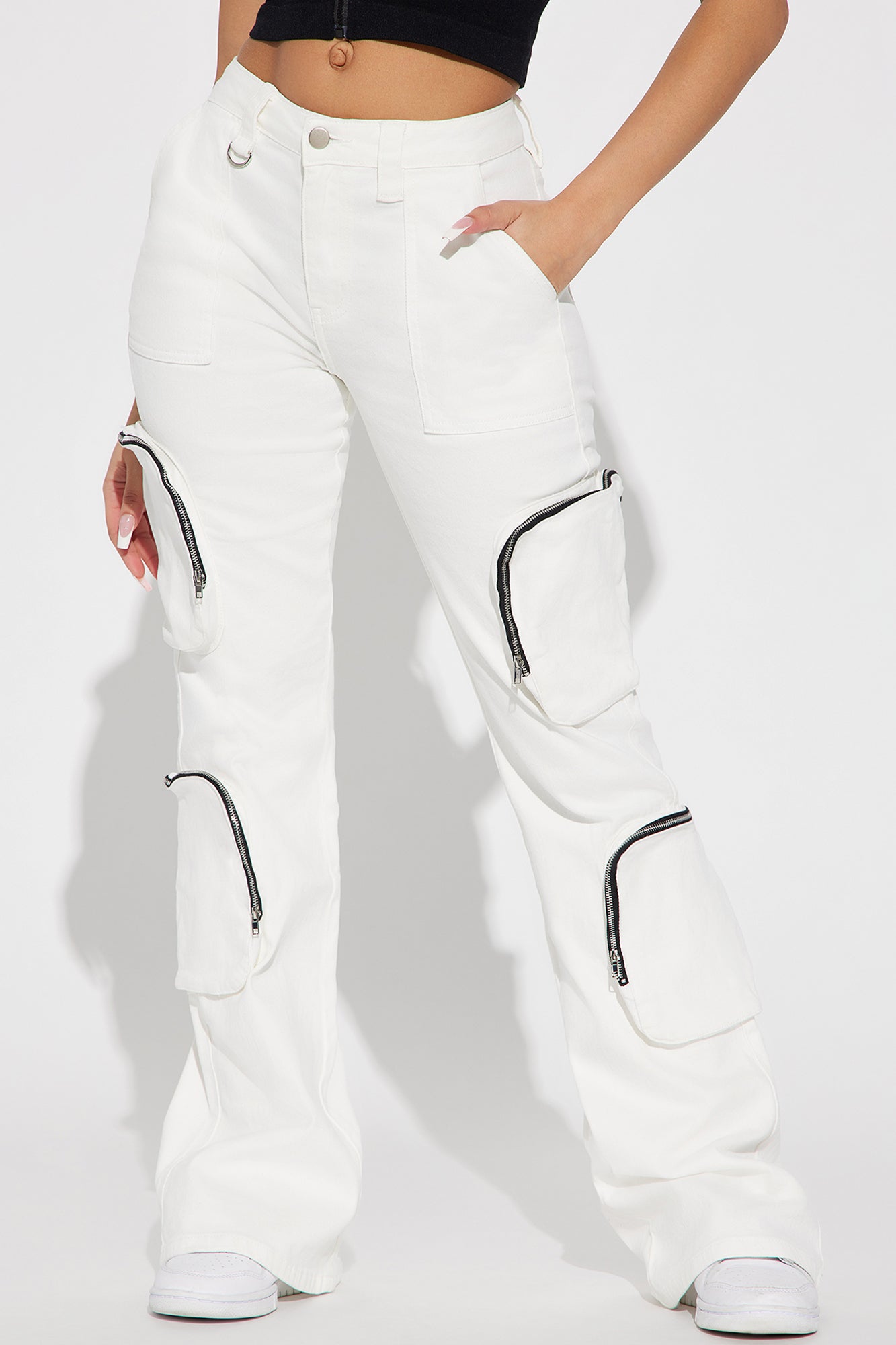 Causing Trouble Mid Rise Stretch Cargo Jean - White