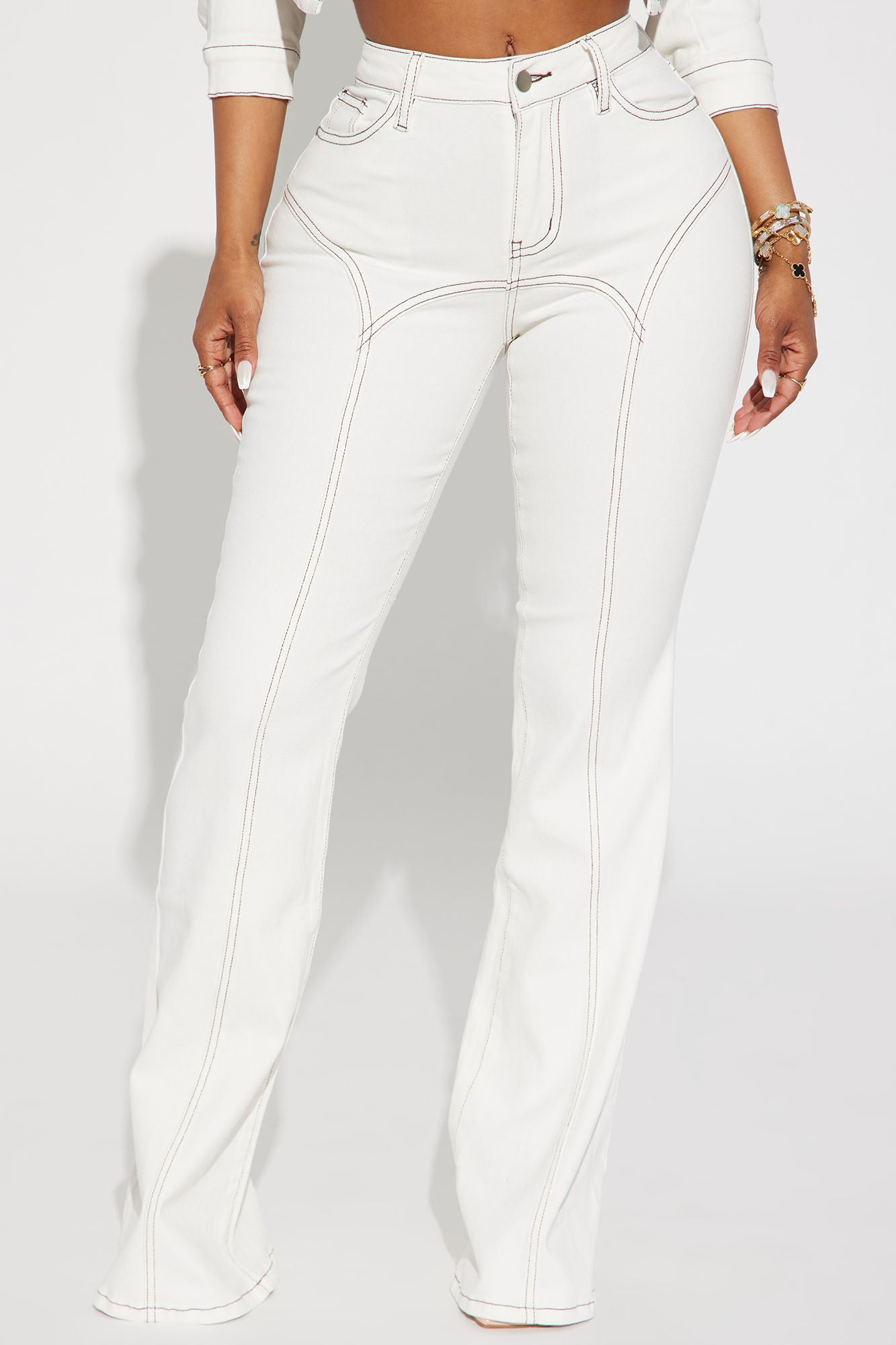 Charlotte Mid Rise Stretch Flare Jeans - White